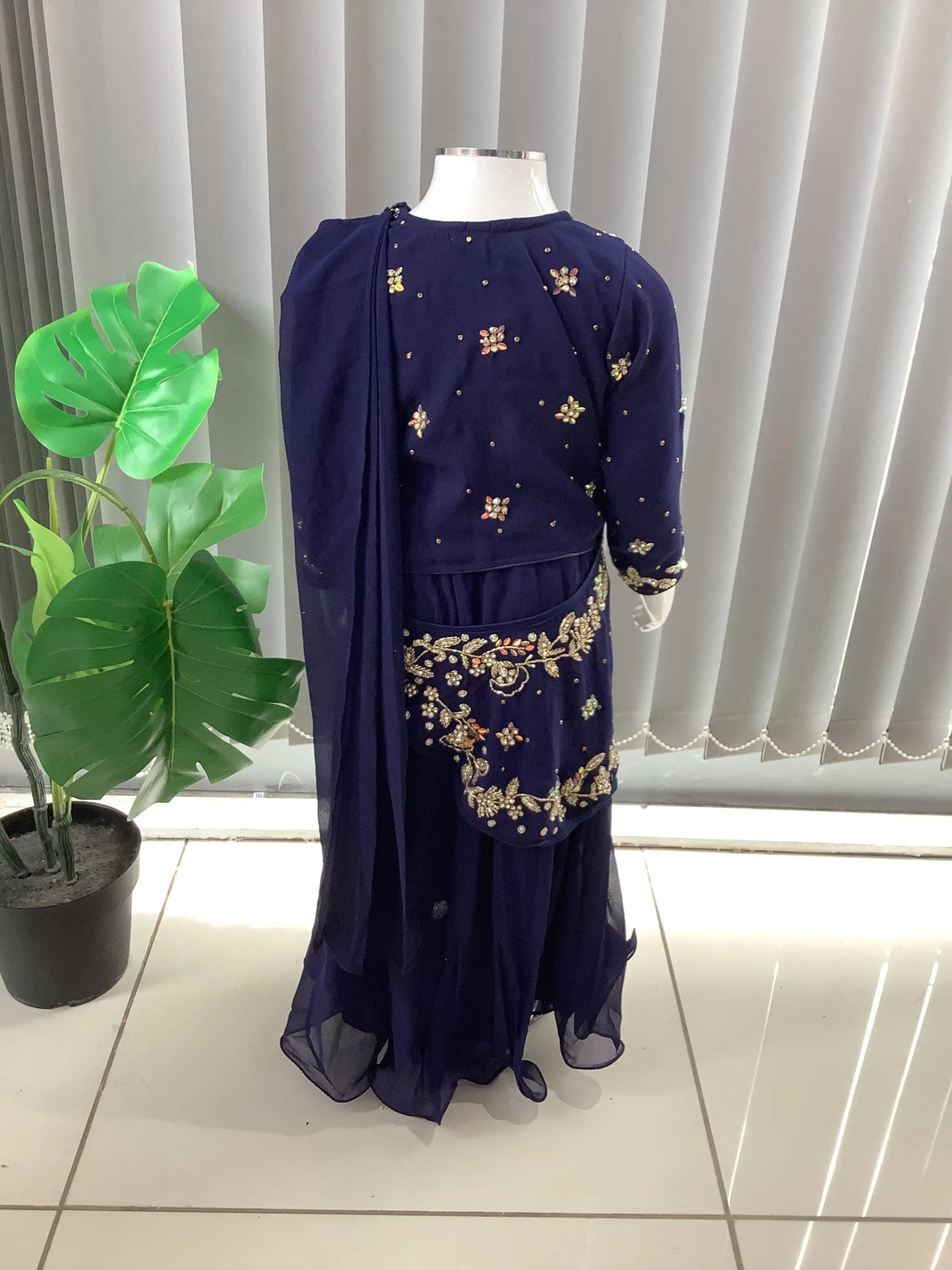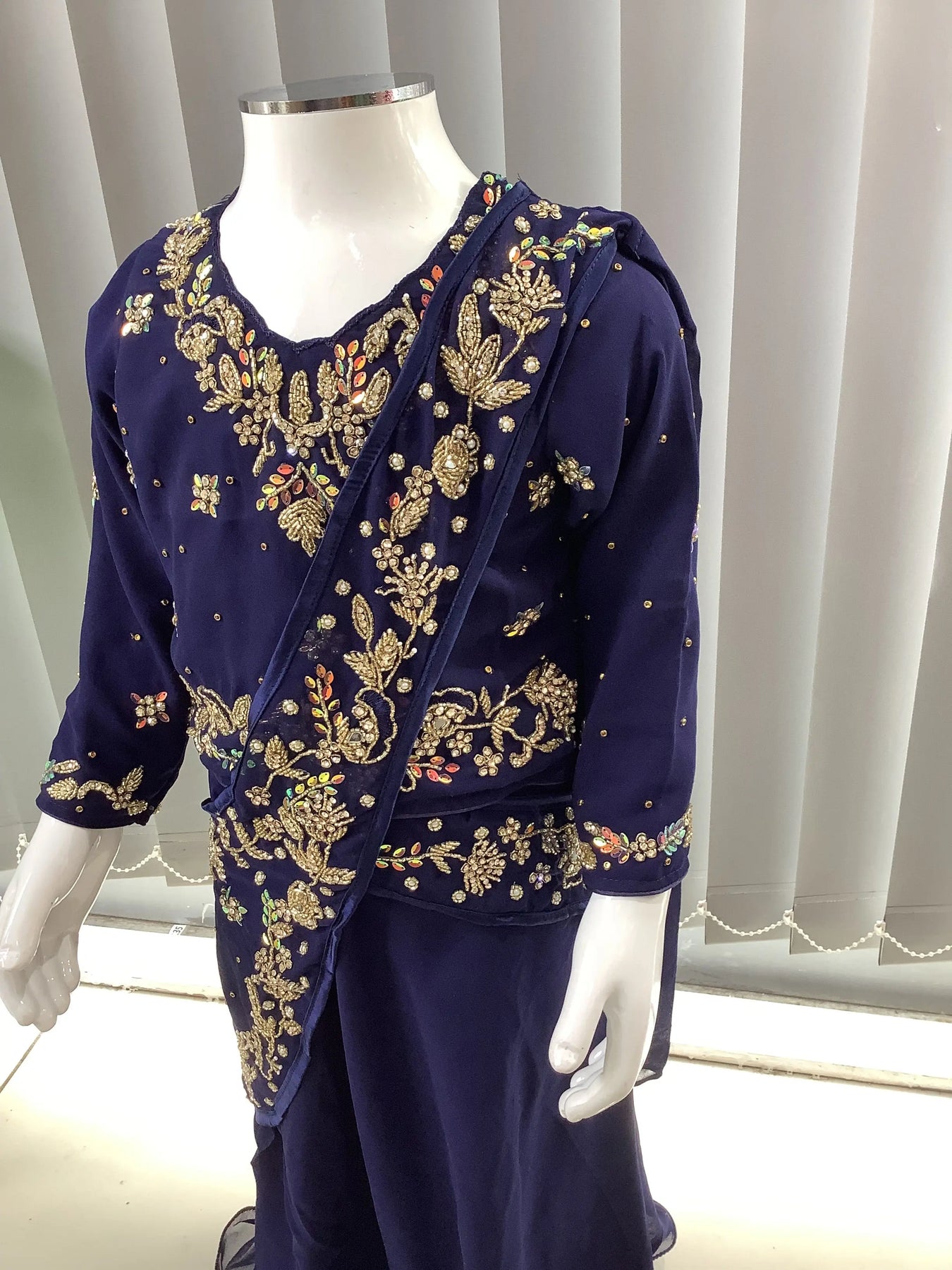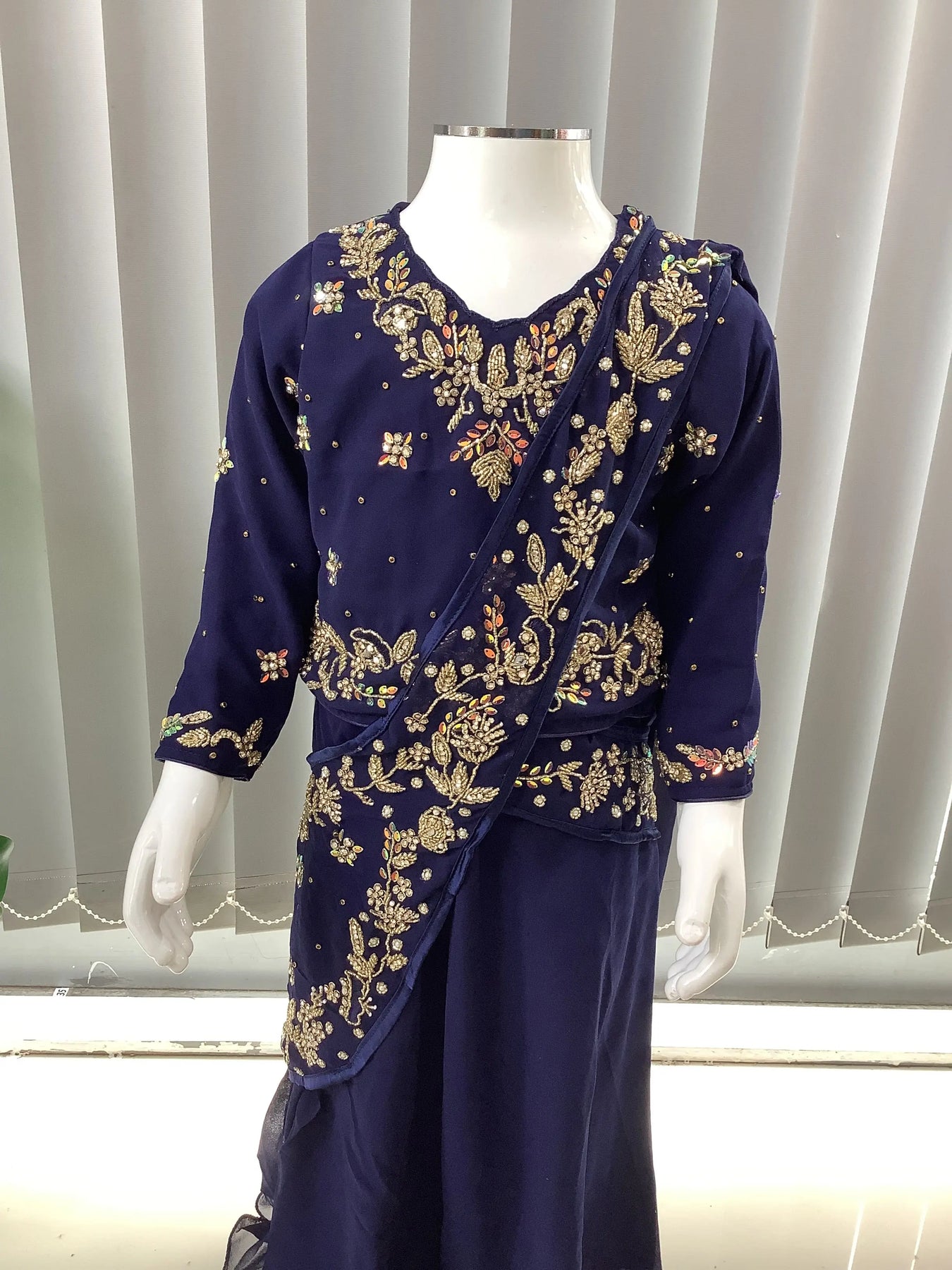 ASHA | Embroidered Chiffon Saree Mother & Daughter Readymade Blue | AS55