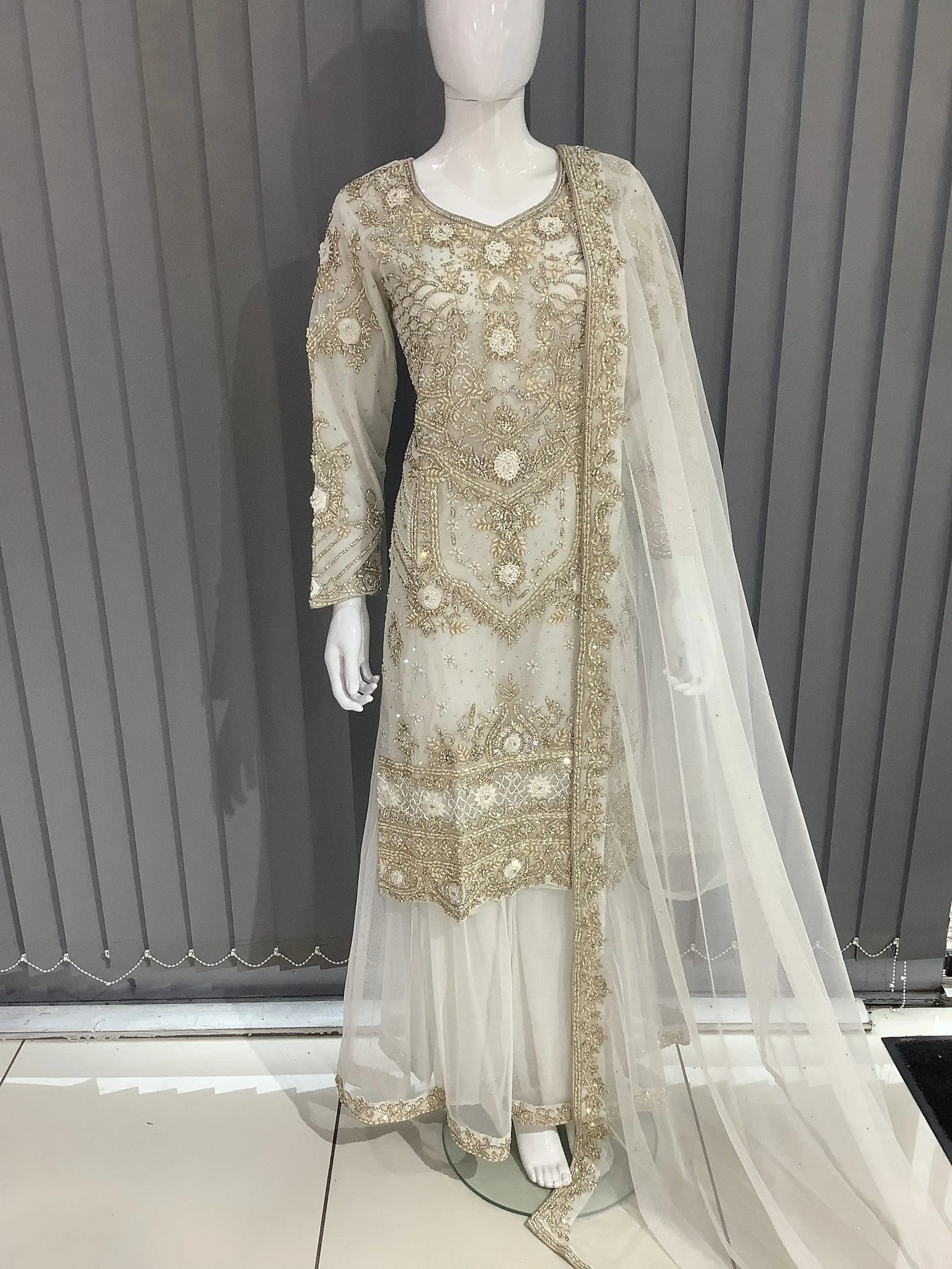 Hand Embroidered Chiffon Kameez with an embroidered Chiffon Dupatta.