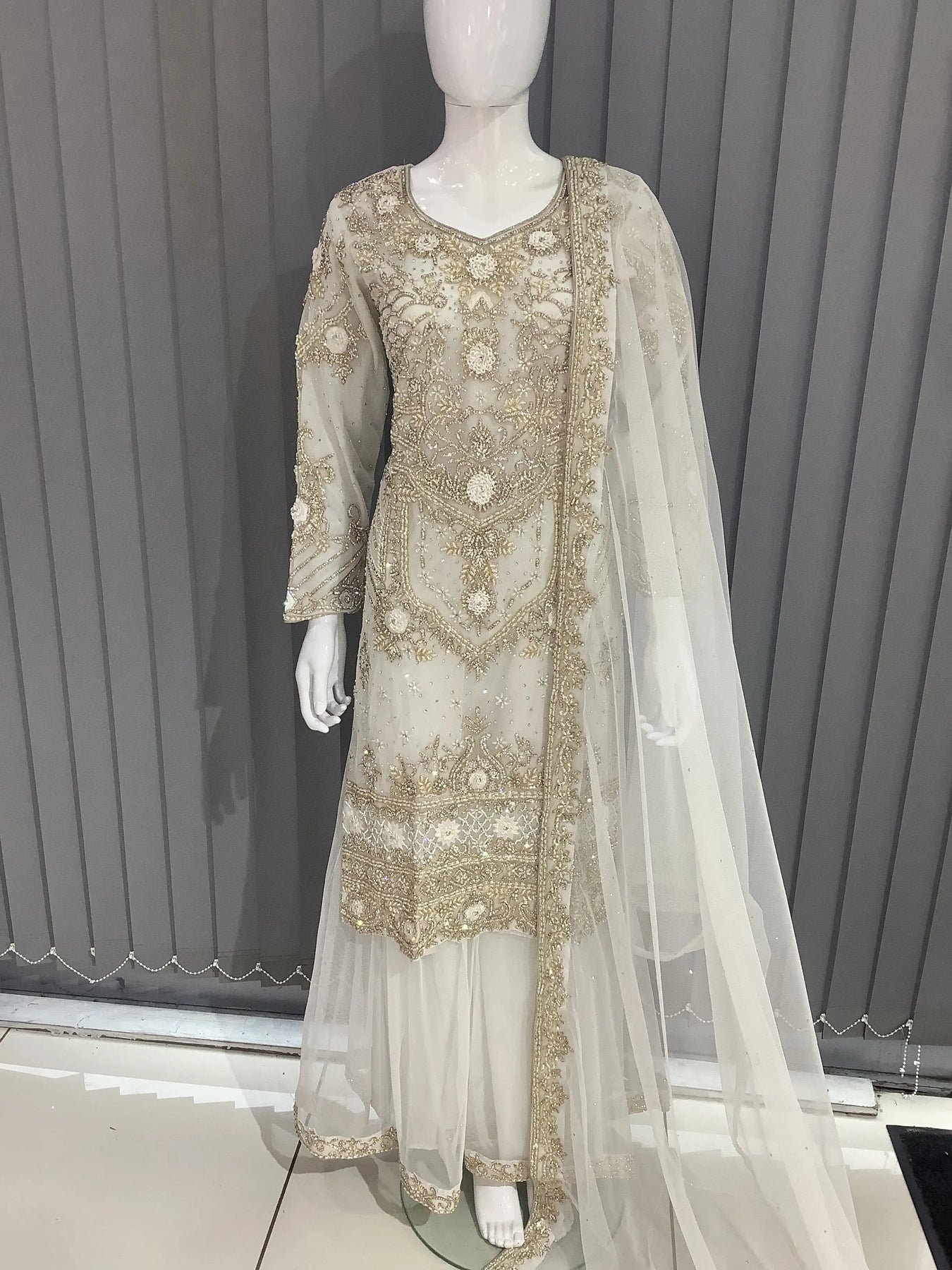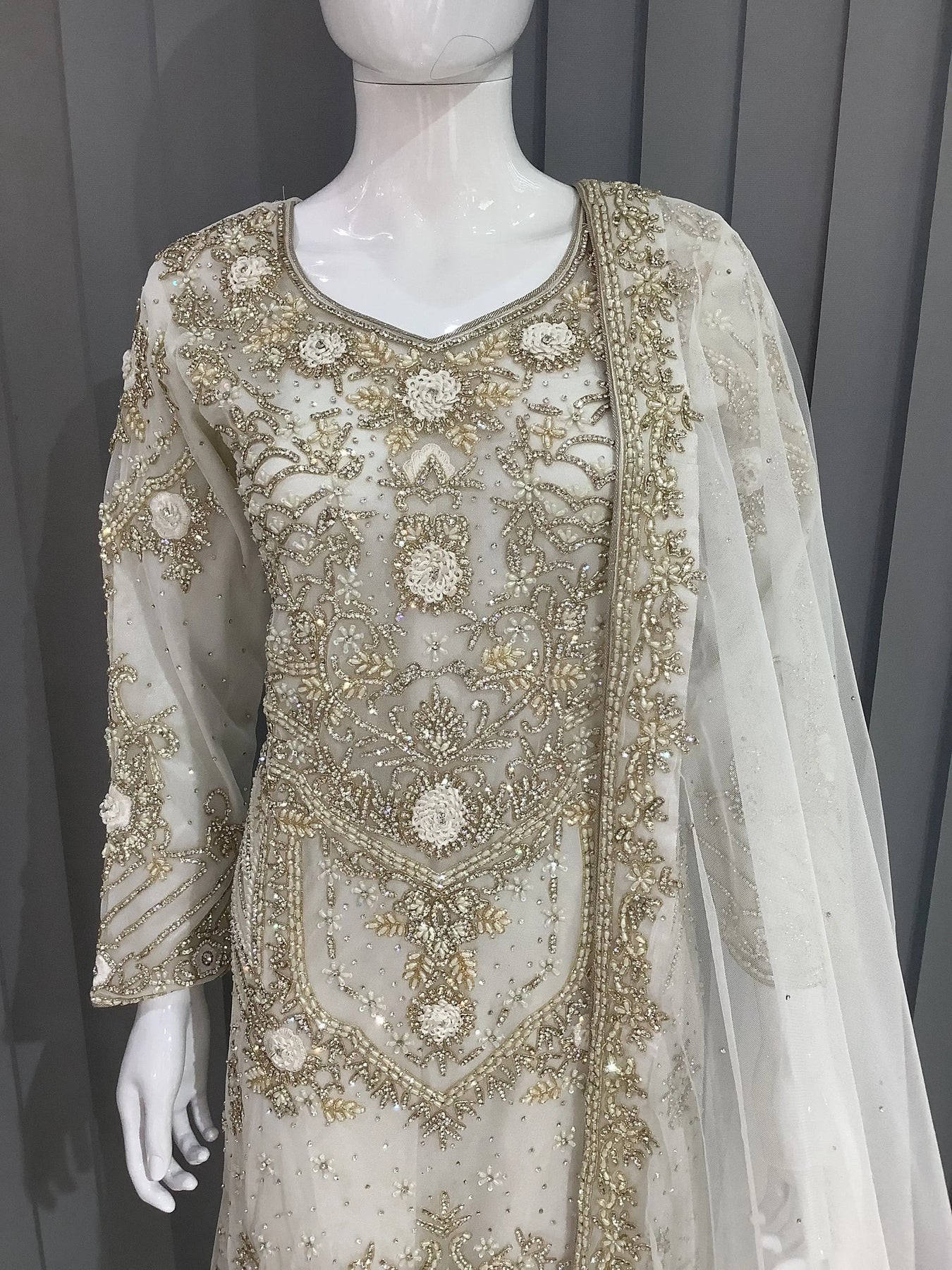 ASHA | Embroidered Dori Work Net Ready To Wear White | AS68