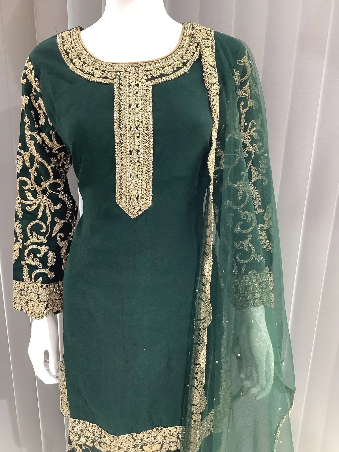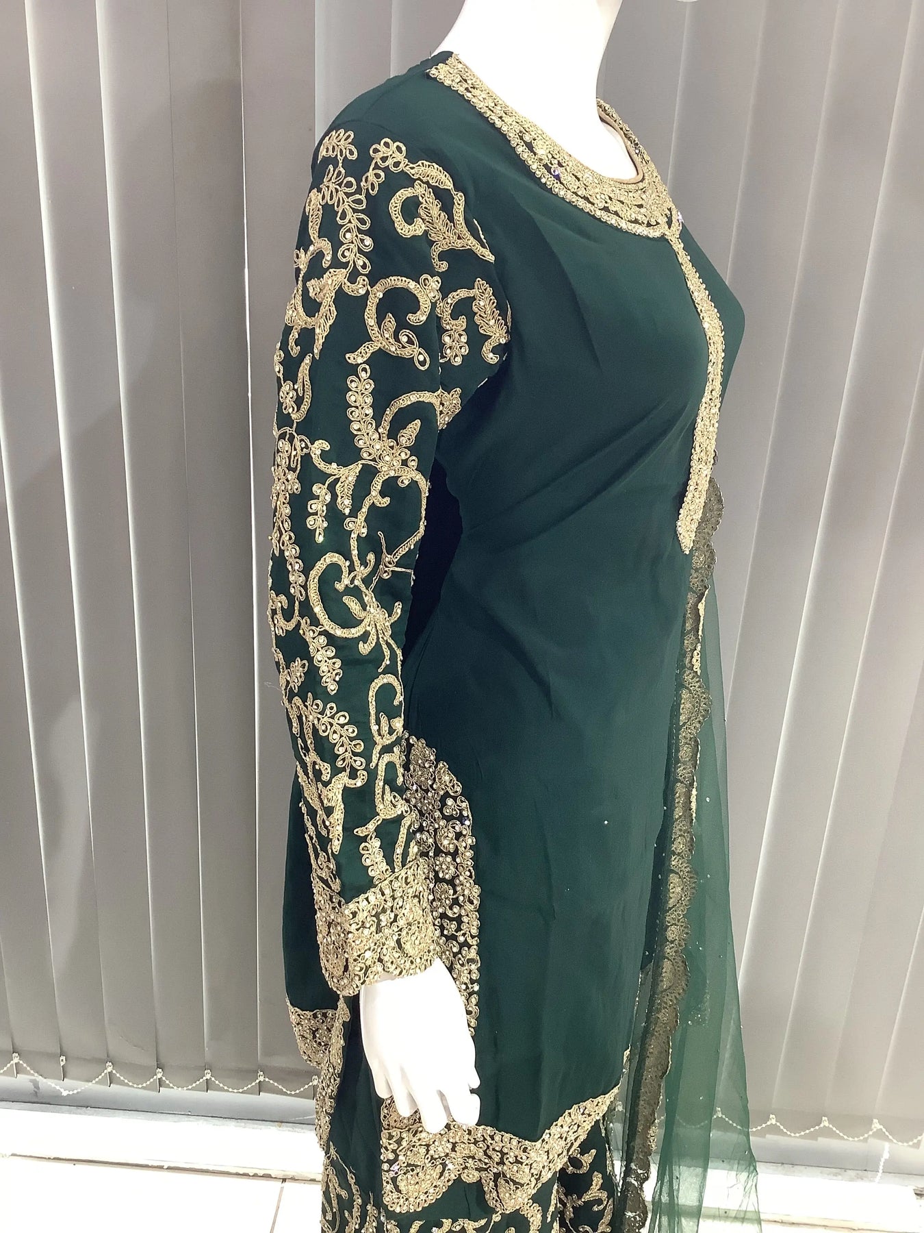 From time to time beading/ sequences may get displaced and this is not thought of as a fault but is due to the nature of the work. These articles of clothing should be worn with care.