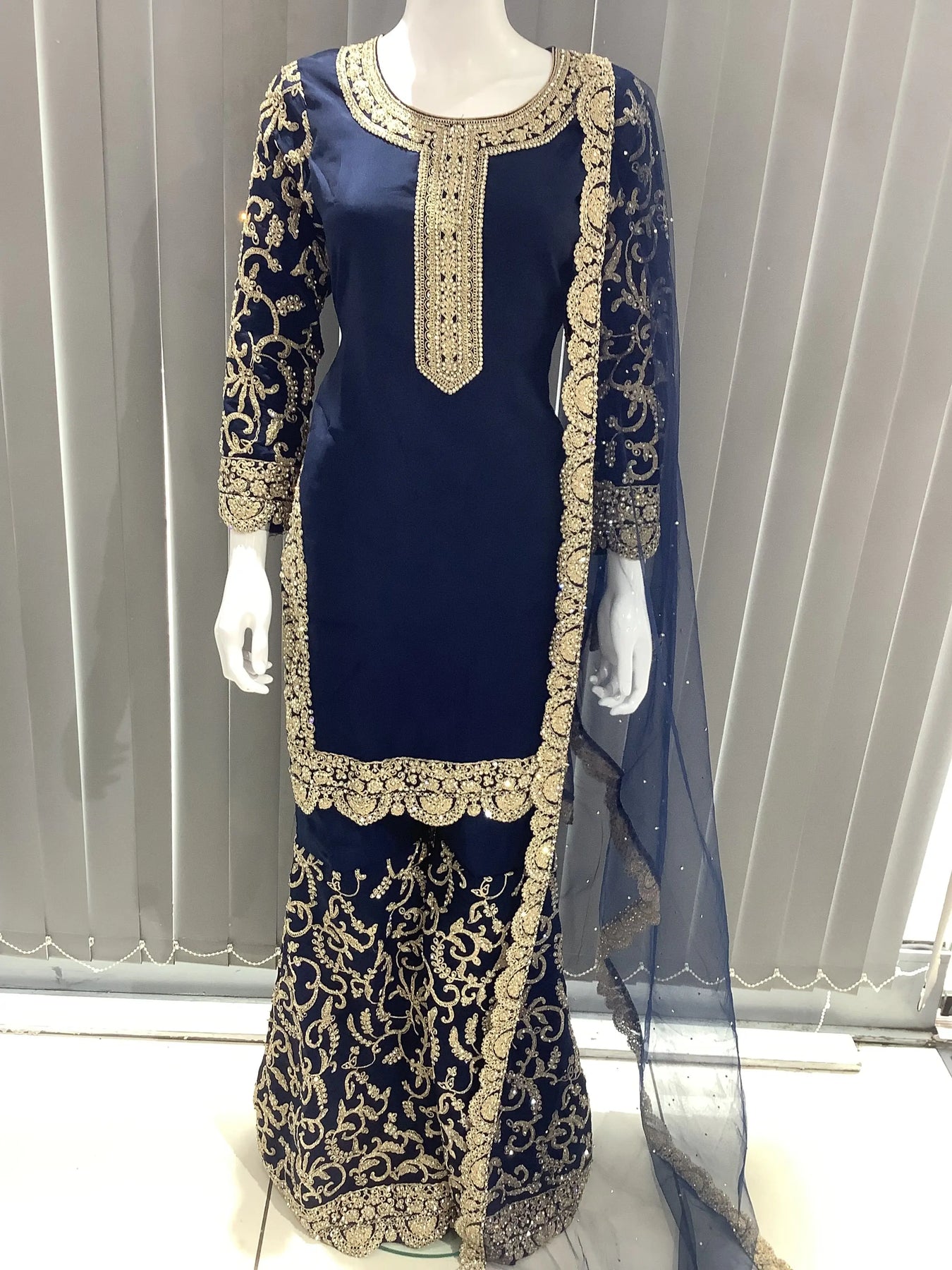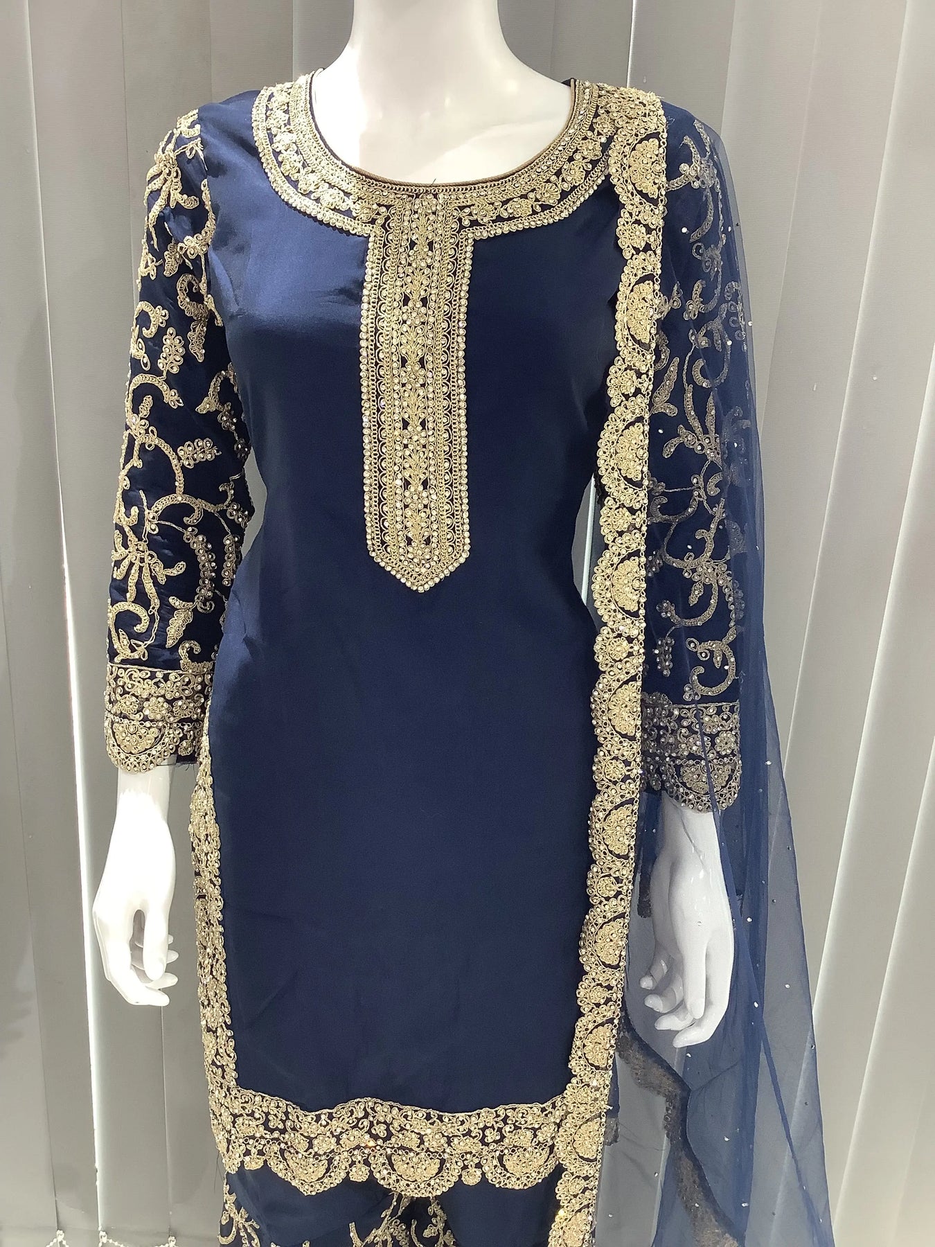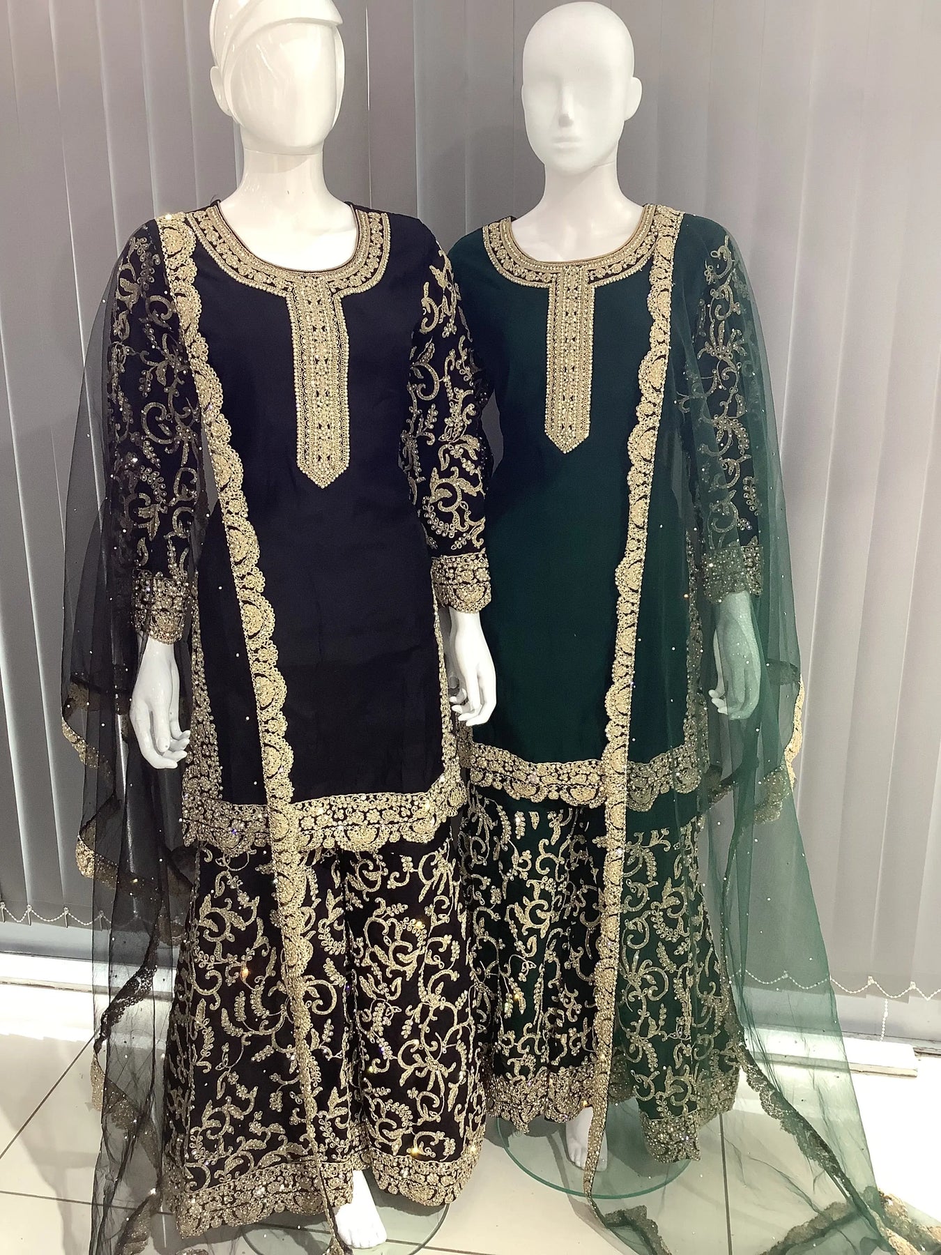 Hand Embroidered Chiffon Kameez with an embroidered Chiffon Dupatta.