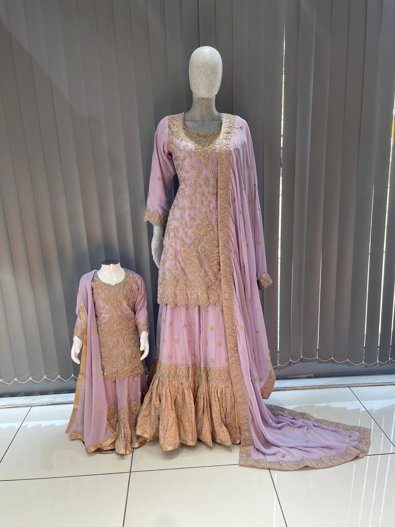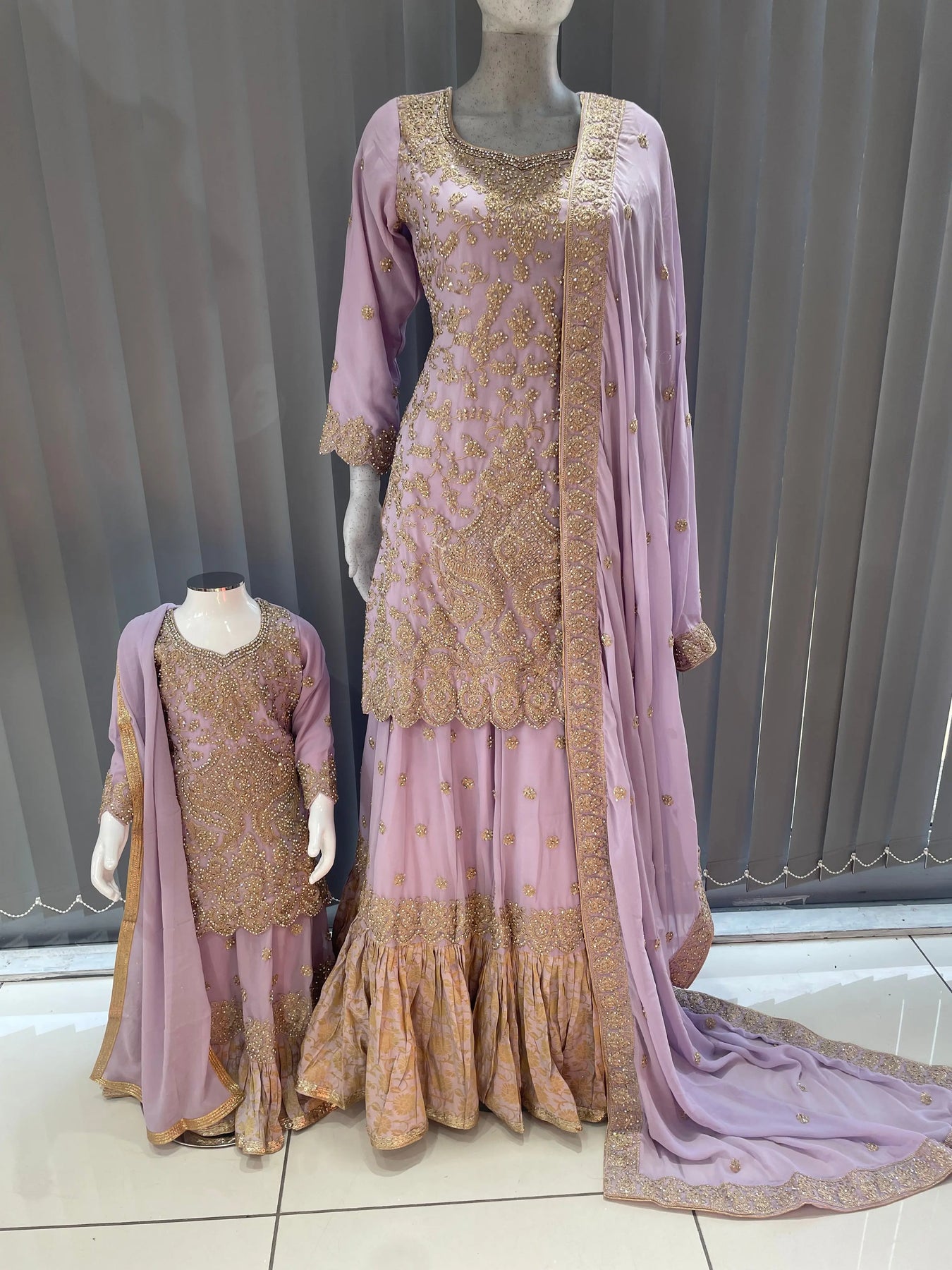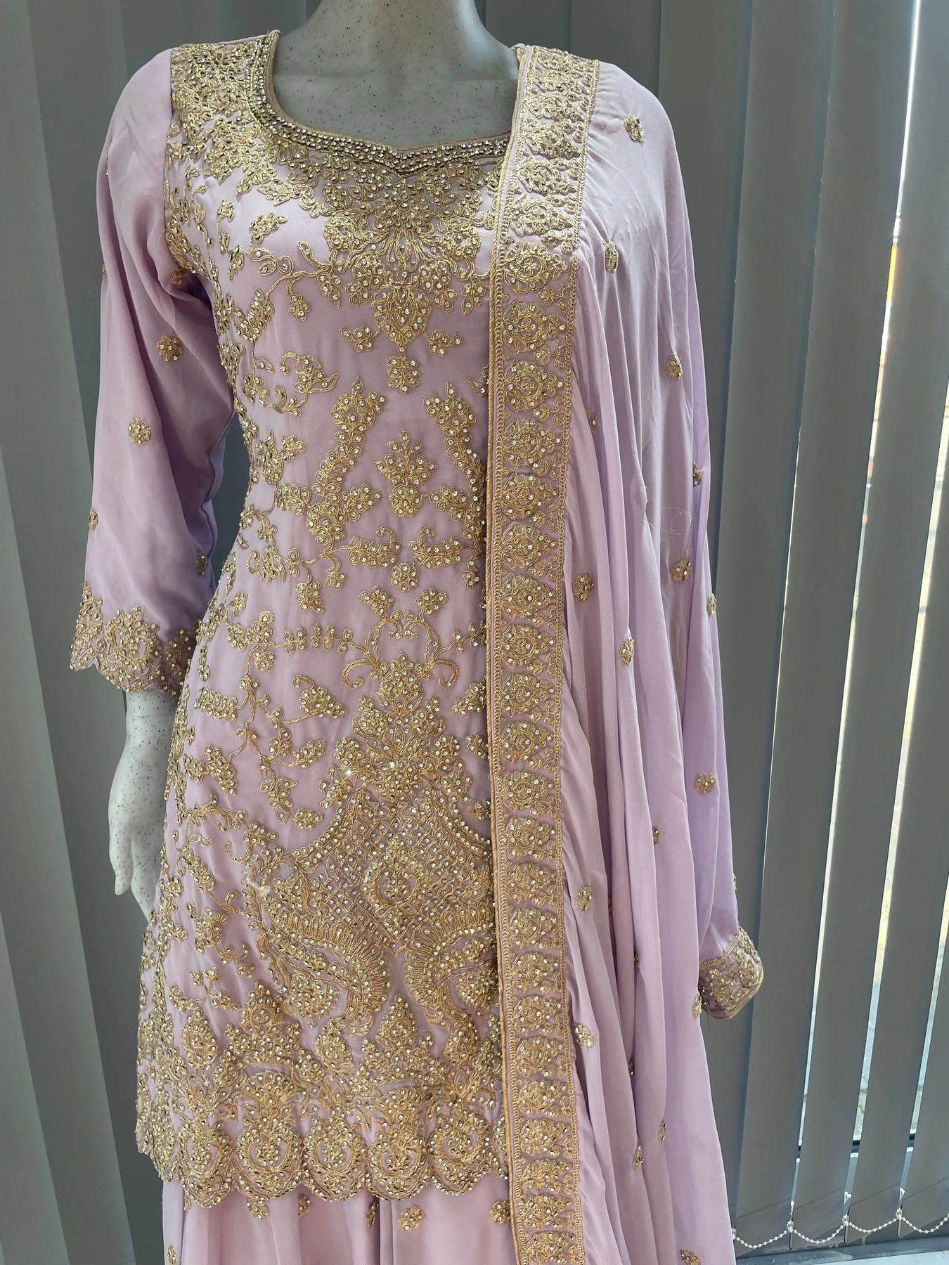Hand Embroidered Chiffon Kameez with an embroidered Chiffon Dupatta.