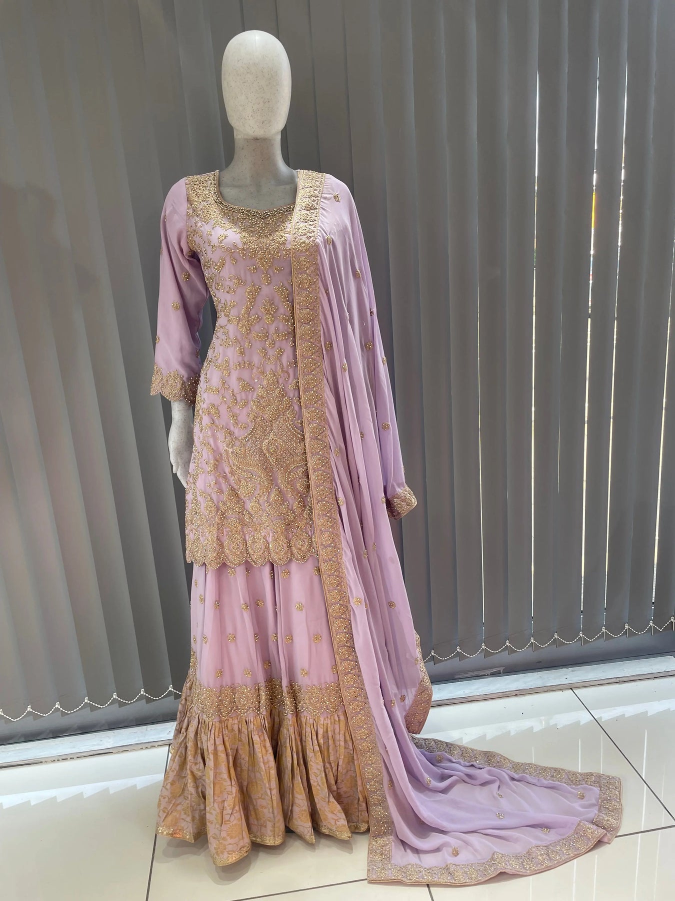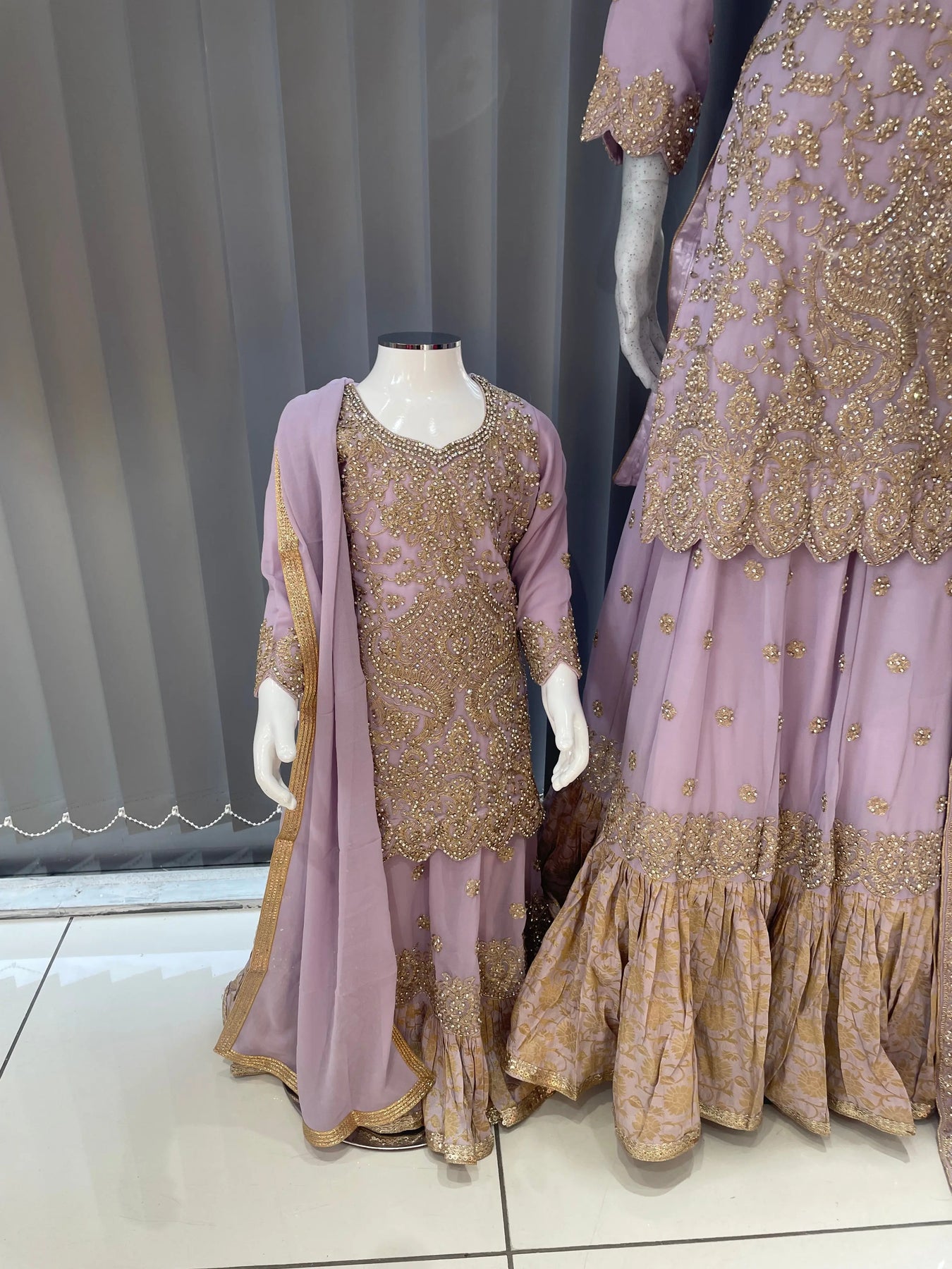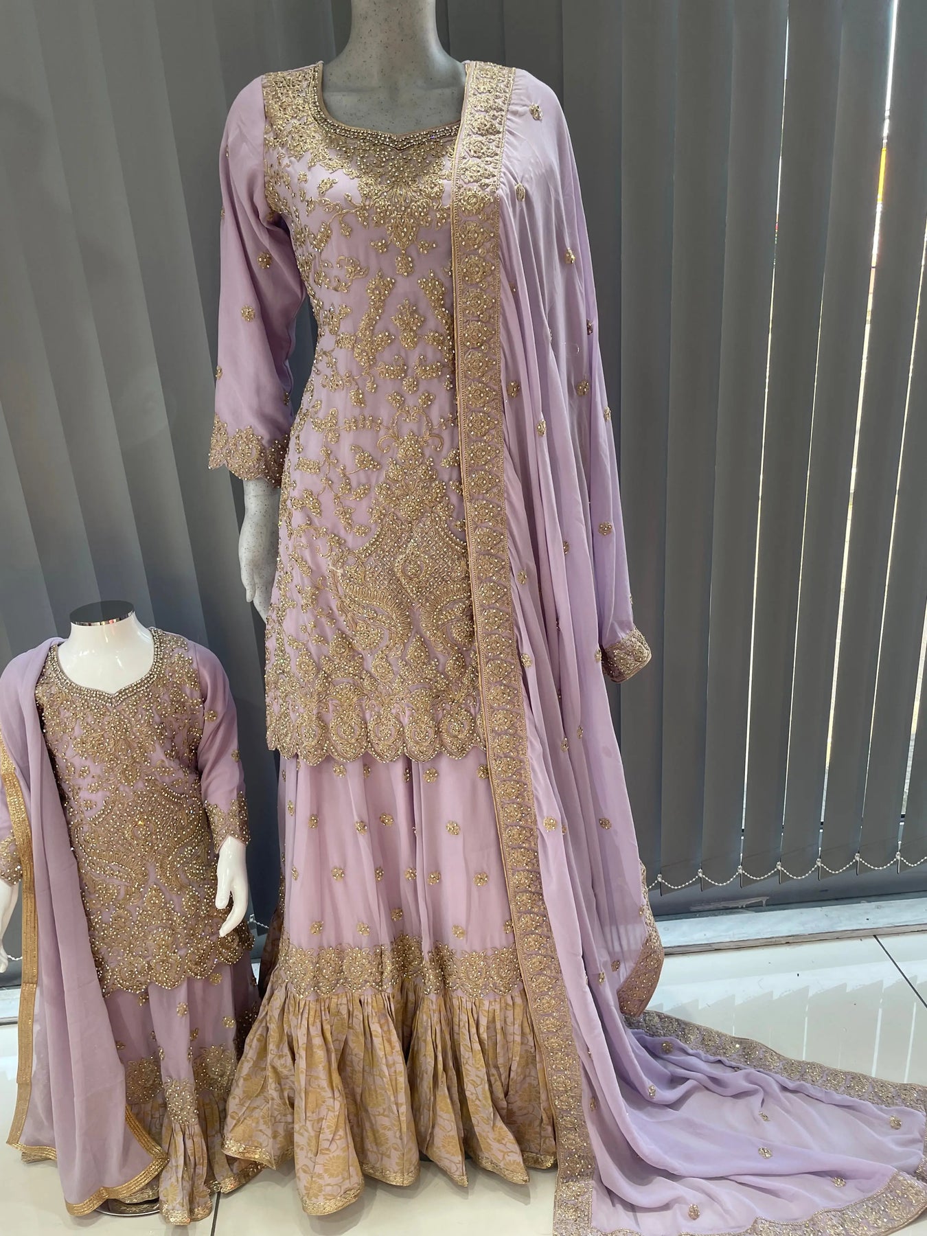 Hand Embroidered Chiffon Kameez with an embroidered Chiffon Dupatta.