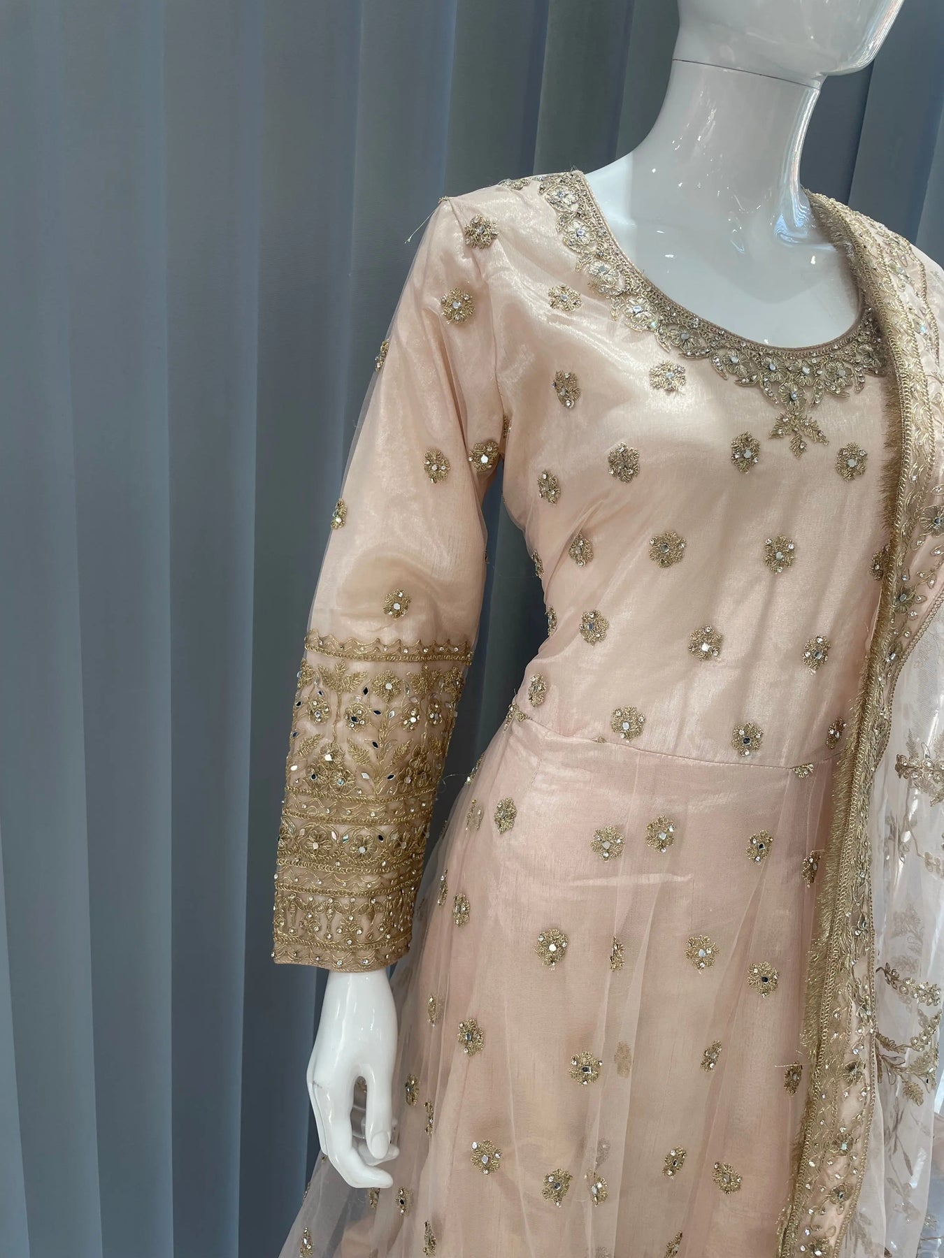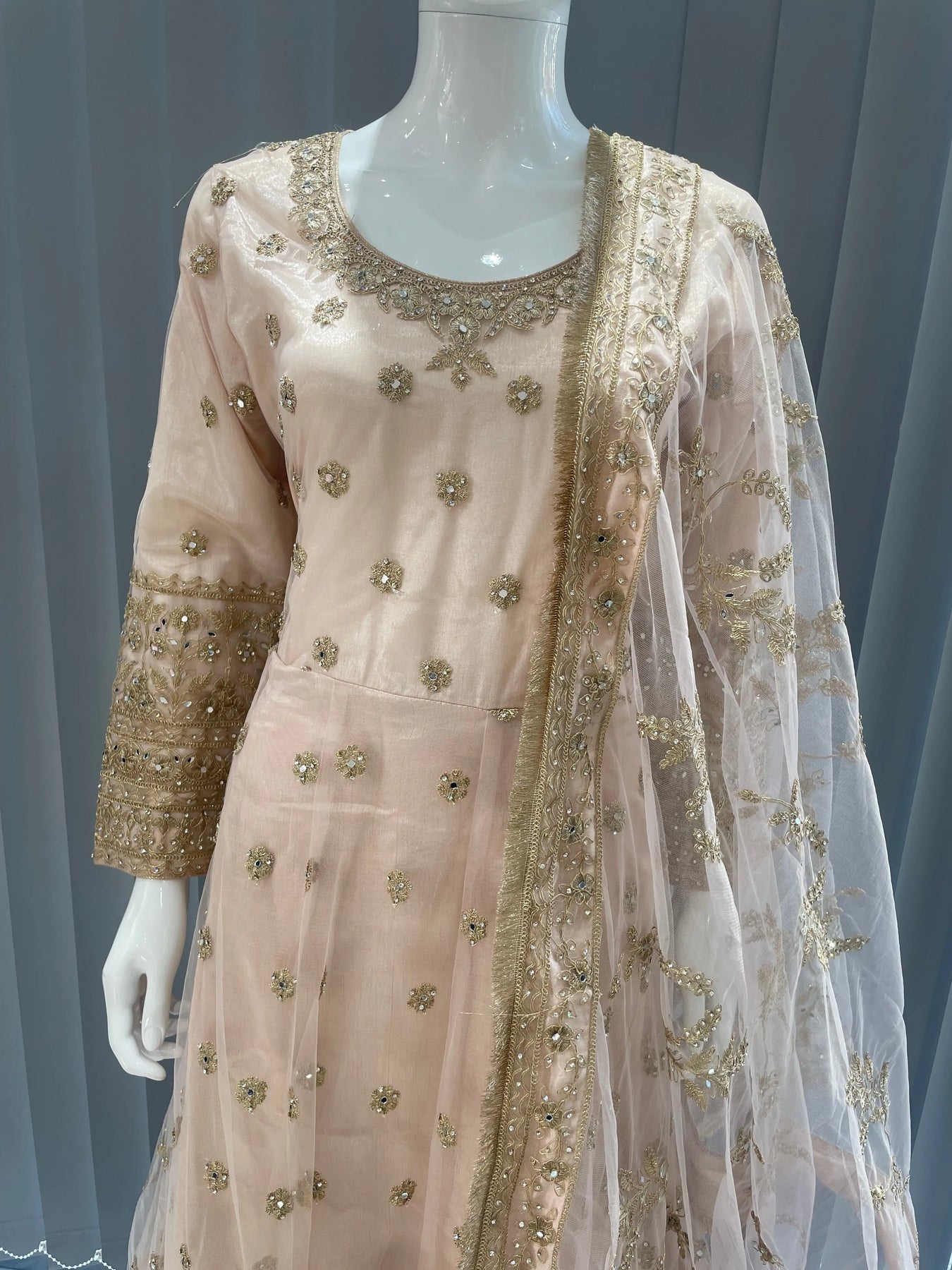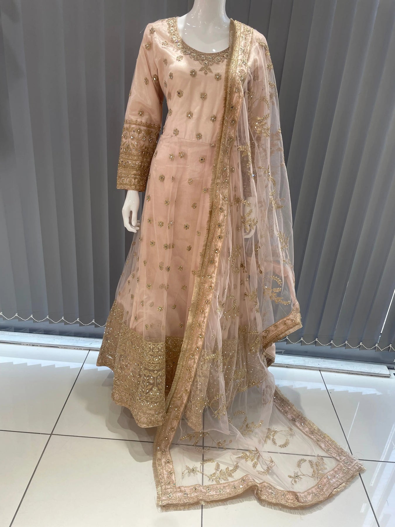 Embroidered Net Dress with an embroidered Chiffon Dupatta. The Dreds includes heavy embroidery with intricate details.