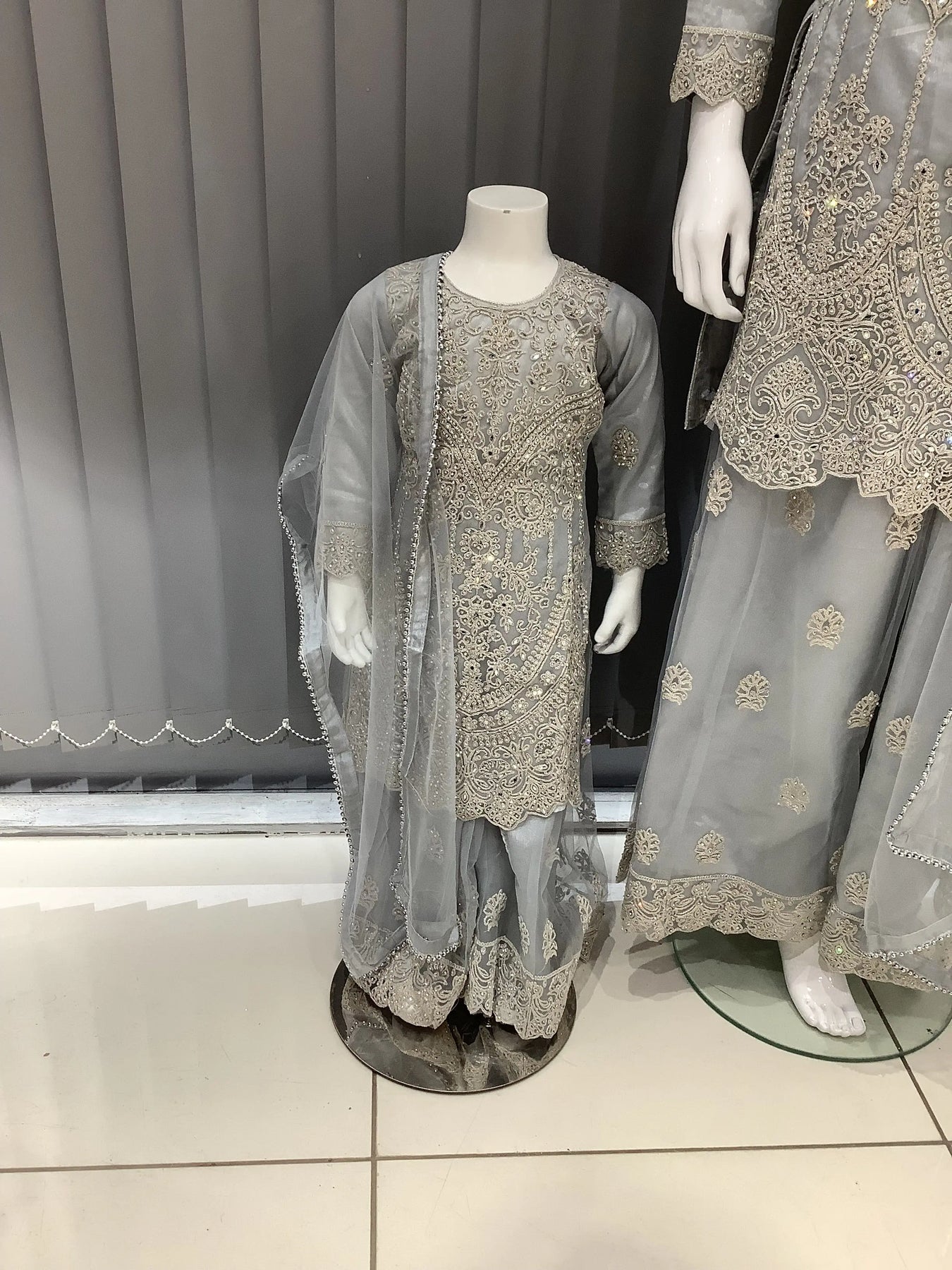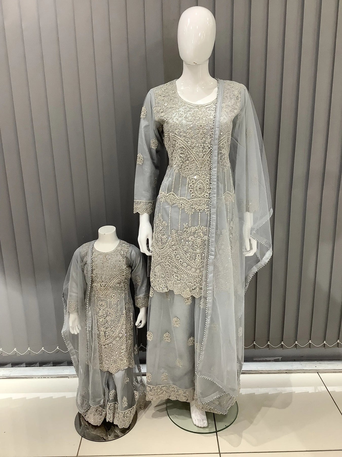 ASHA | Embroidered Net Mother & Daughter Ready To Wear Silver Grey | AS74