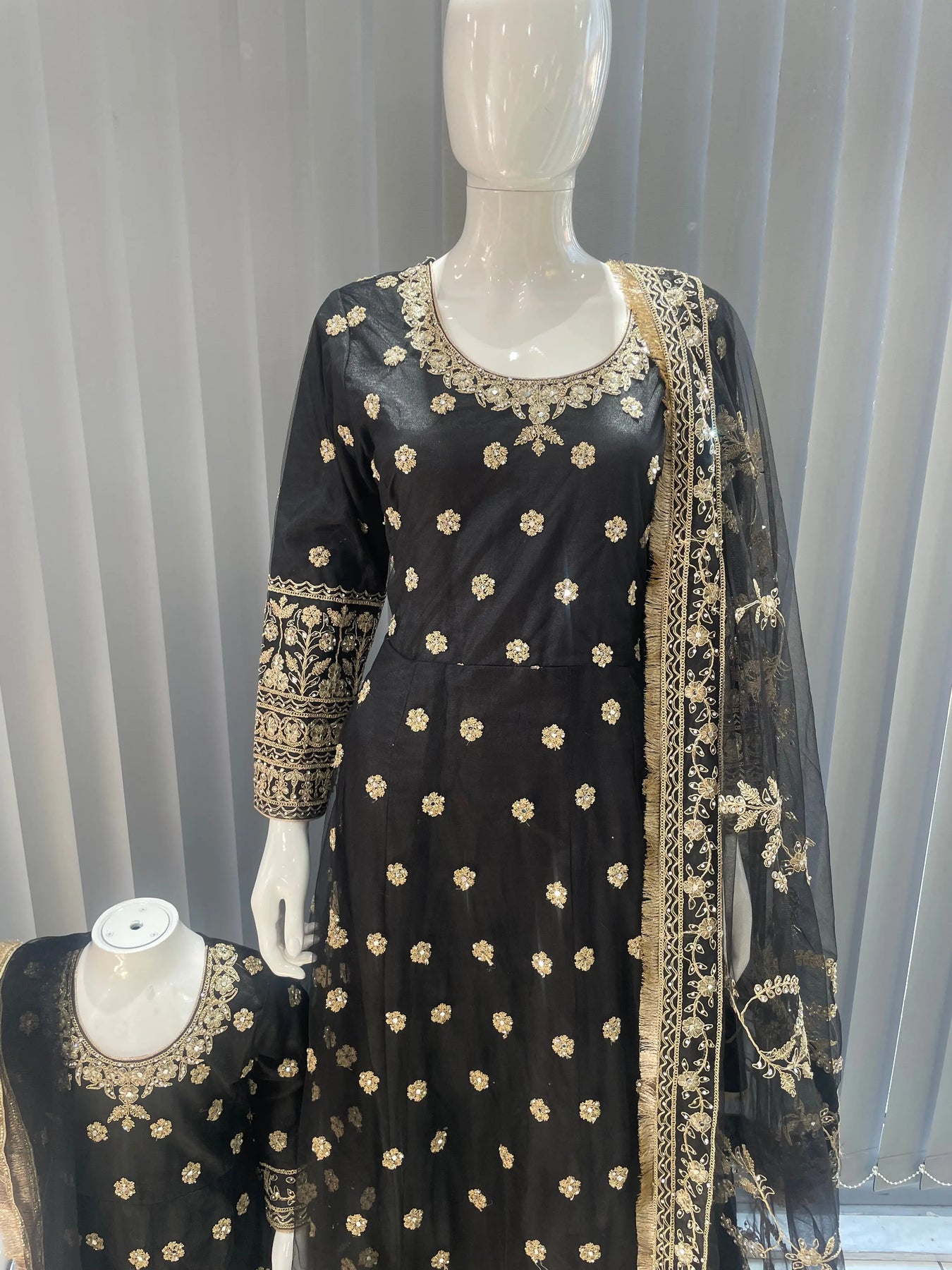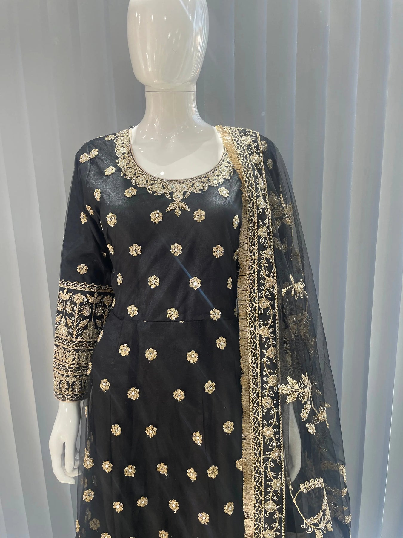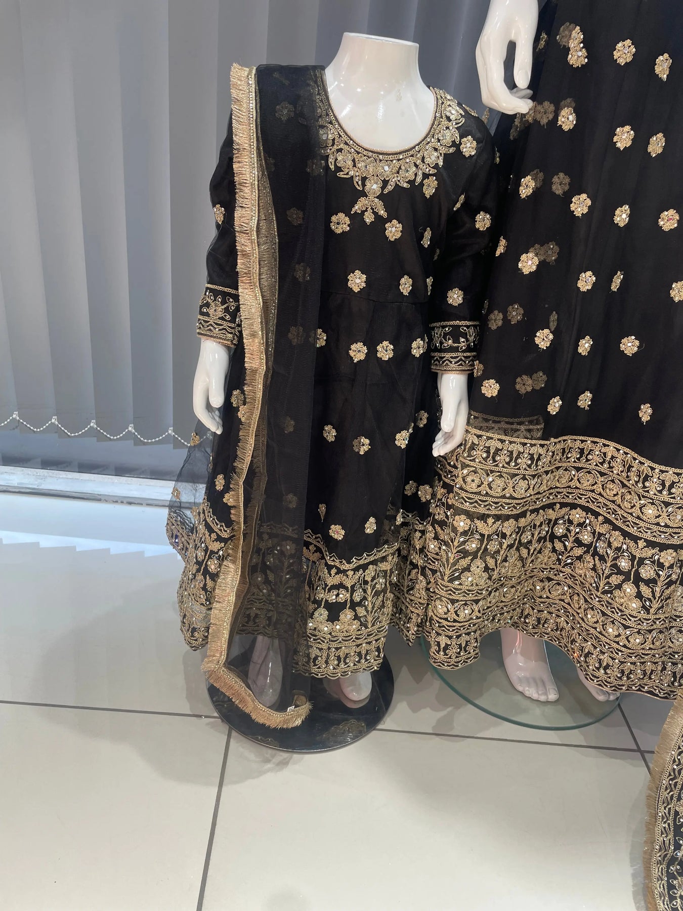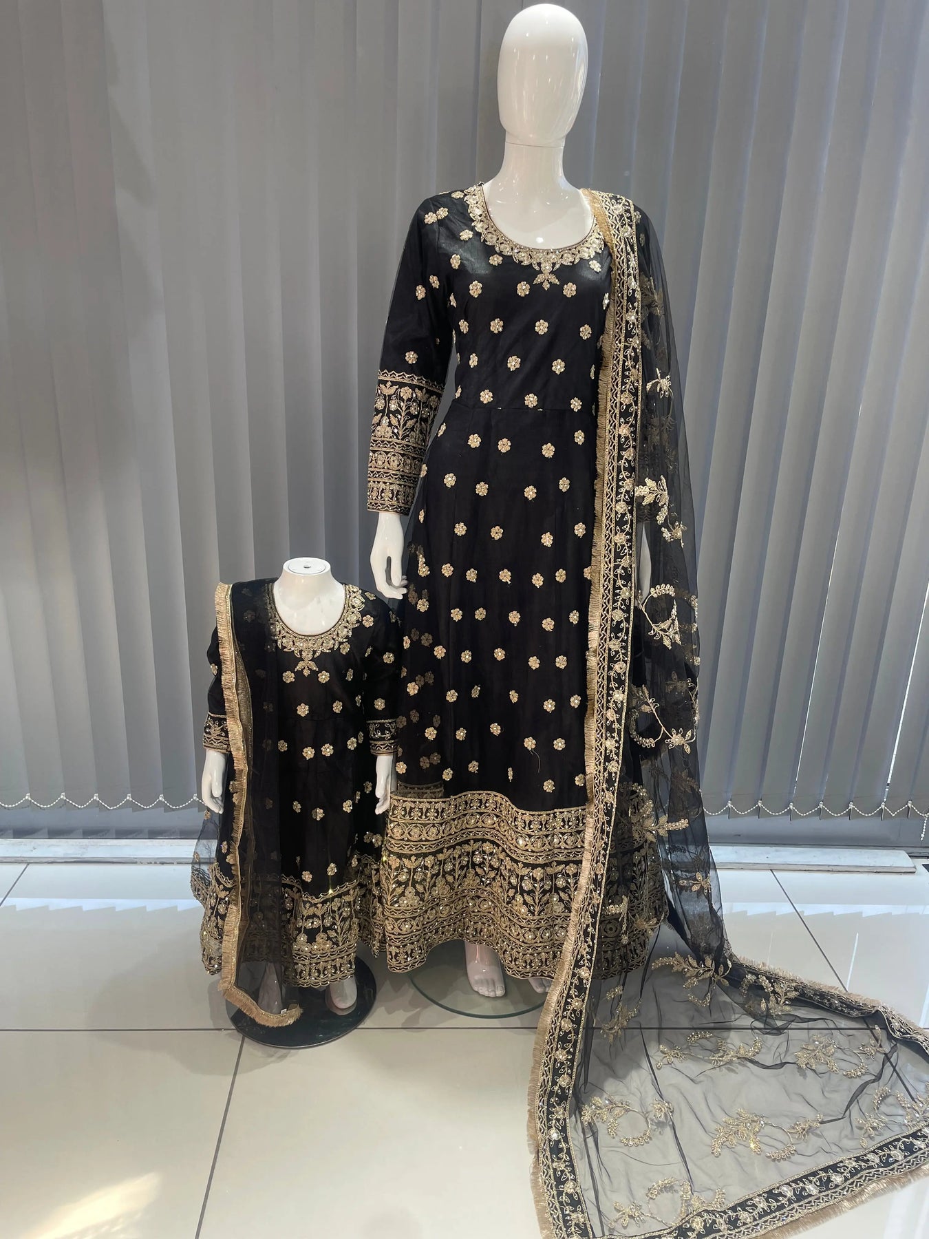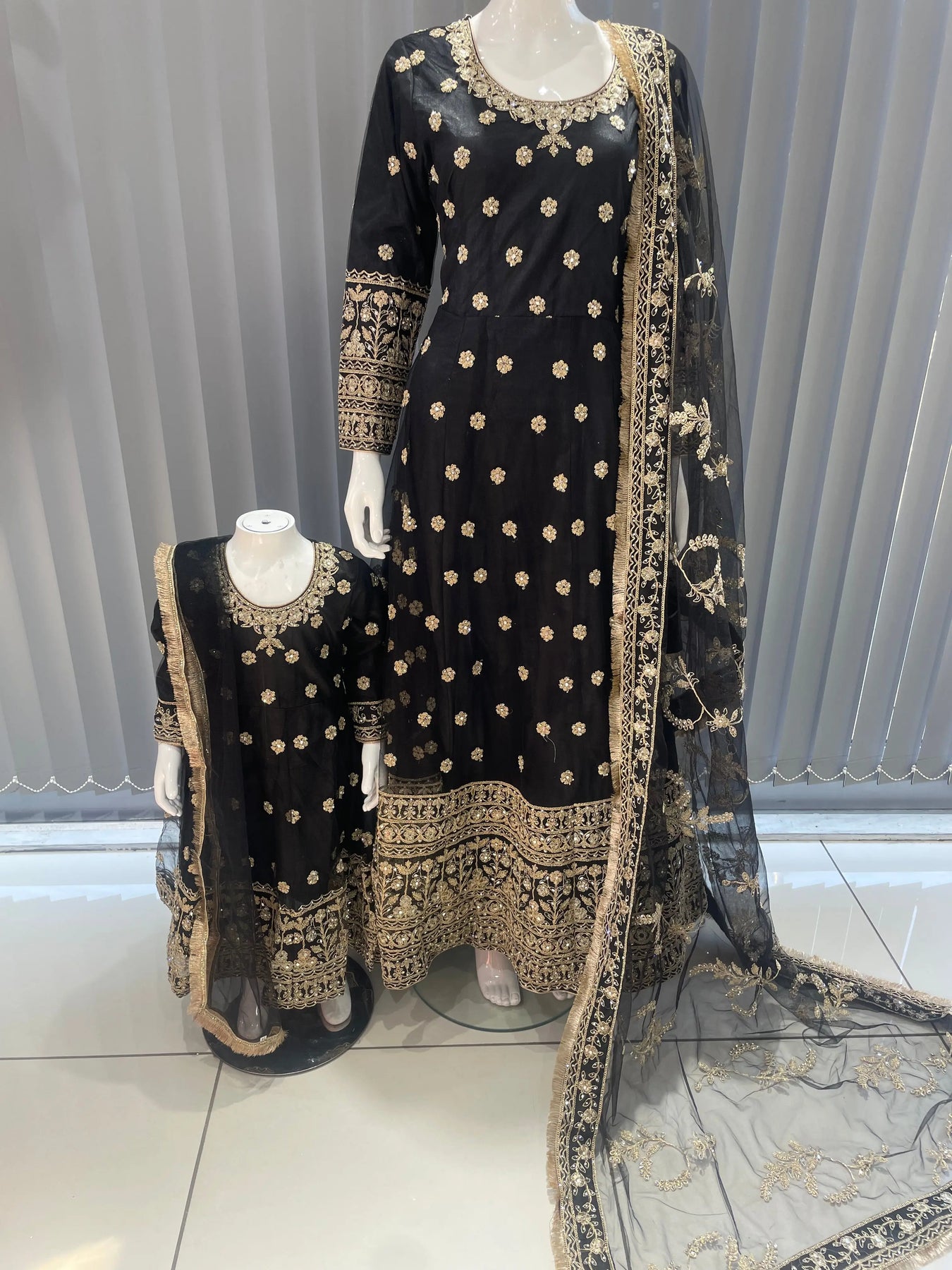 ASHA | Embroidered Net Mother & Daughter Ready To Wear Black | AS77