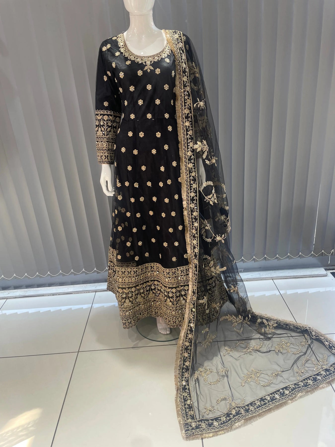 Embroidered Net Dress with an embroidered Chiffon Dupatta. The Dreds includes heavy embroidery with intricate details.