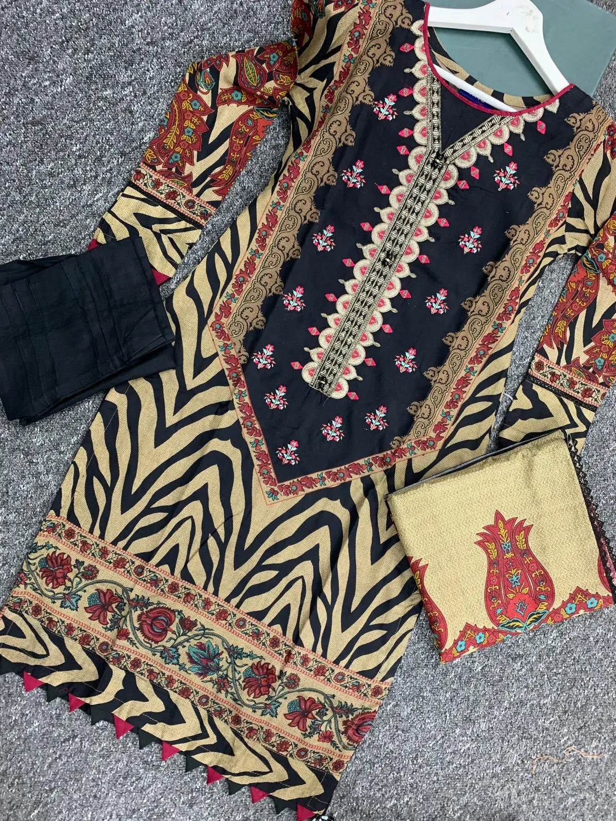Step into timeless grace with our beautifully embroidered linen 3-piece suit, designed for the modern woman who cherishes her heritage. 💫
