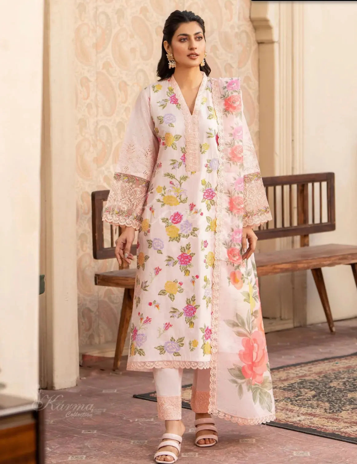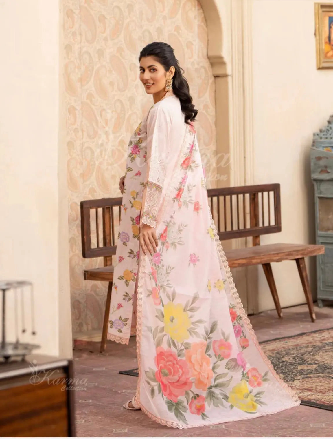 KARMA ‘Kayseria Vol 1’ | Embroidered Cotton Readymade | KC-1413 (Pastel Peach)