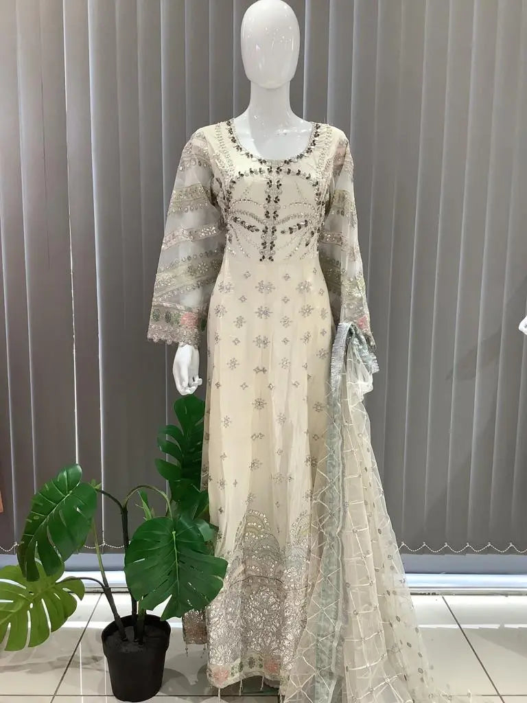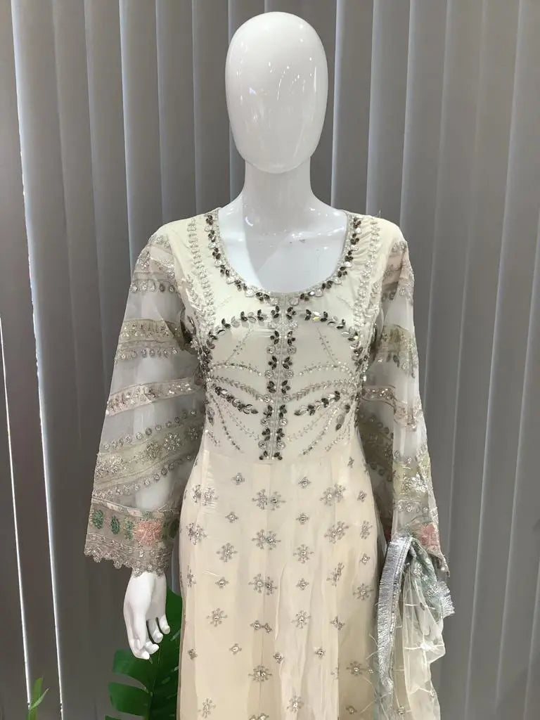 Embroidered Chiffon with An Embroidered Net Dupatta