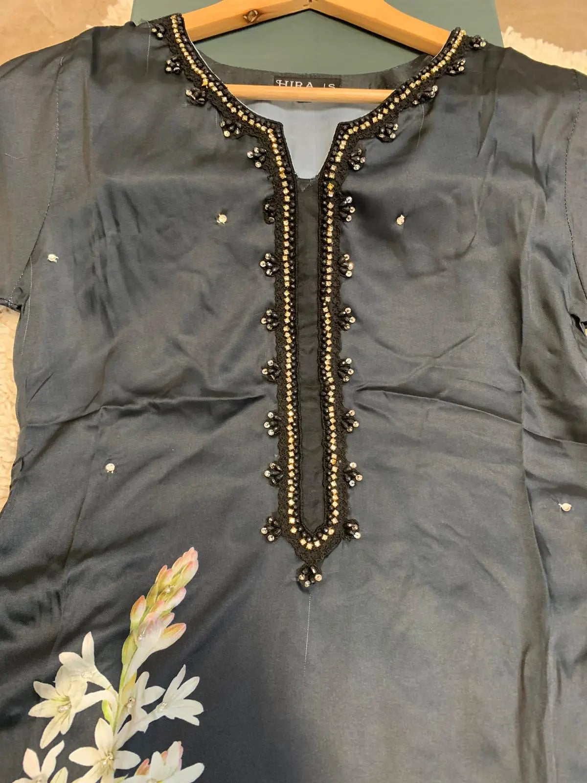 Hand Embroidered items are delicate in nature and can break of beading can become displaced. There is also a possibility in embroidery designs and prints which is unavoidable. By placing an order on our website you agree and accept the possibility of variation in comparison to the advertised images displayed on the website. We make every effort to minimise variations.