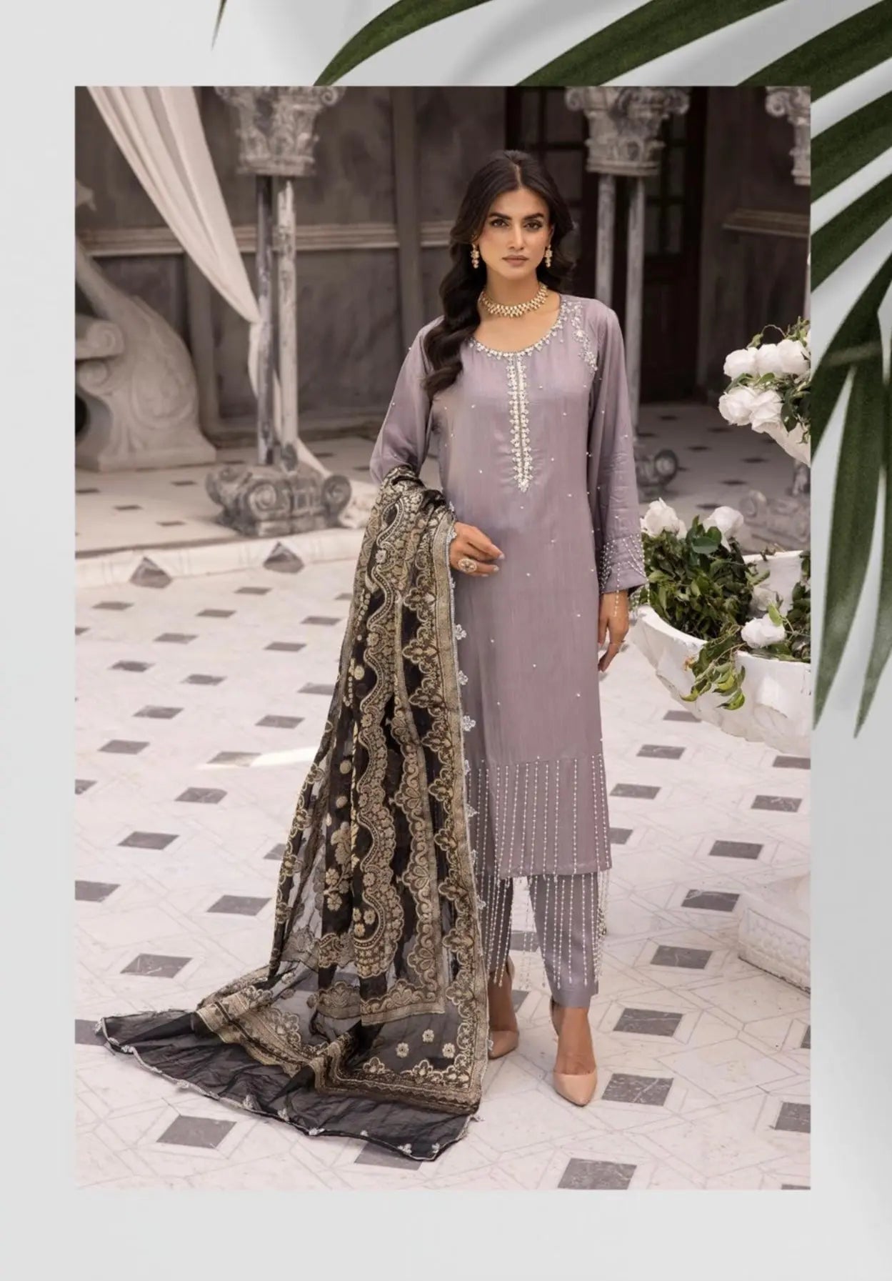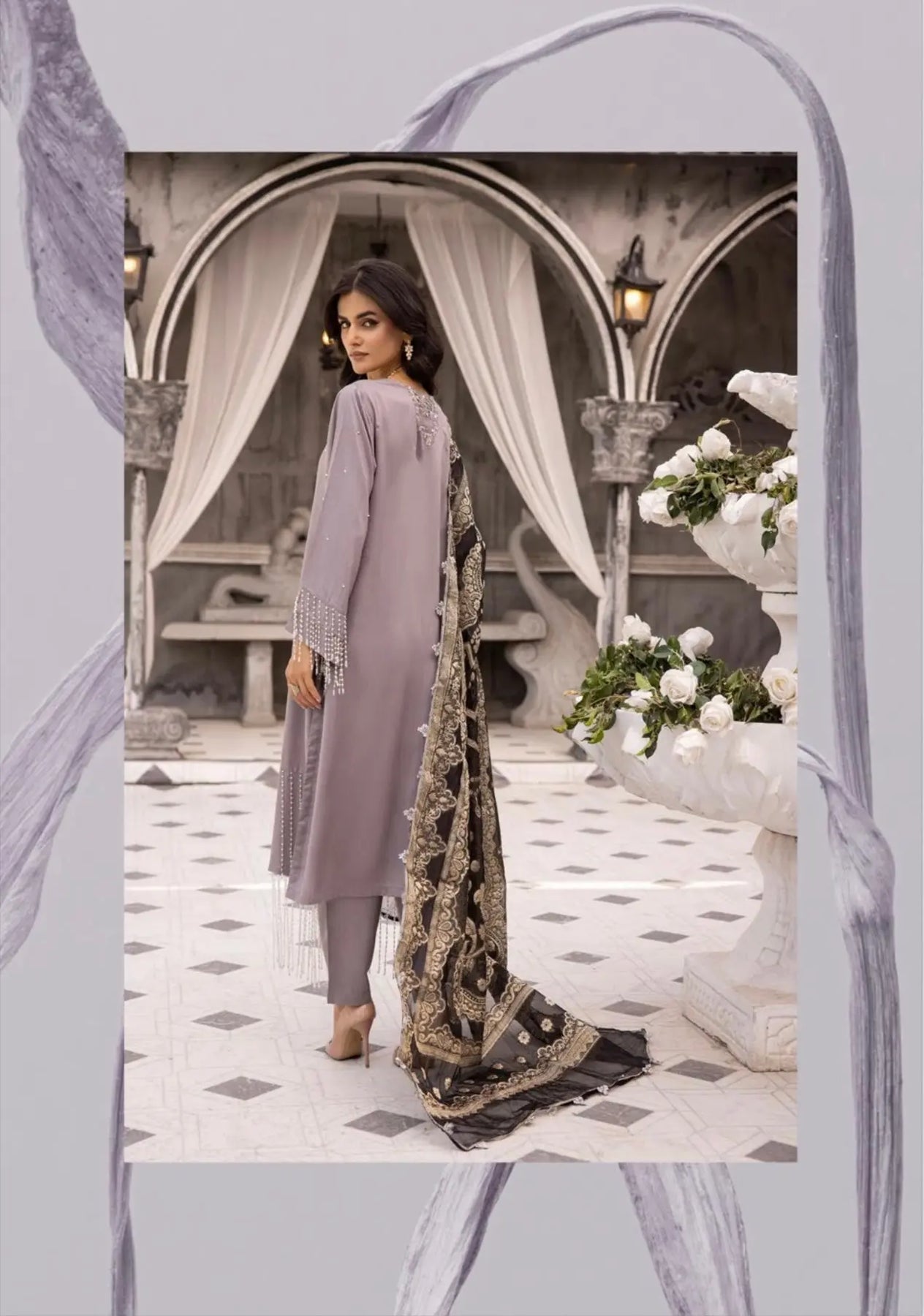 SIMRANS ‘Ivana’ | Embroidered Viscose Readymade | SM552 (Grey)