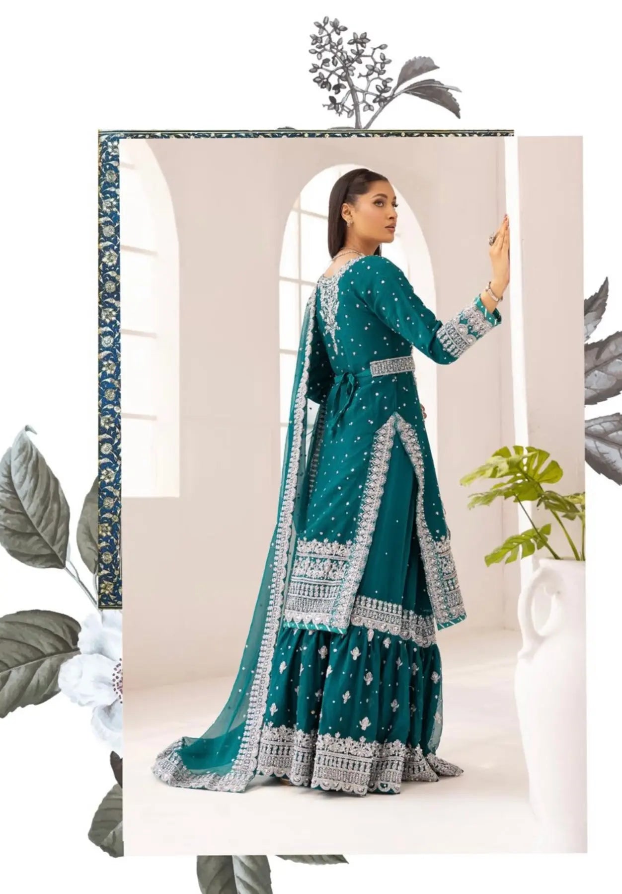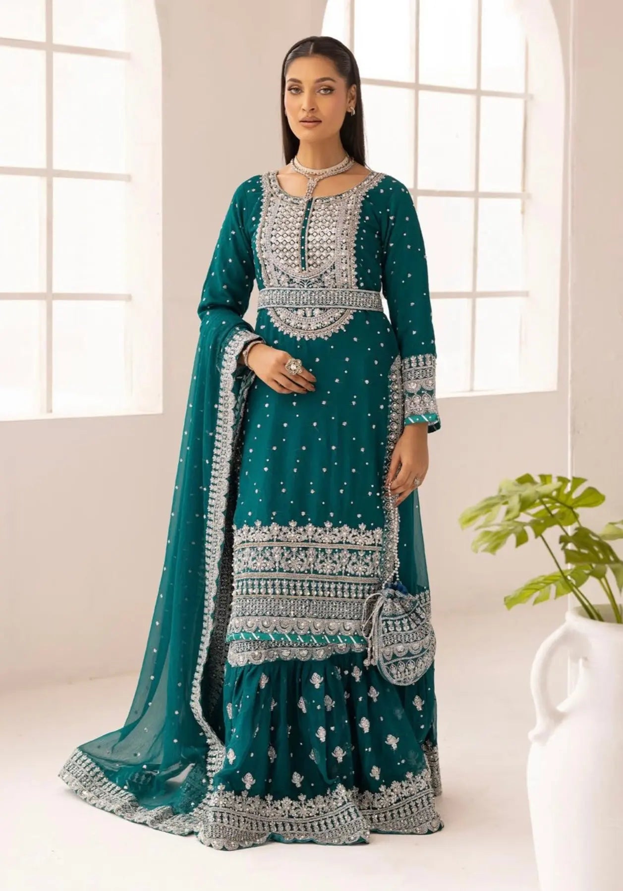 SIMRANS ‘Sanam’ | Embroidered Chiffon Farshi Readymade | SM649 (Teal)