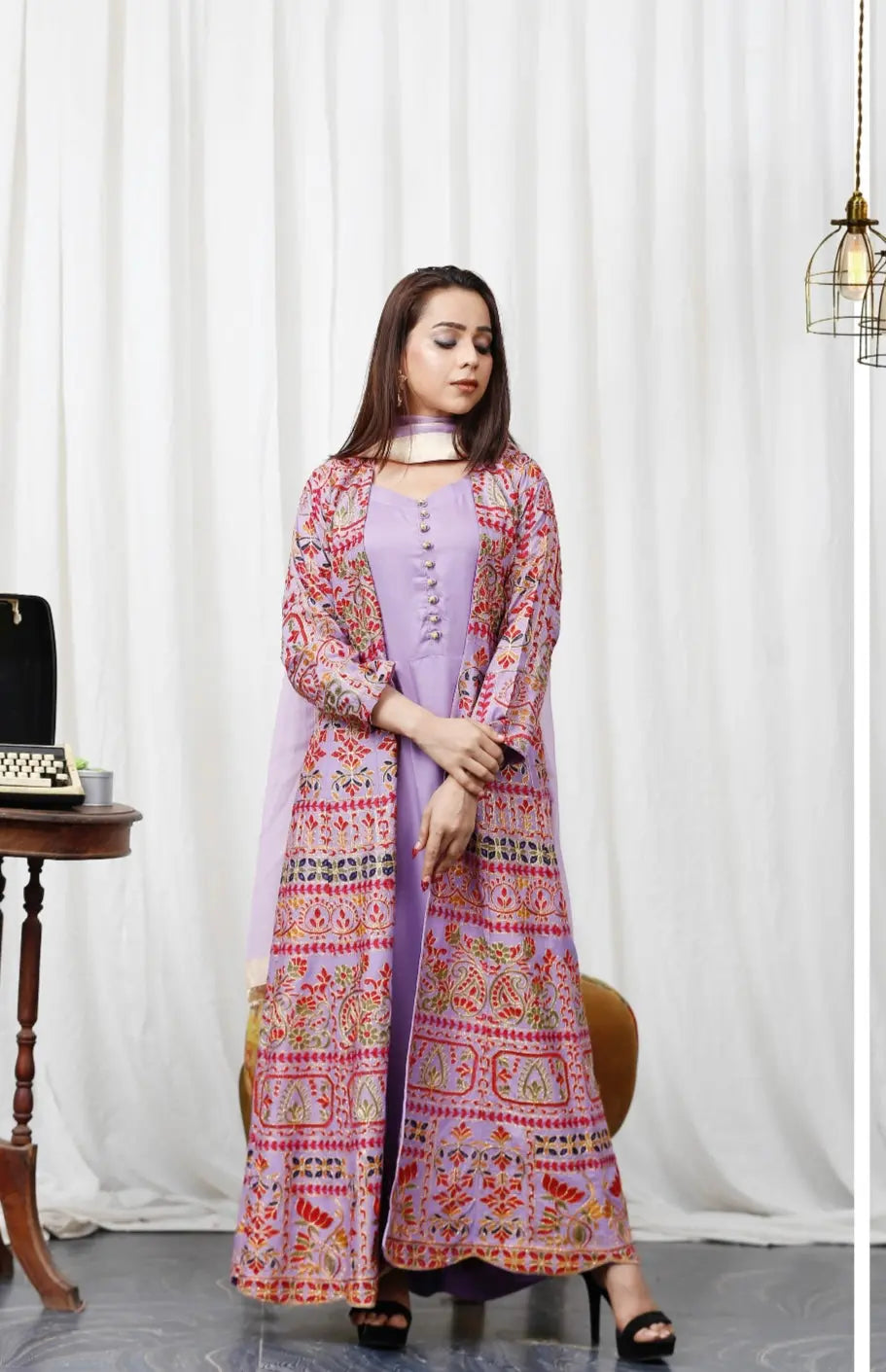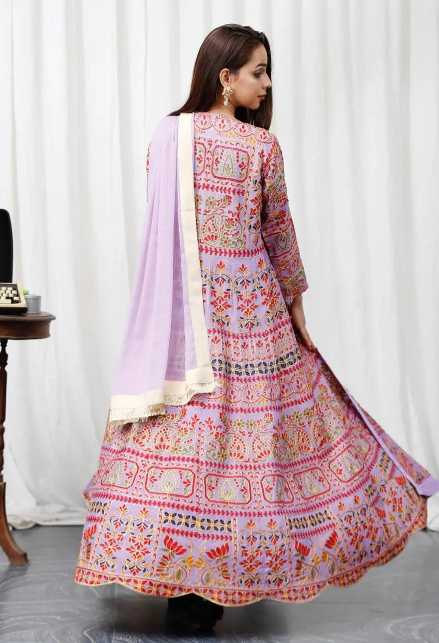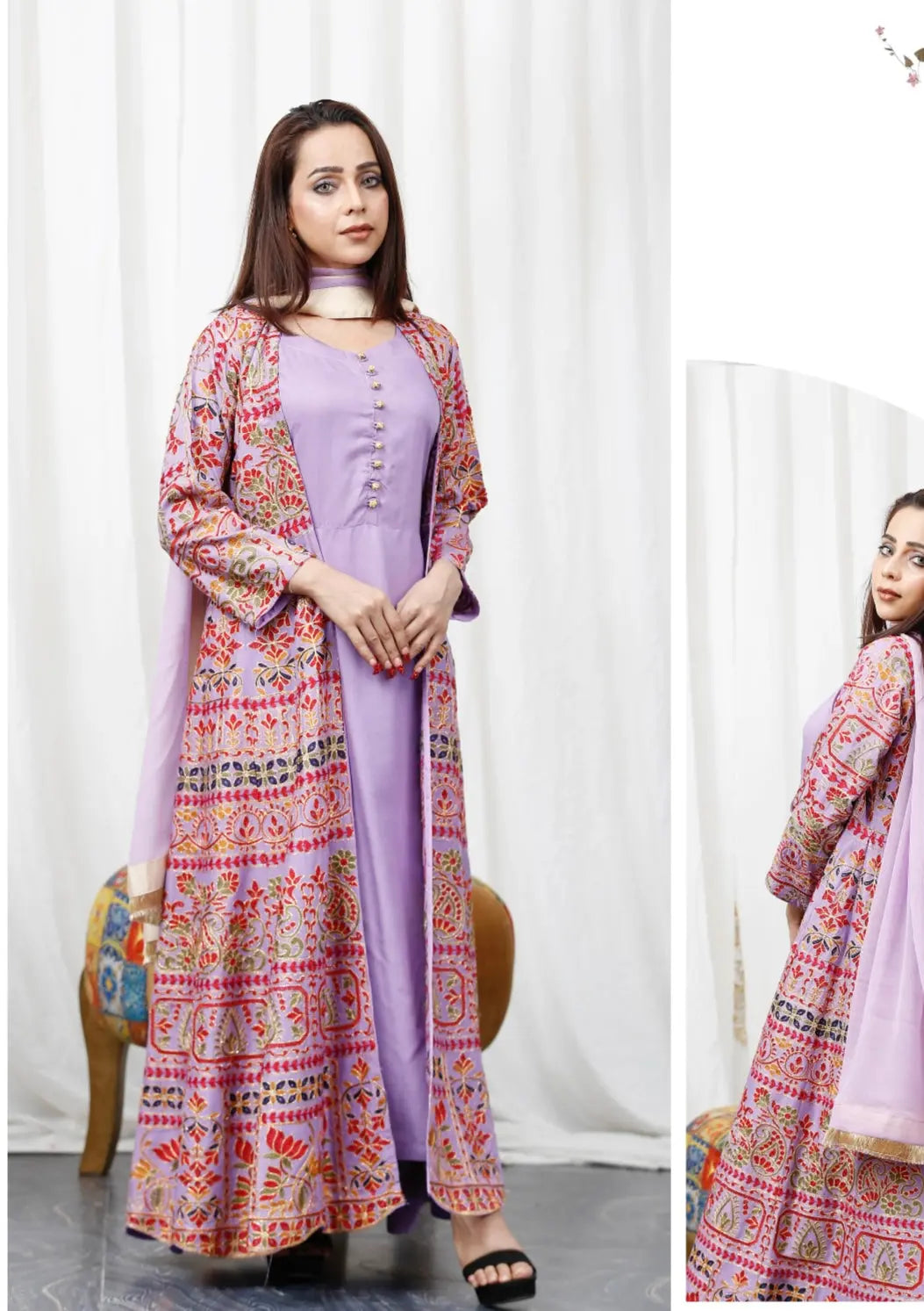 SOFIA KHAS | Embroidered Linen Mother & Daughter Readymade | JS163 (Lilac)