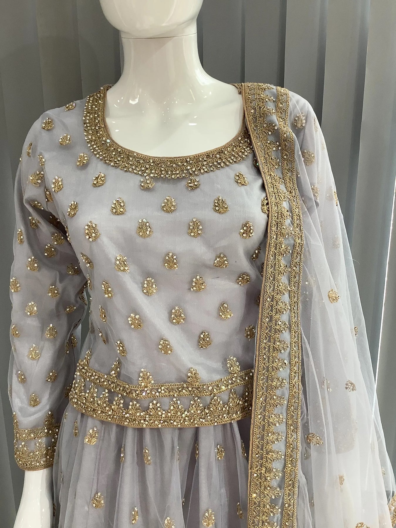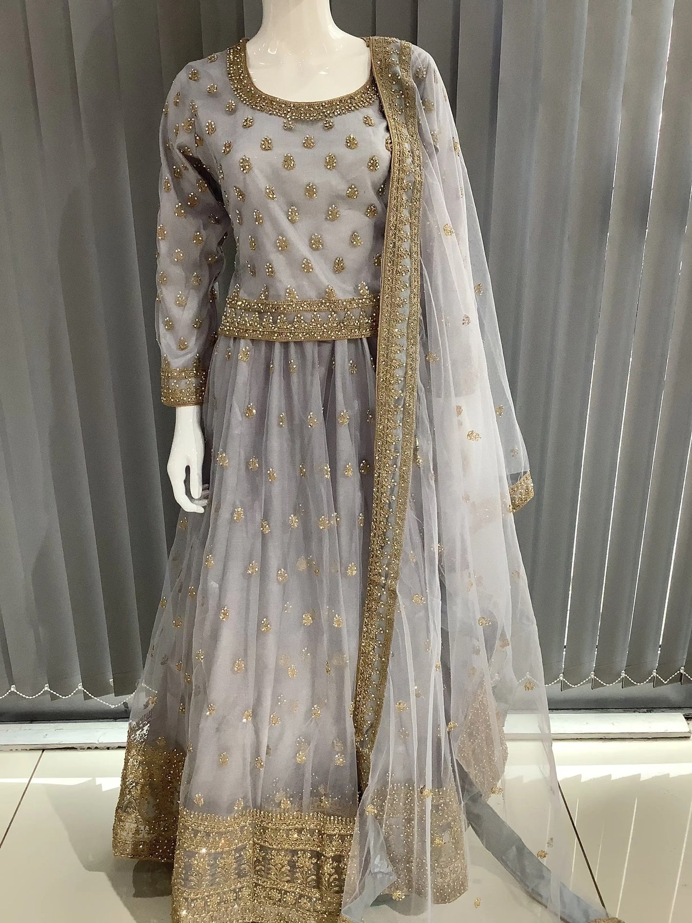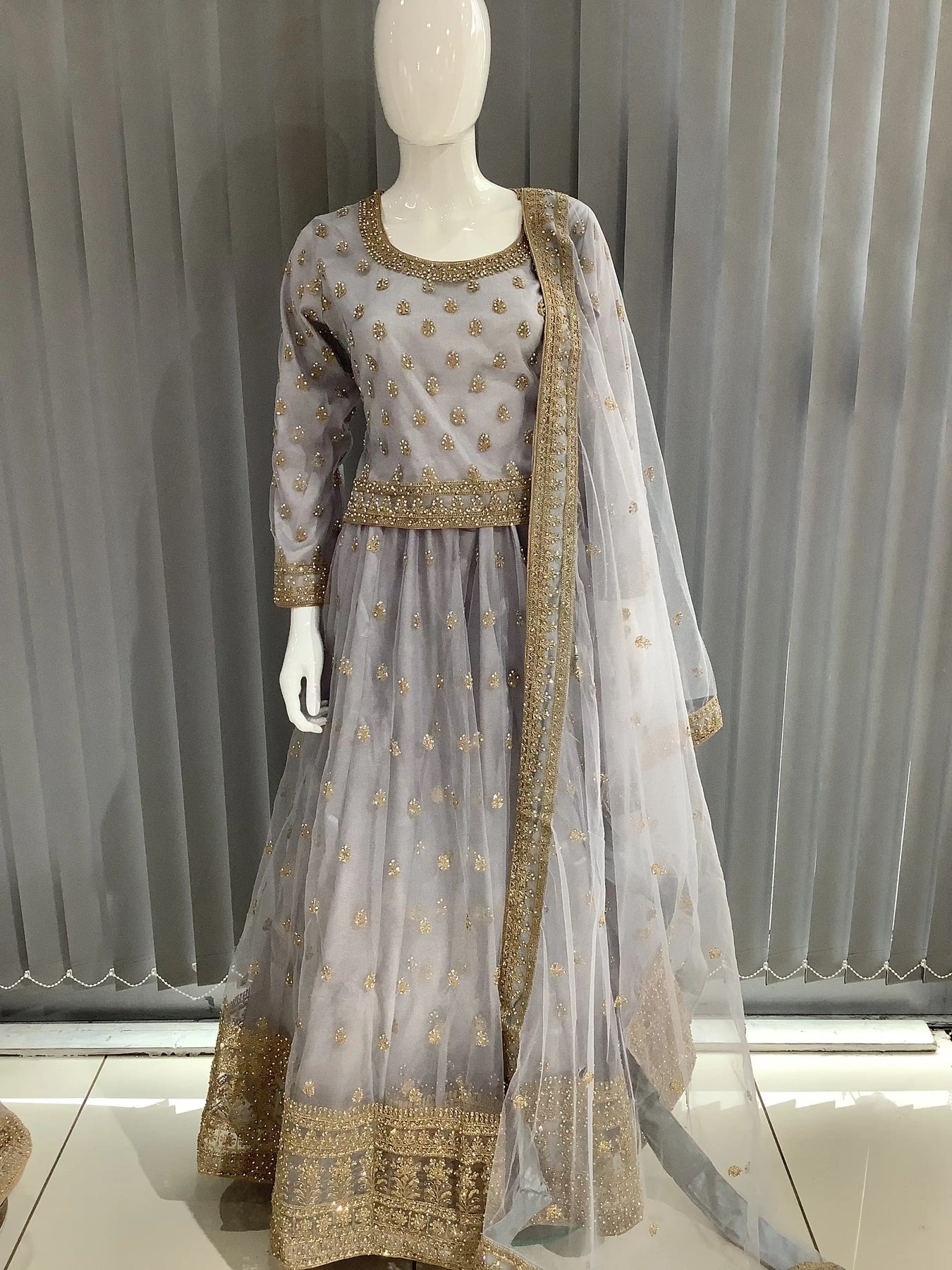 Embroidered Net Choli with an embroidered  Dupatta. The Lehanga includes heavy embroidery with intricate details.