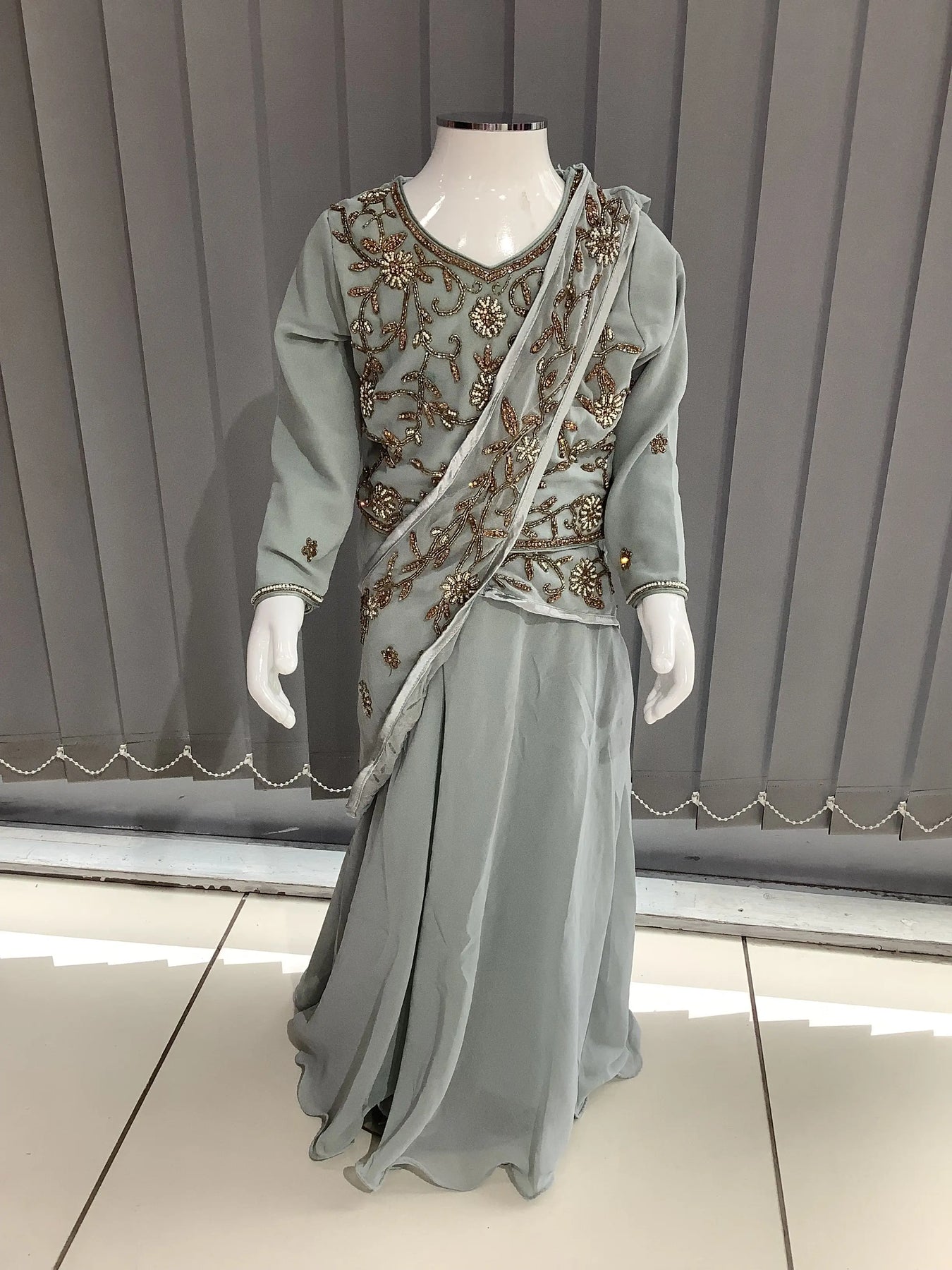 From time to time beading/ sequences may get displaced and this is not thought of as a fault but is due to the nature of the work. These articles of clothing should be worn with care.