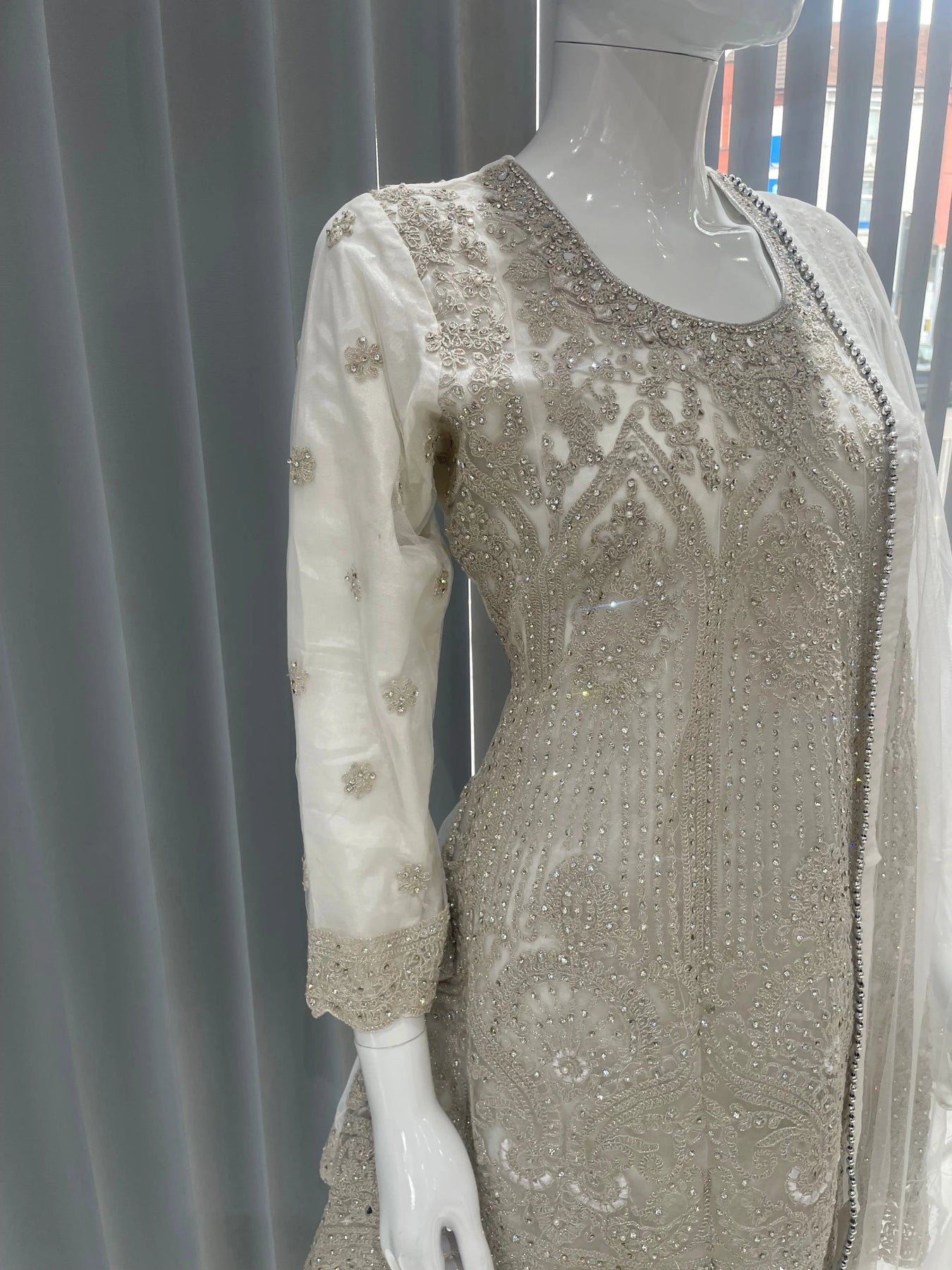 Embroidered Net Kameez with an embroidered Net Dupatta. The kameez includes heavy embroidery with intricate details.