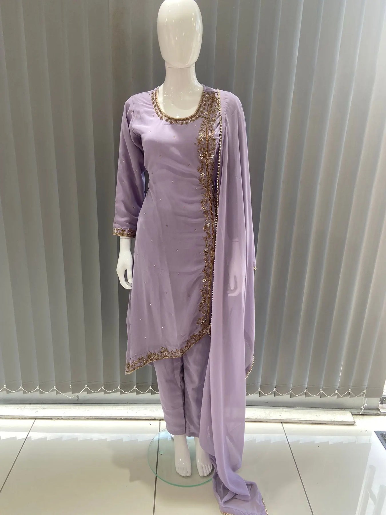 ASHA | Embroidered Hand Work Mother & Daughter Ready To Wear Dark Lailac | AS82