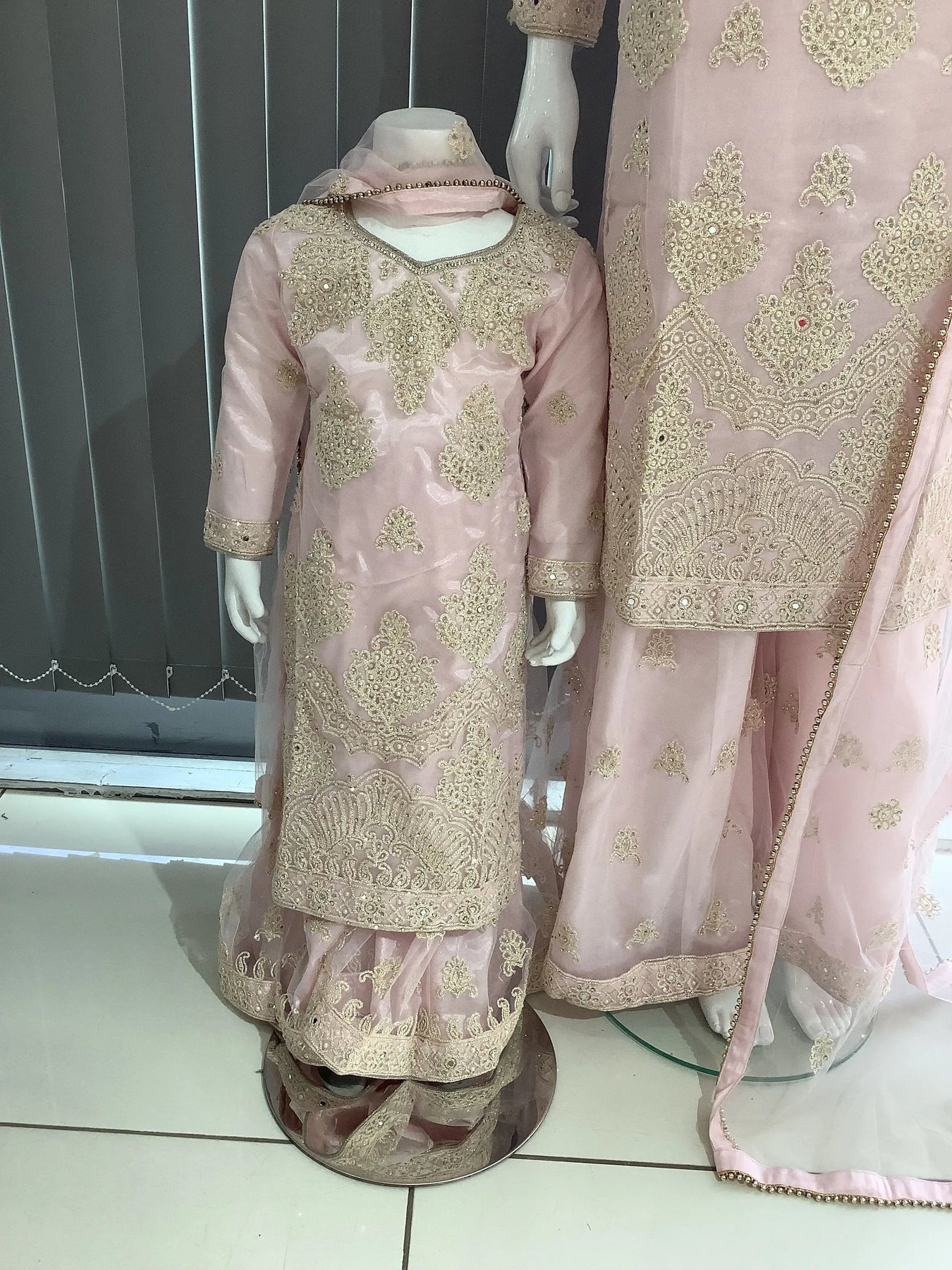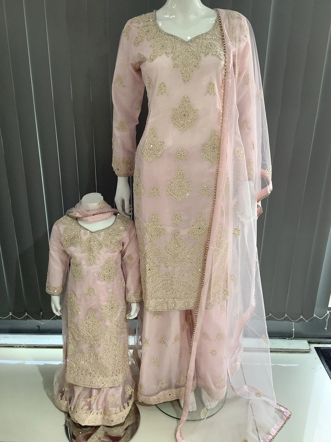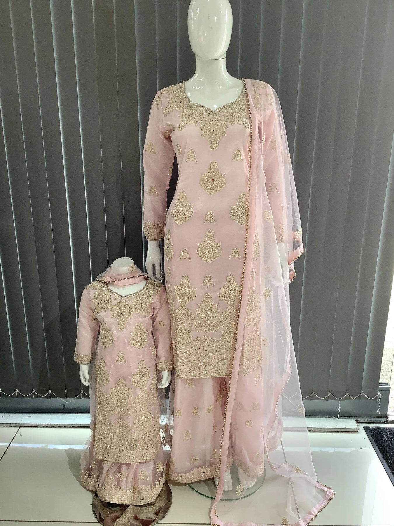 ASHA | Embroidered Net Dori Work Mother & Daughter Dress Ready To Wear Light Pink| AS67