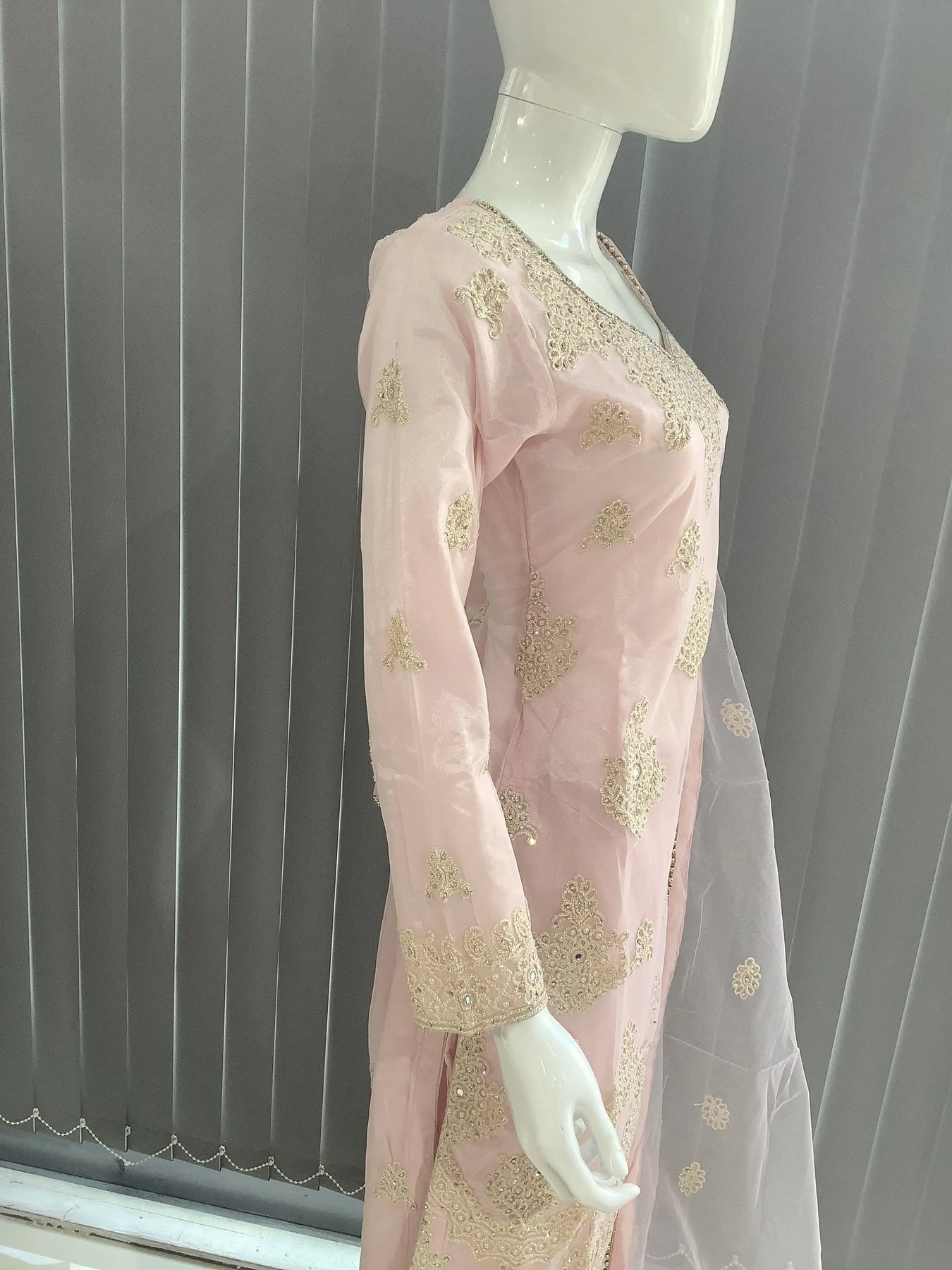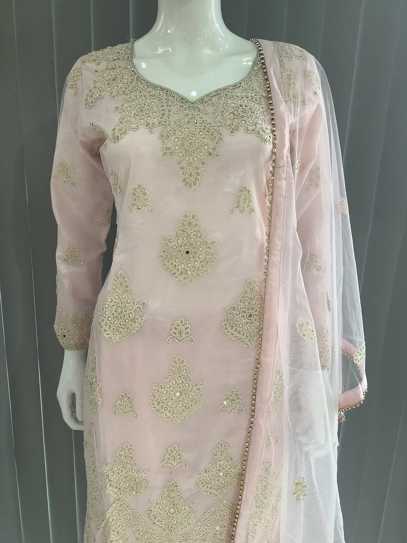 From time to time beading/ sequences may get displaced and this is not thought of as a fault but is due to the nature of the work. These articles of clothing should be worn with care.