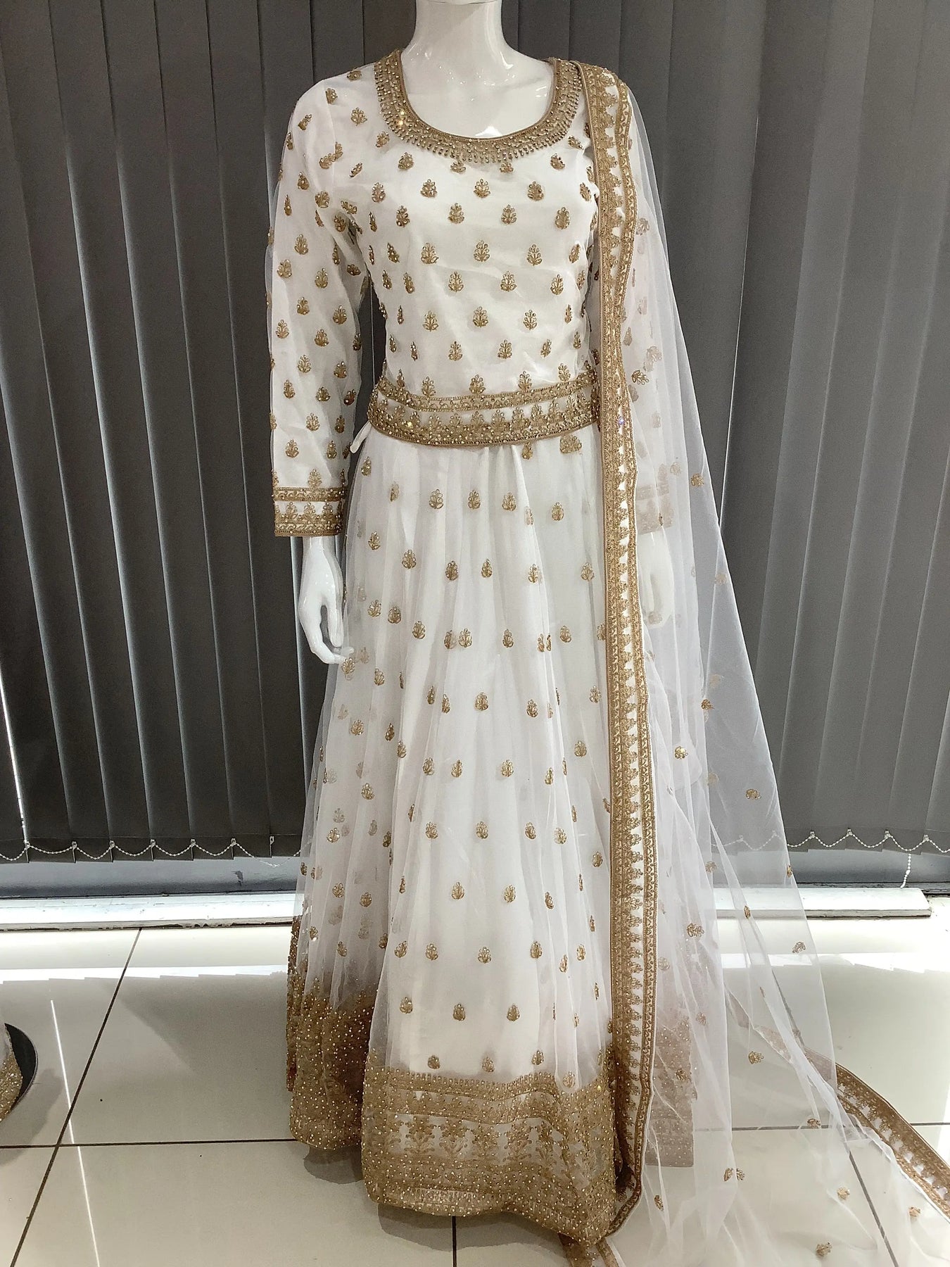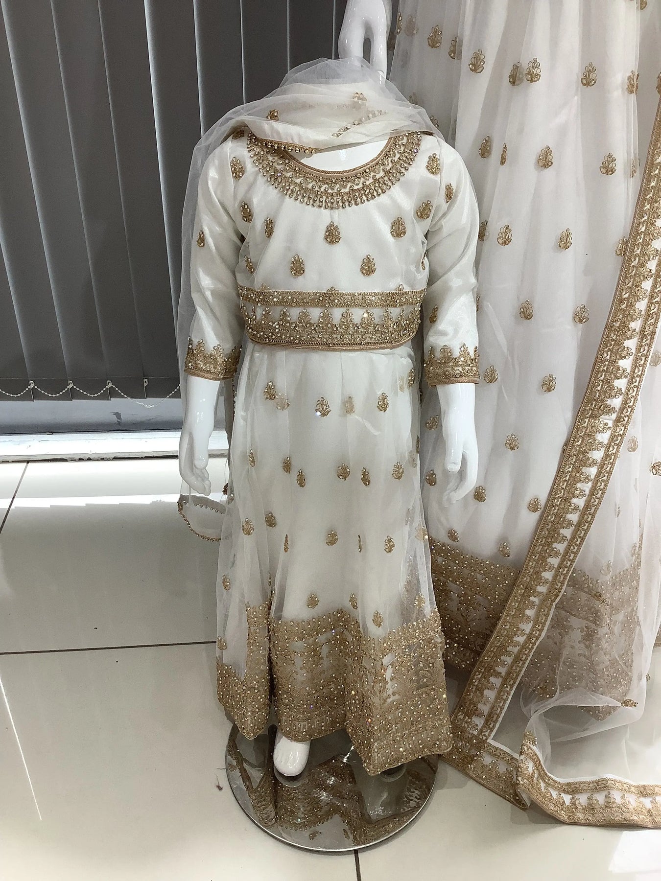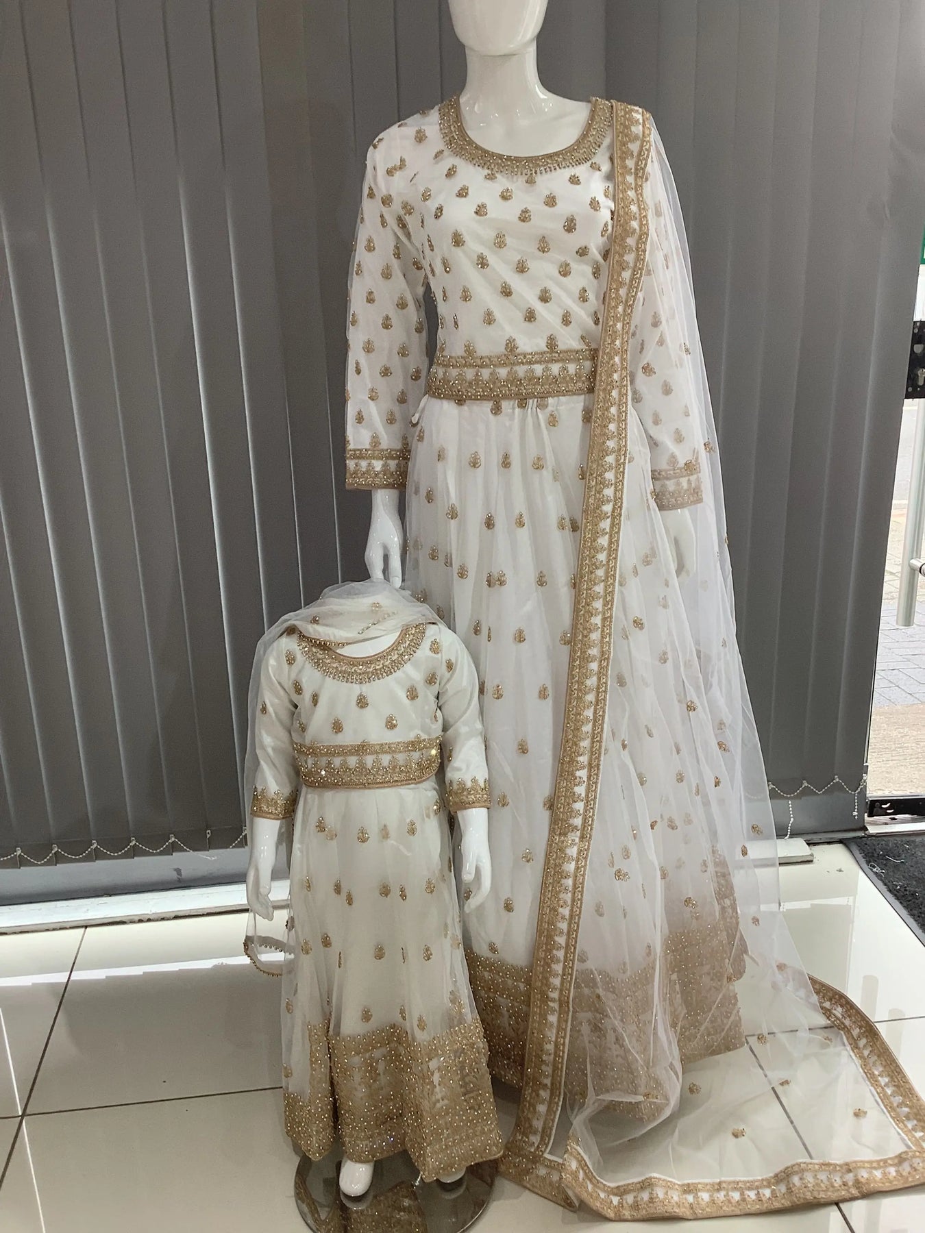 ASHA | Embroidered Net Dori Work Mother & Daughter Lehanga Choli Ready To Wear White | AS58