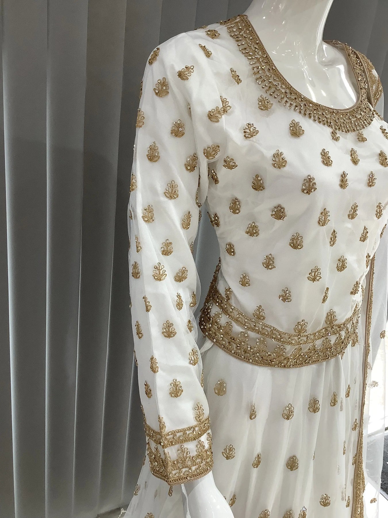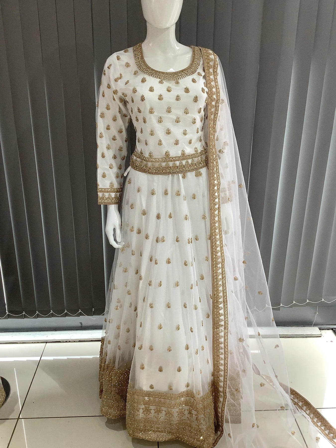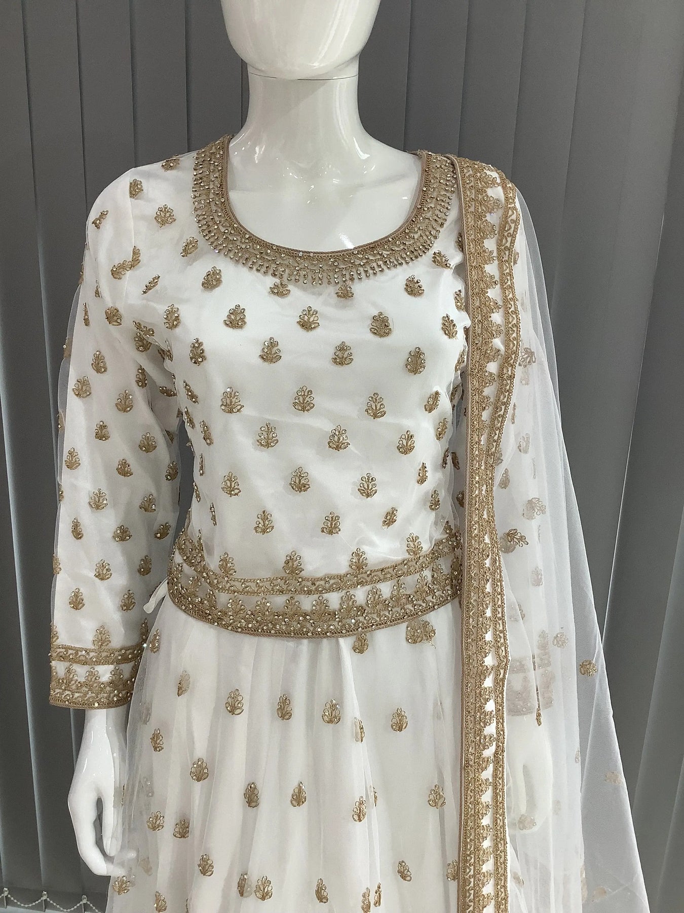 ASHA | Embroidered Net Dori Work Mother & Daughter Lehanga Choli Ready To Wear White | AS58