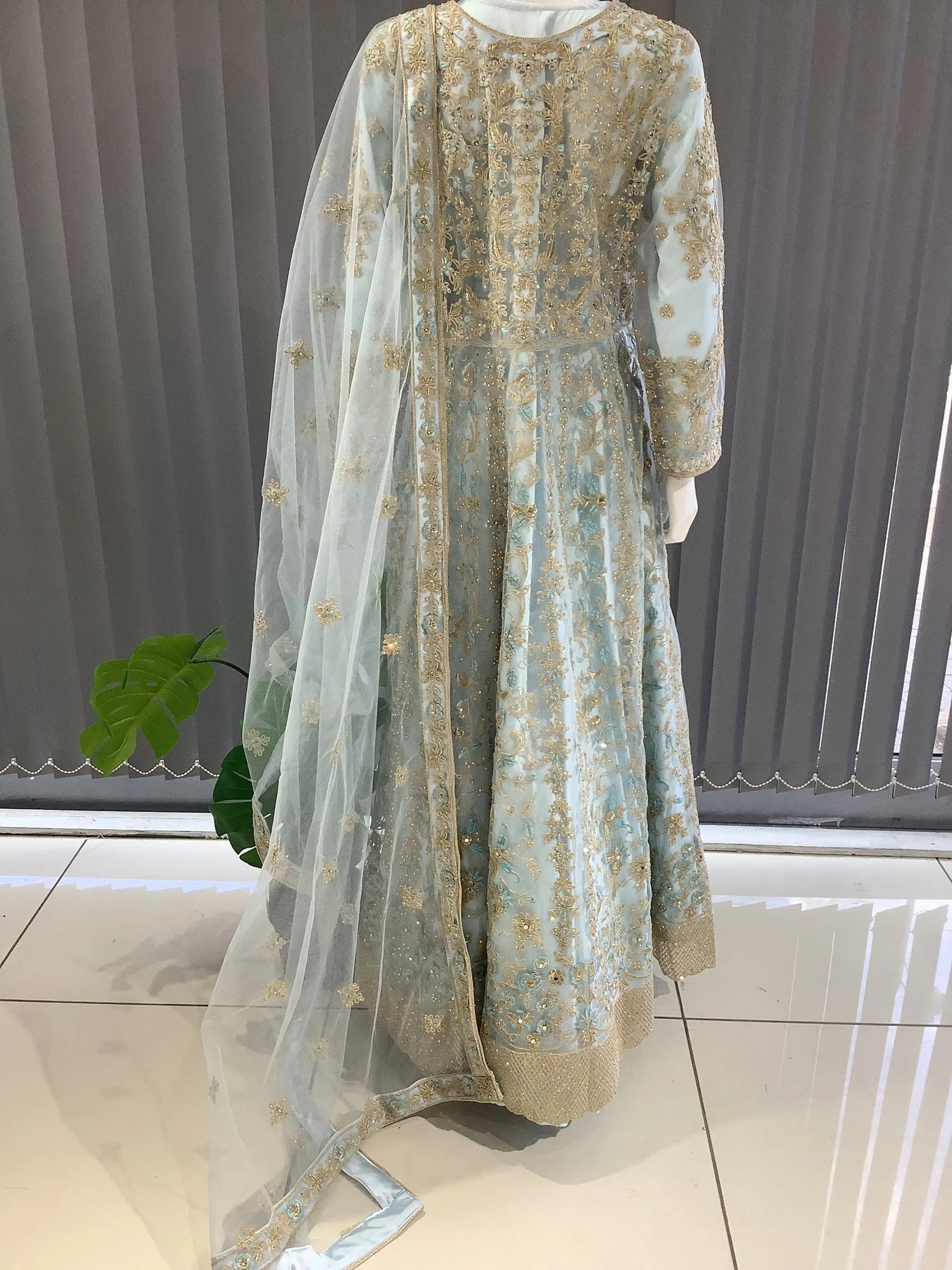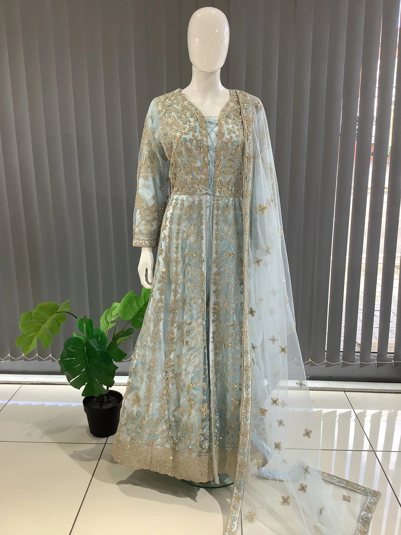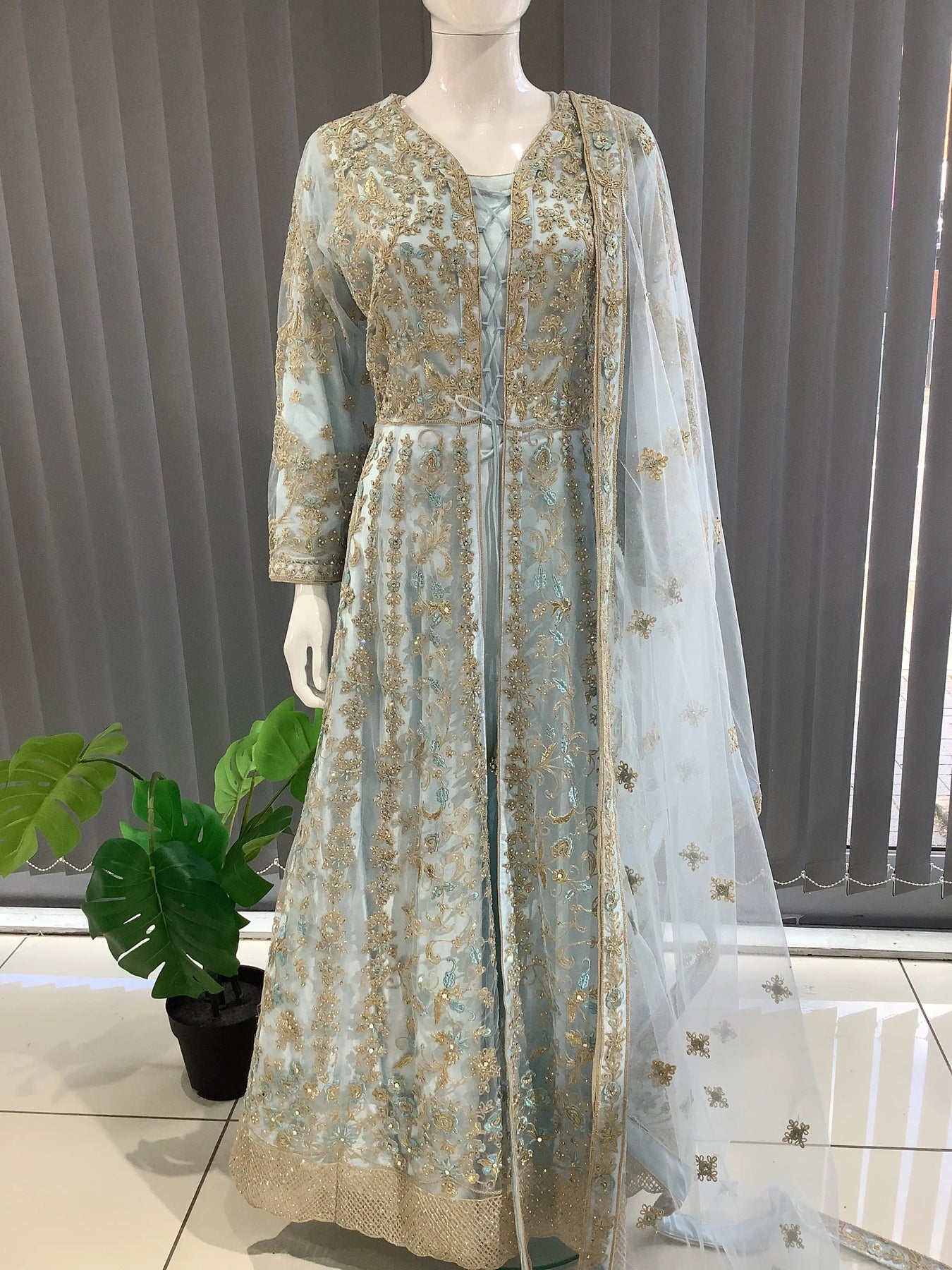 ASHA | Embroidered Net Maxi Ready To Wear Light Blue | AS34