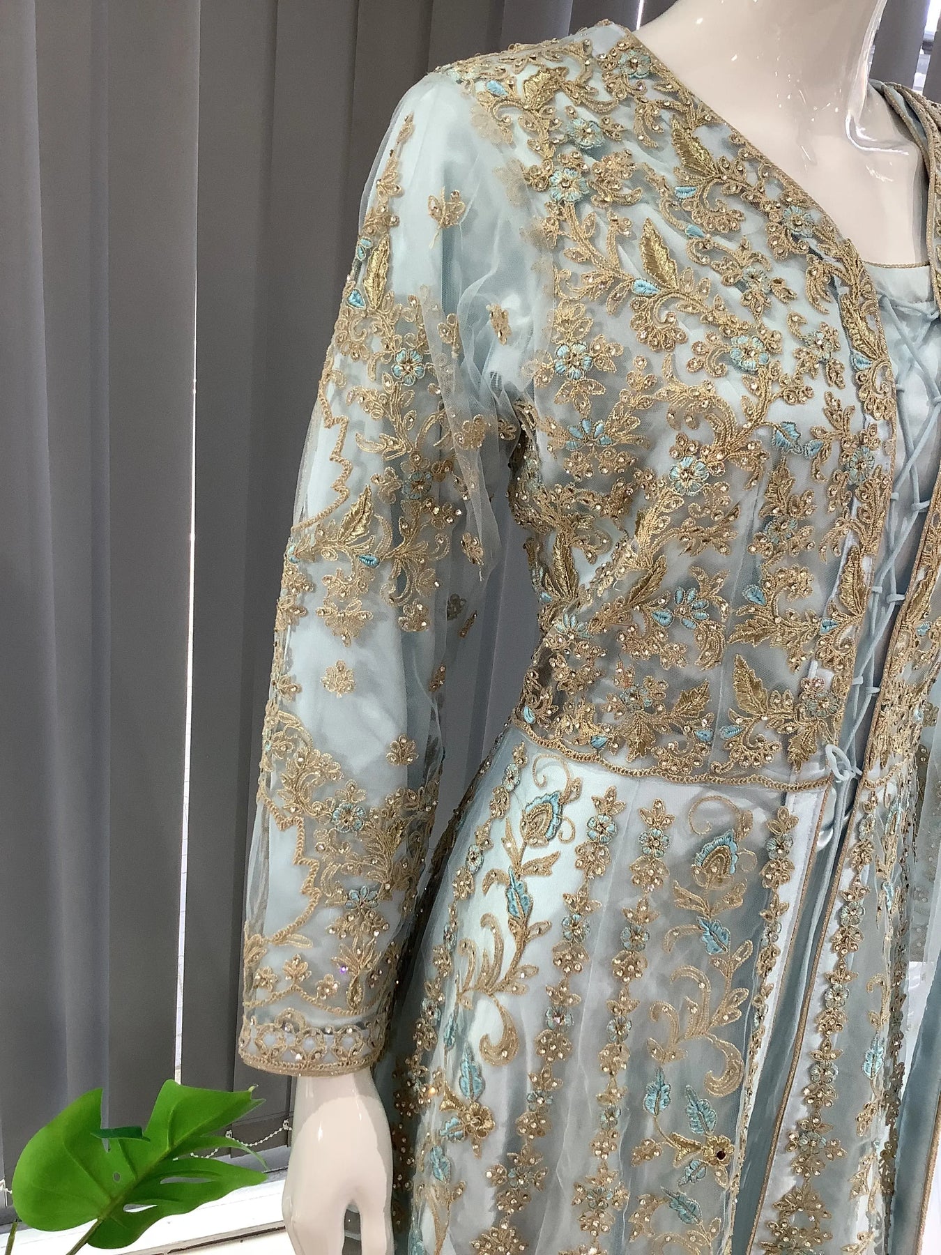 From time to time beading/ sequences may get displaced and this is not thought of as a fault but is due to the nature of the work. These articles of clothing should be worn with care.