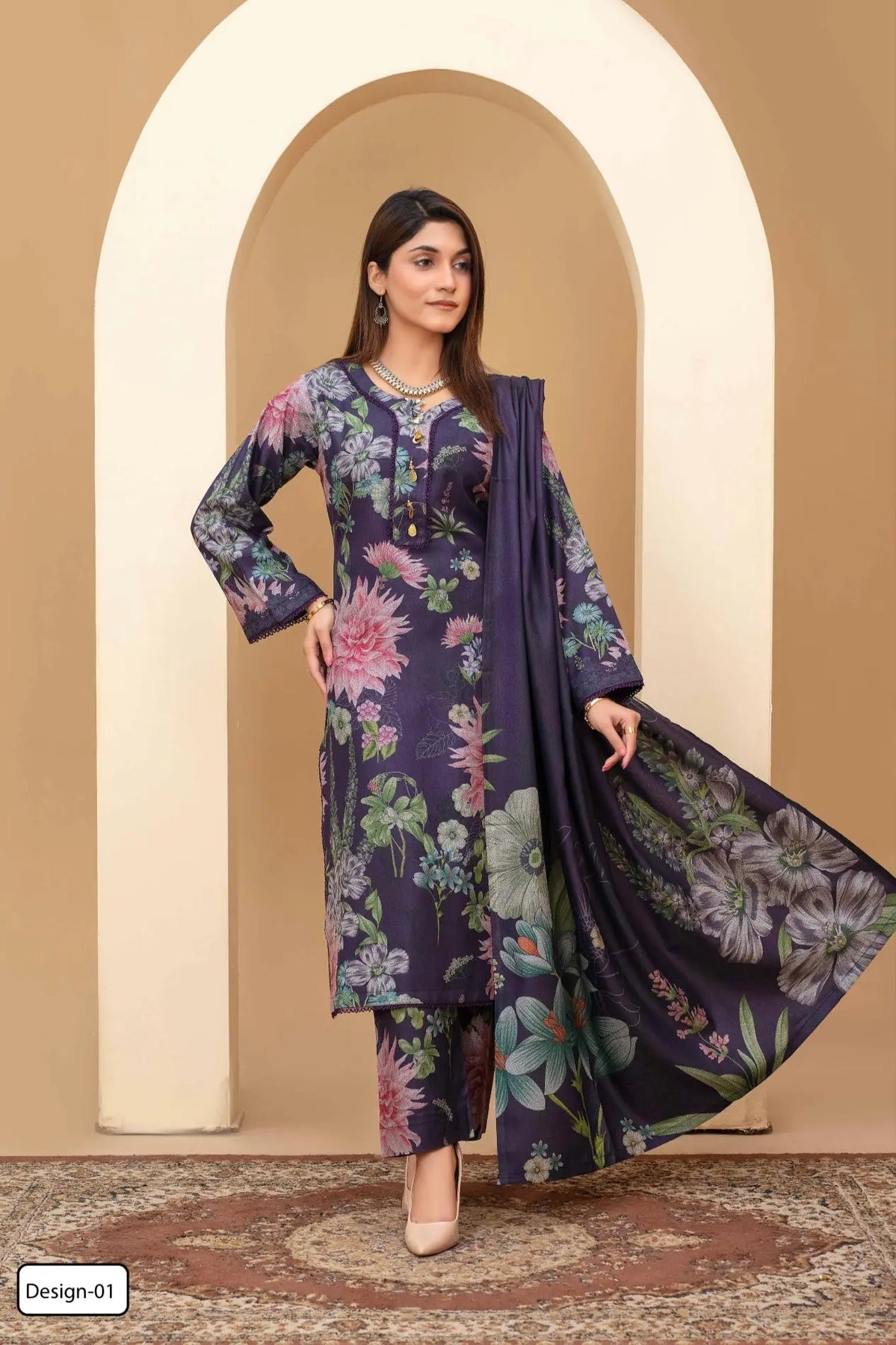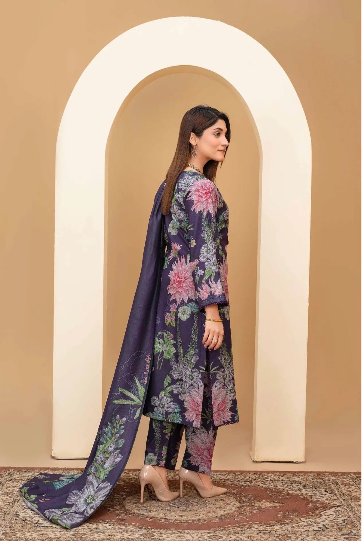 Upgrade your wardrobe with this stunning dhanak kameez and trouser set, designed for both comfort and sophistication. The kameez features intricate embroidery and a vibrant digital print, blending traditional craftsmanship with modern style. Paired with matching trousers and a beautifully printed shawl, this outfit is perfect for festive occasions, casual gatherings.
