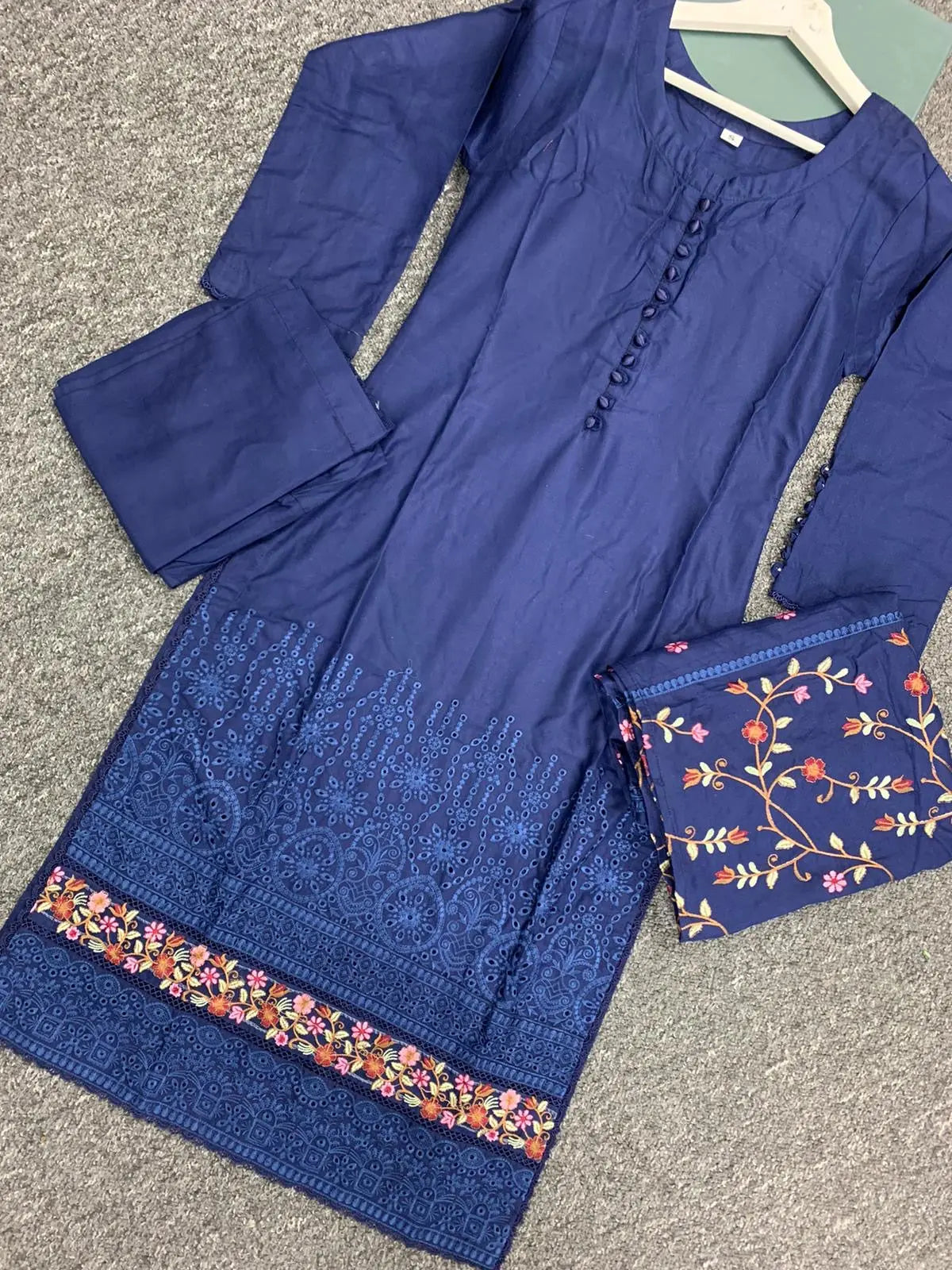 S Creations ‘Adina’ | Embroidered Dhanak Readymade | SC151 (Navy)