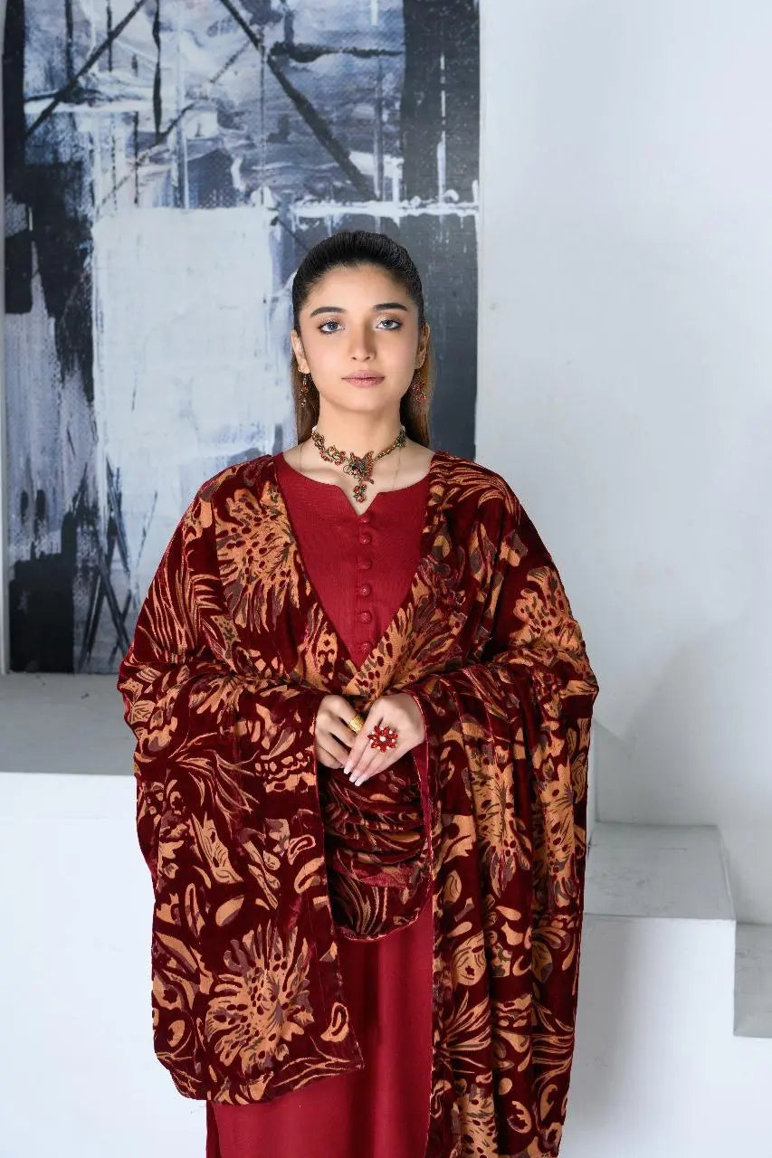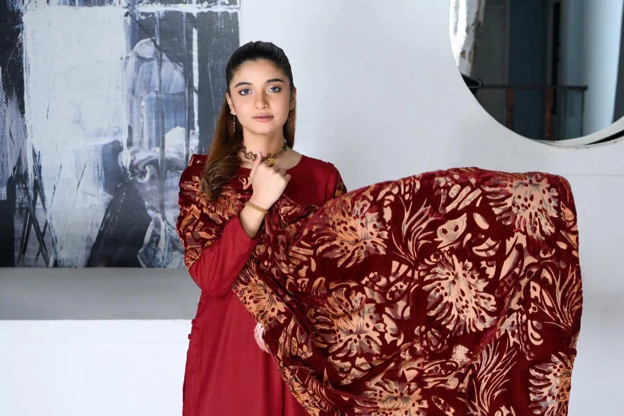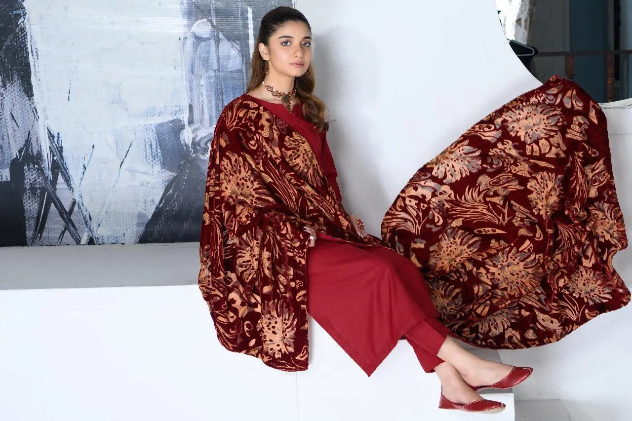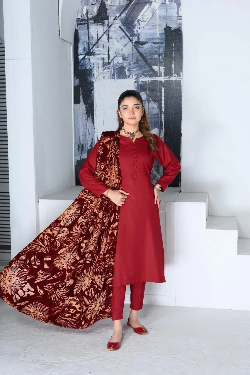 Embrace timeless elegance with this beautifully designed dhanak kameez, featuring delicate button detailing for an added touch of sophistication. Crafted from a warm, luxurious material, this outfit ensures comfort while keeping you stylish throughout the day. Paired with a matching palachi shawl, it offers the perfect balance of traditional charm and modern flair, making it an ideal choice for cooler weather or special occasions.