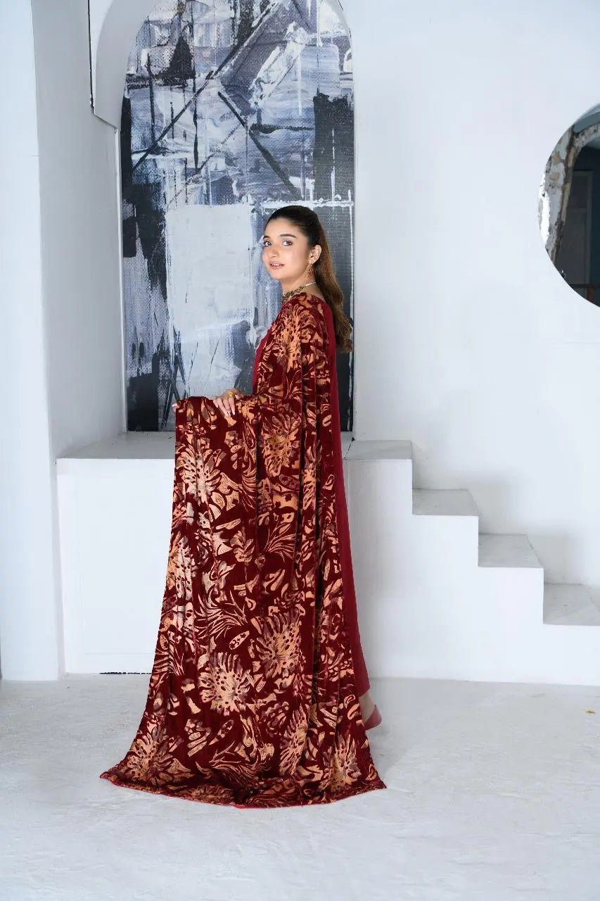 S Creations ‘Arya’ | Dhanak Palachi Shawl Readymade | SC149 (Maroon)