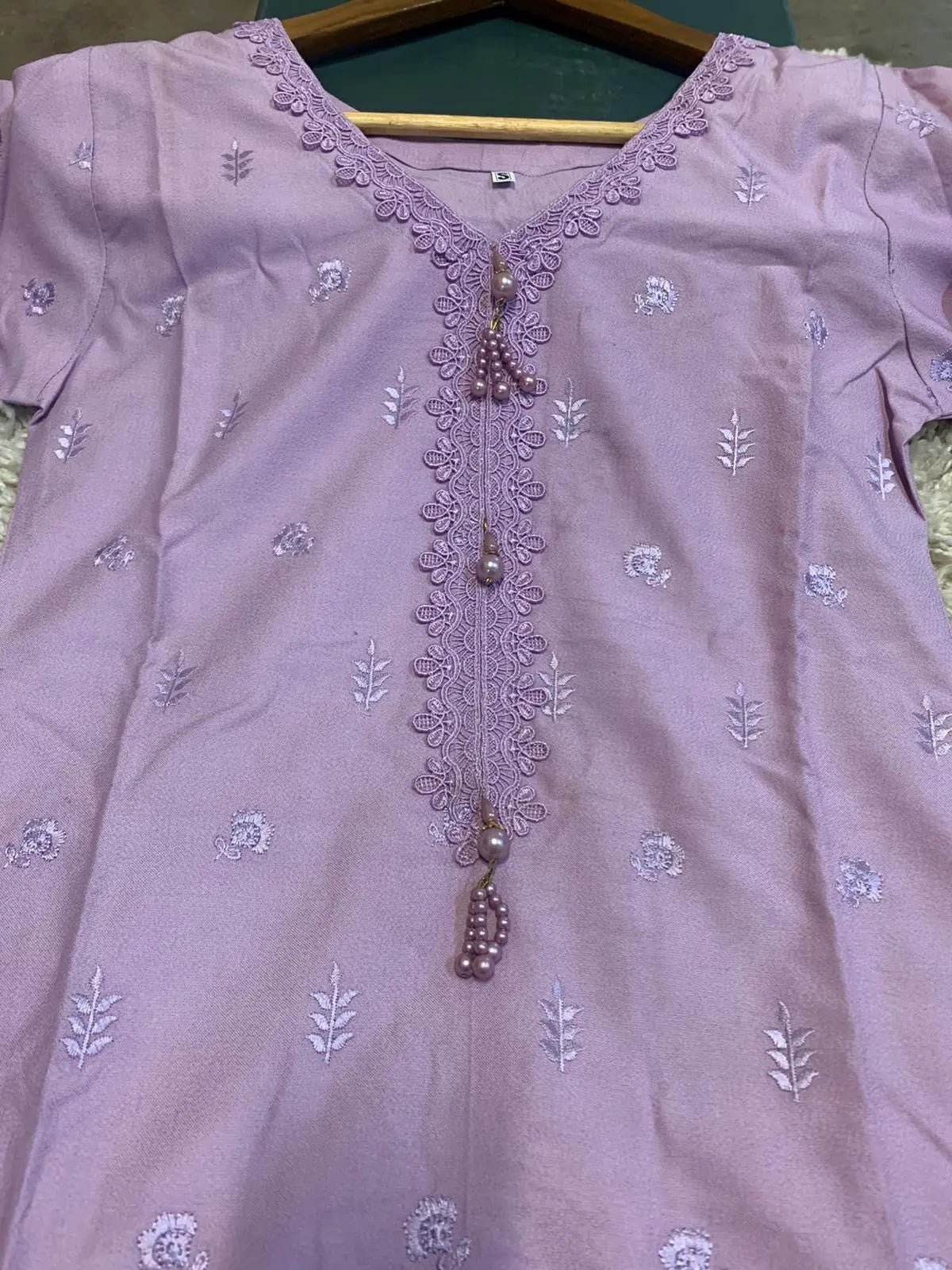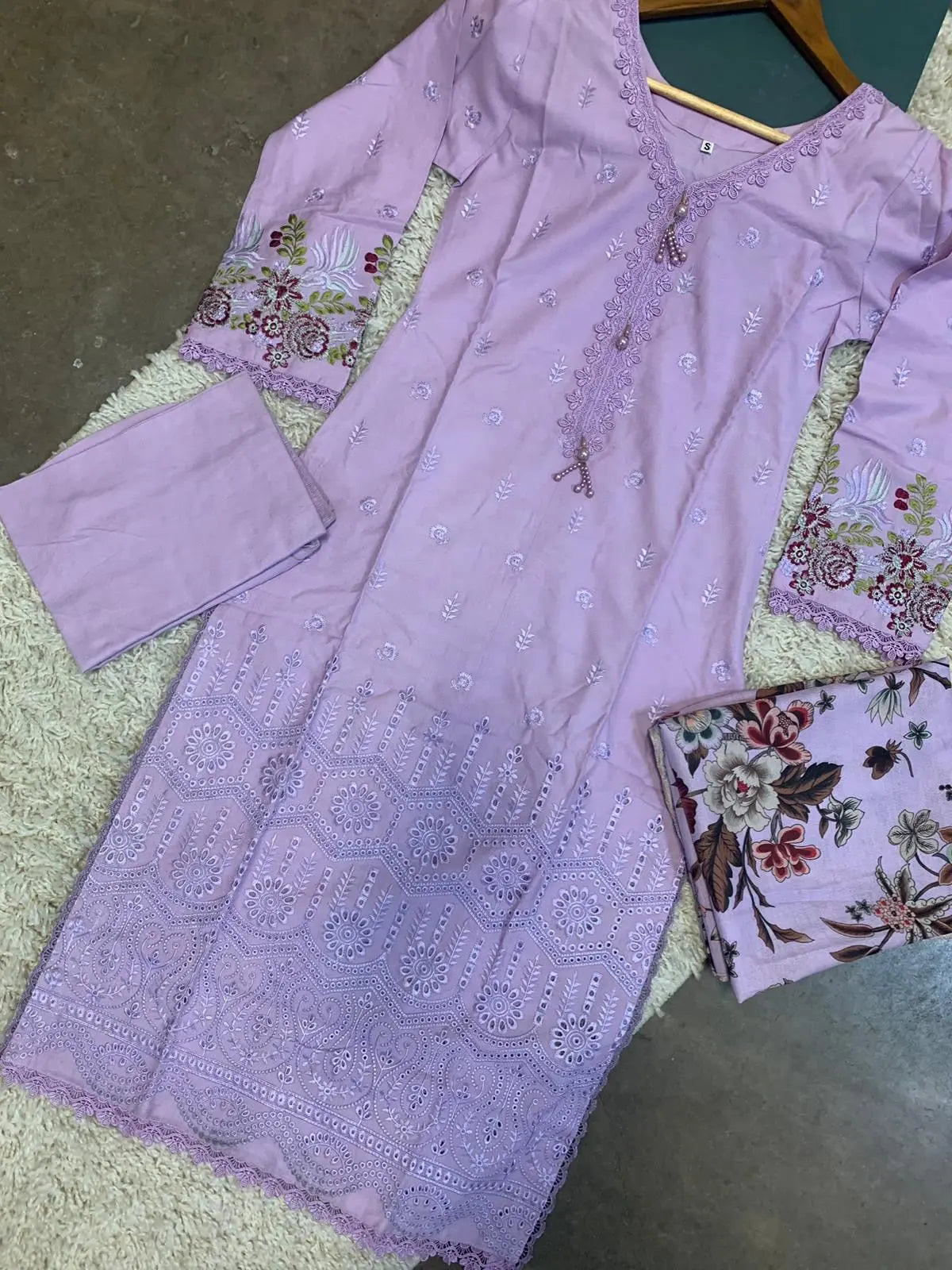 S Creations ‘Inaya’ | Embroidered Dhanak Readymade | SC132 (Lilac)