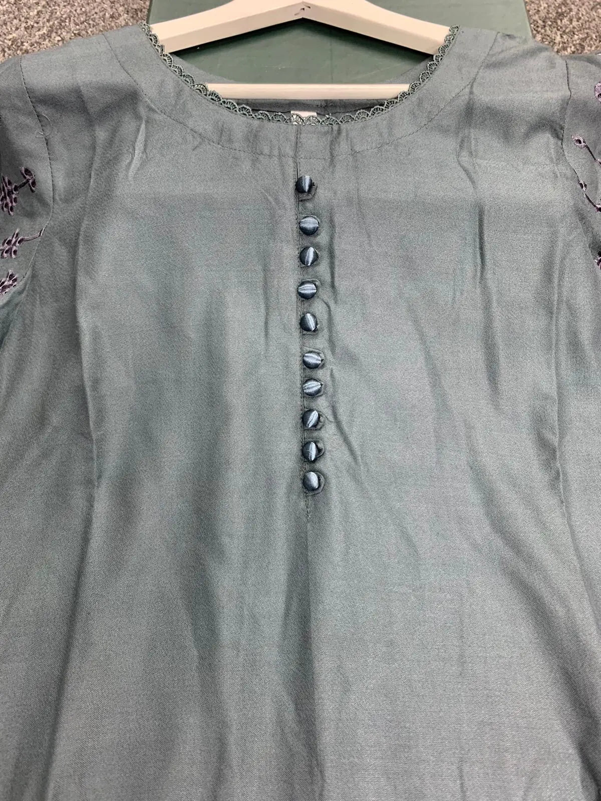 S Creations ‘Kaia’ | Embroidered Dhanak Readymade | SC152 (Grey)