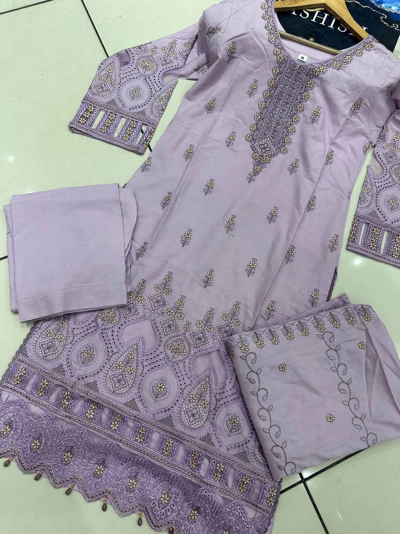 S Creations ‘Larisa’ | Embroidered Dhanak Readymade | SC150 (Lilac)