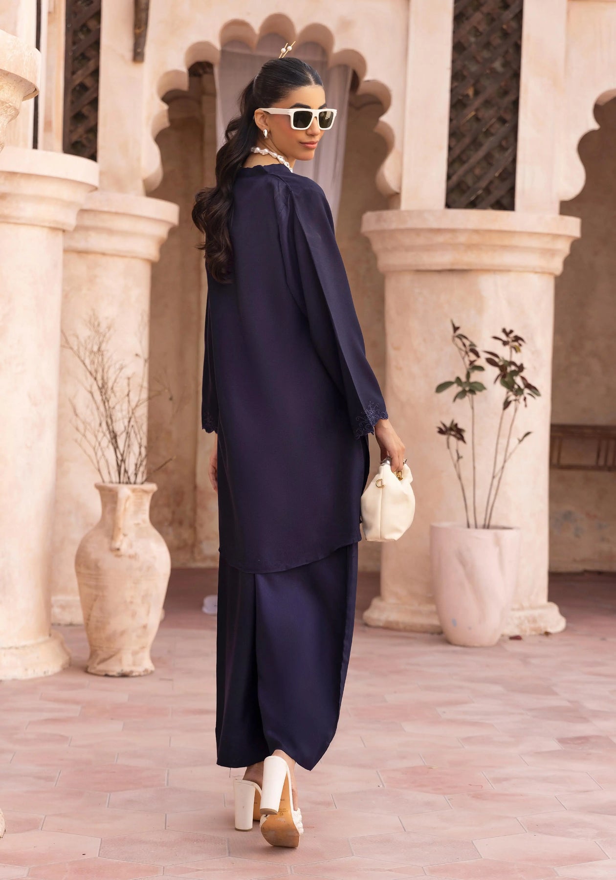 Coordinated Dhanak trousers complete the look, ensuring comfort with a flattering fit. The matching fabric gives a seamless, put-together finish that’s both versatile and timeless. 🌿