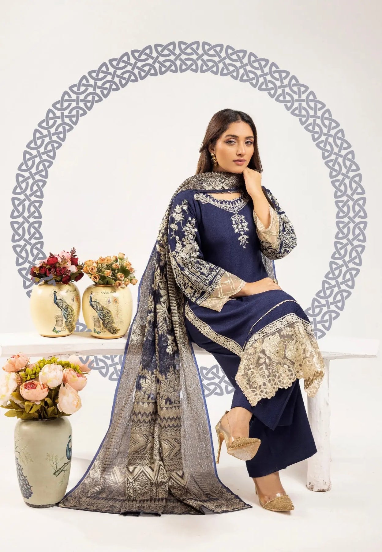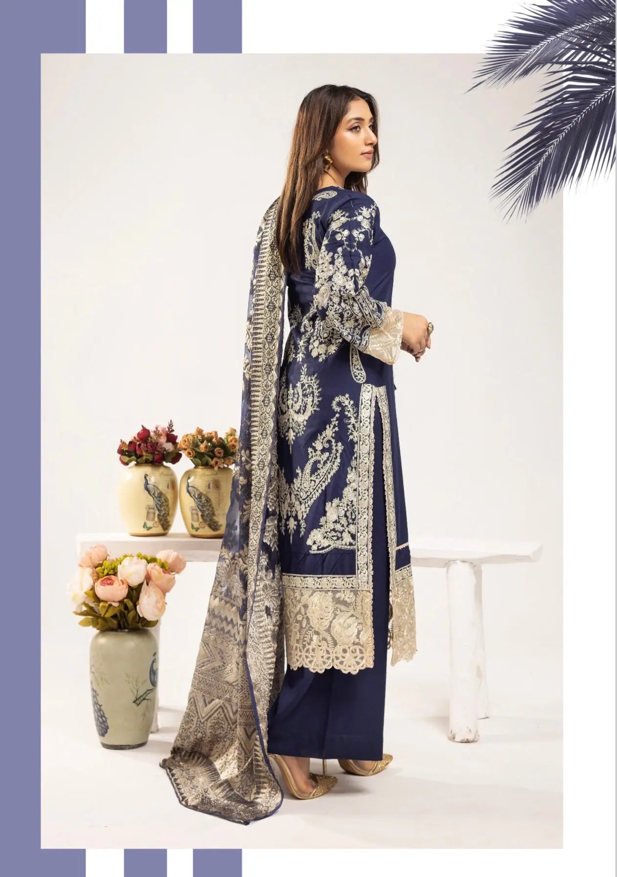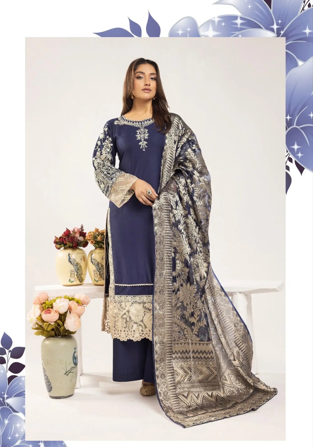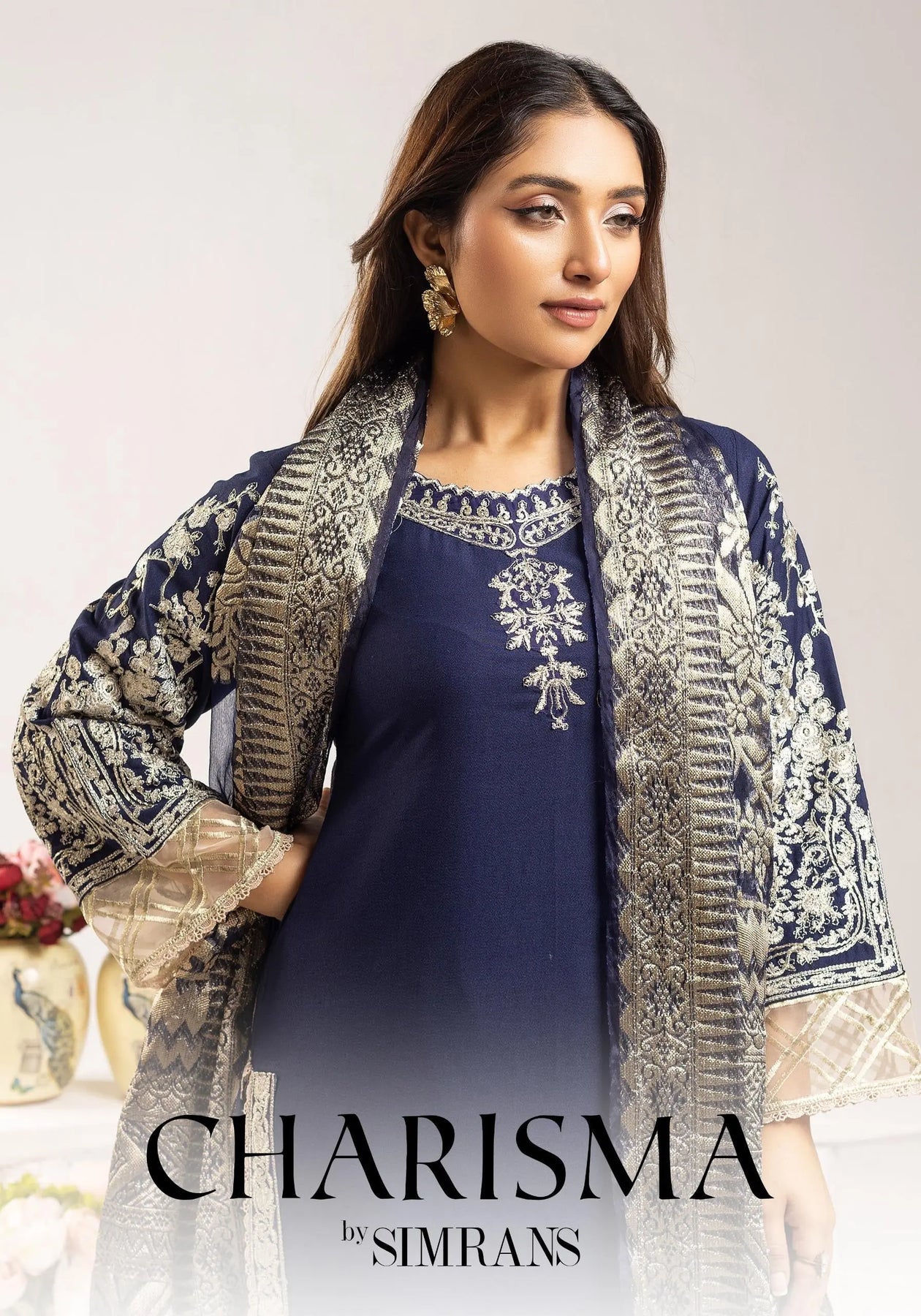 SIMRANS ‘Charisma Lux’ | Embroidered Dhanak Fancy Dupatta Readymade | SM732 (Navy)