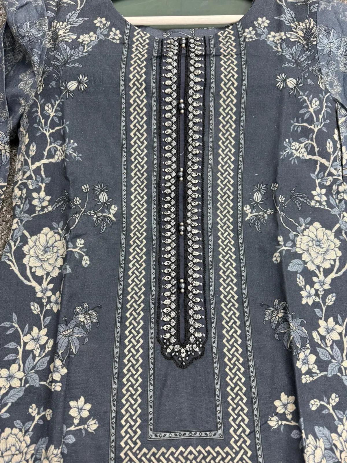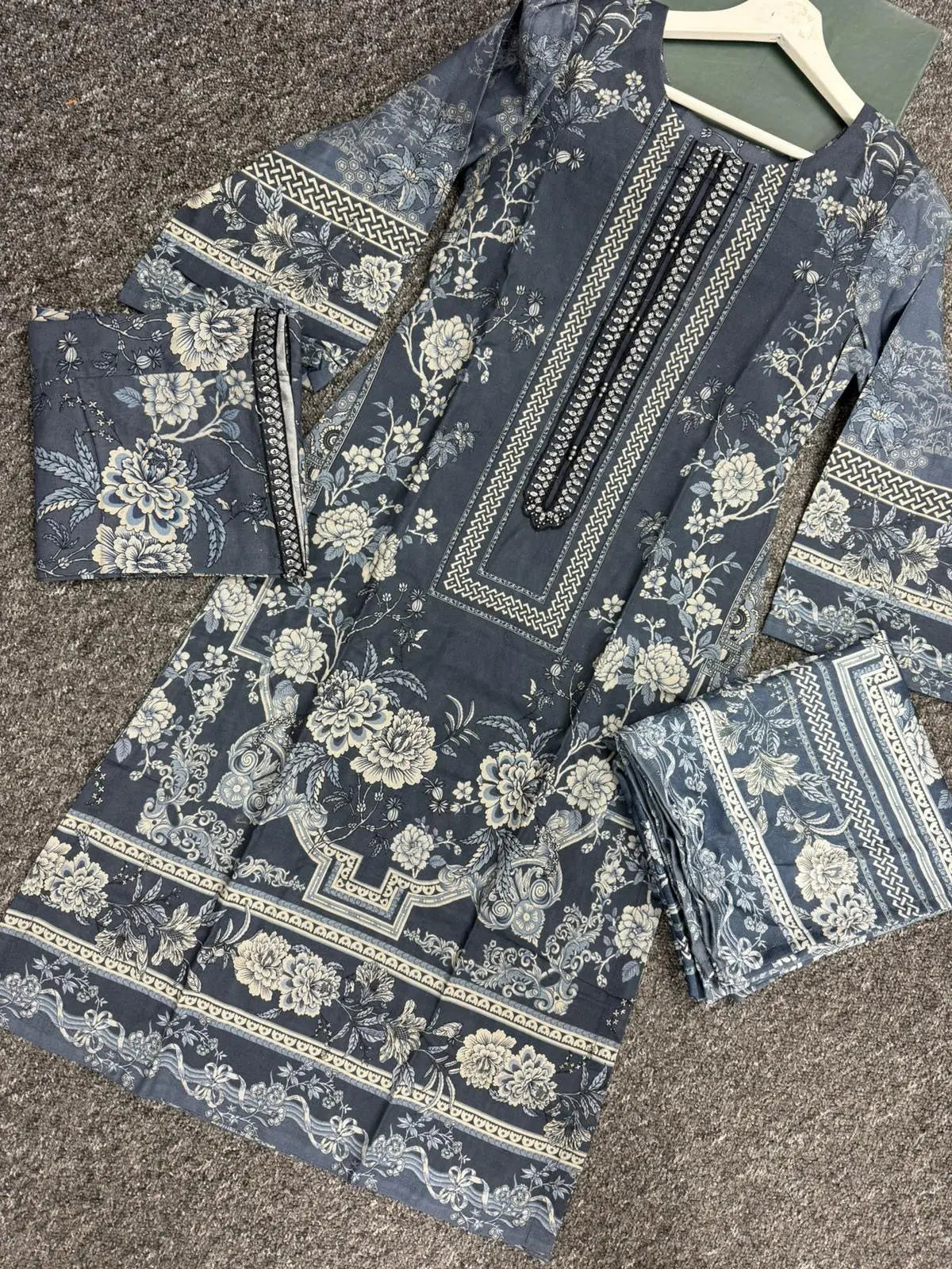 Stunning new Embroidered khaddar with plazzos and printed dupatta