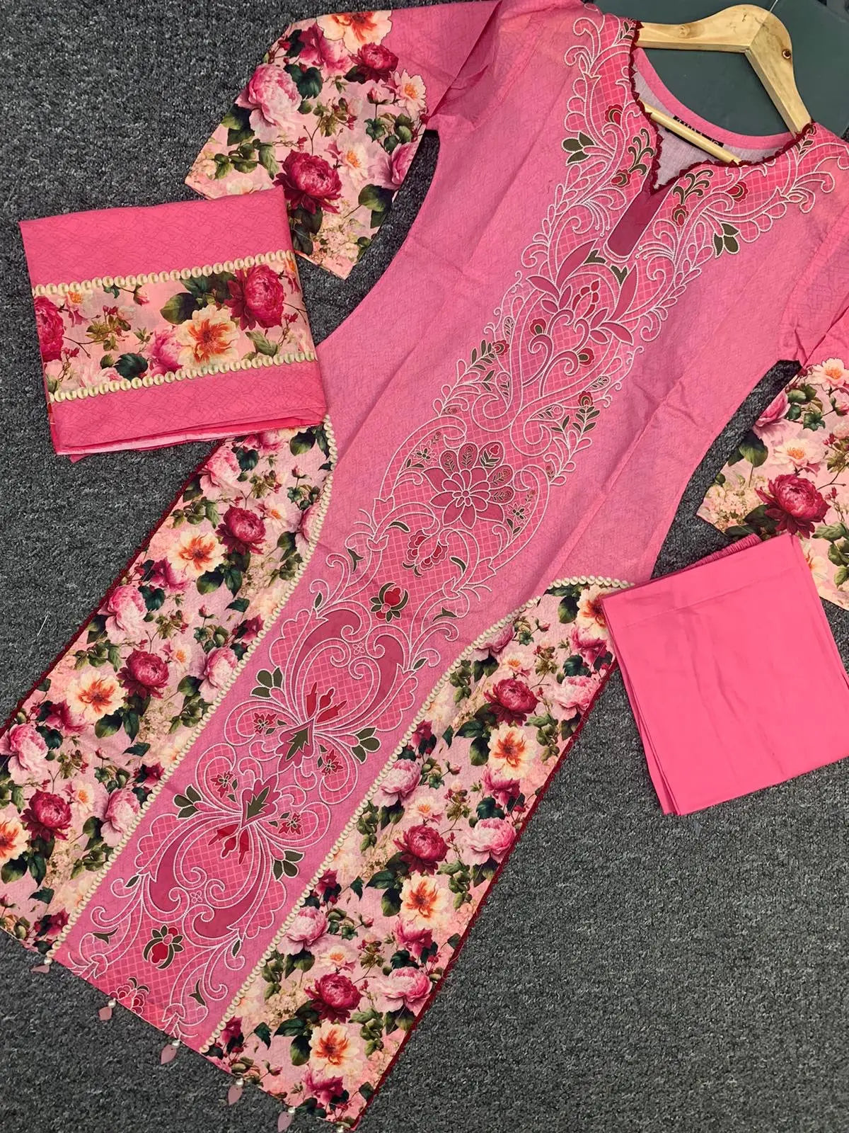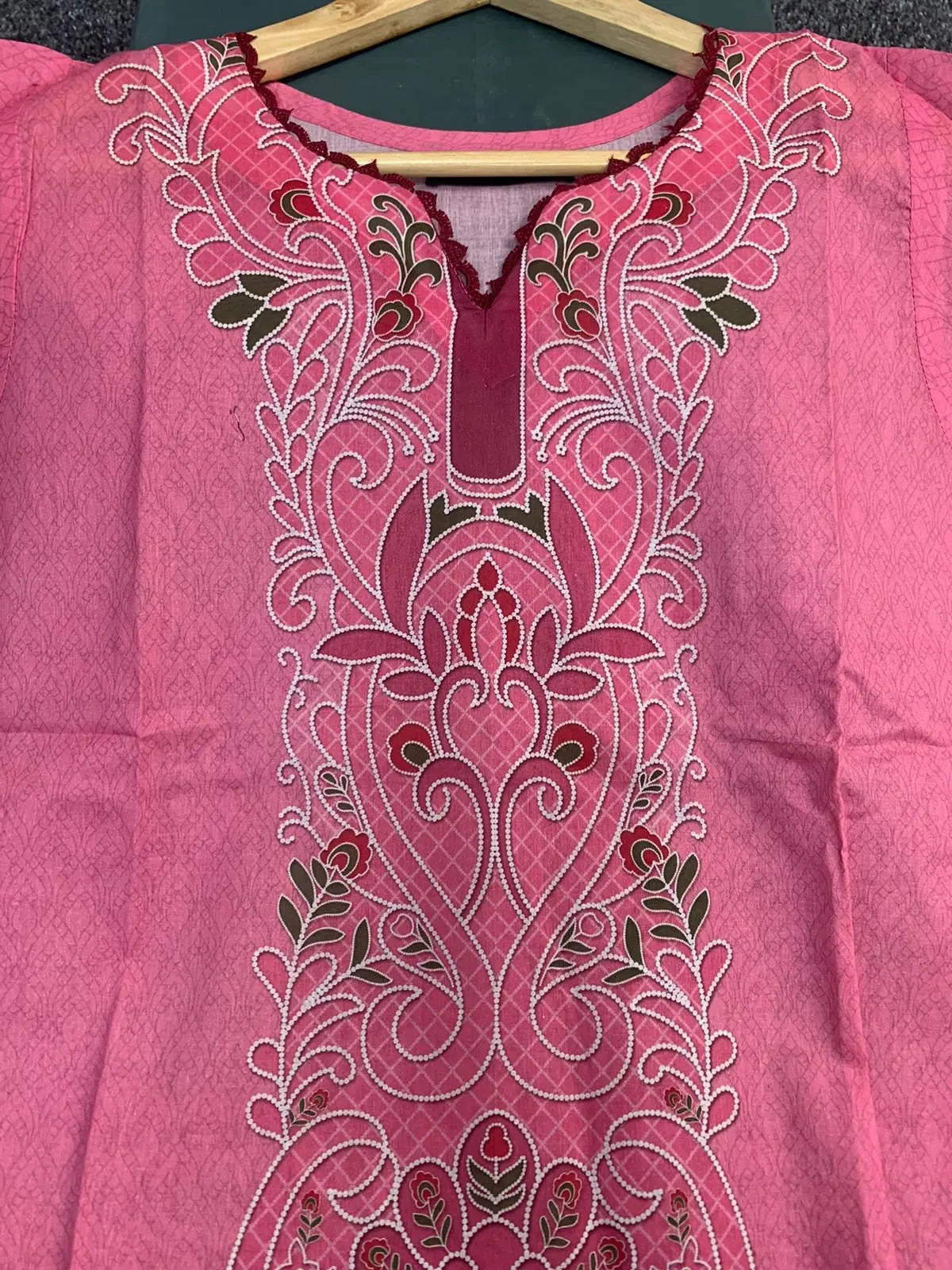 Embrace timeless elegance with our Embroidered Lawn with digital printed chiffon dupatta ensemble. Crafted from luxurious lawn, this outfit offers both comfort and style, making it perfect for both casual and formal occasions. The intricate embroidery on the fabric adds a touch of sophistication, highlighting the artistry and attention to detail that goes into every stitch.