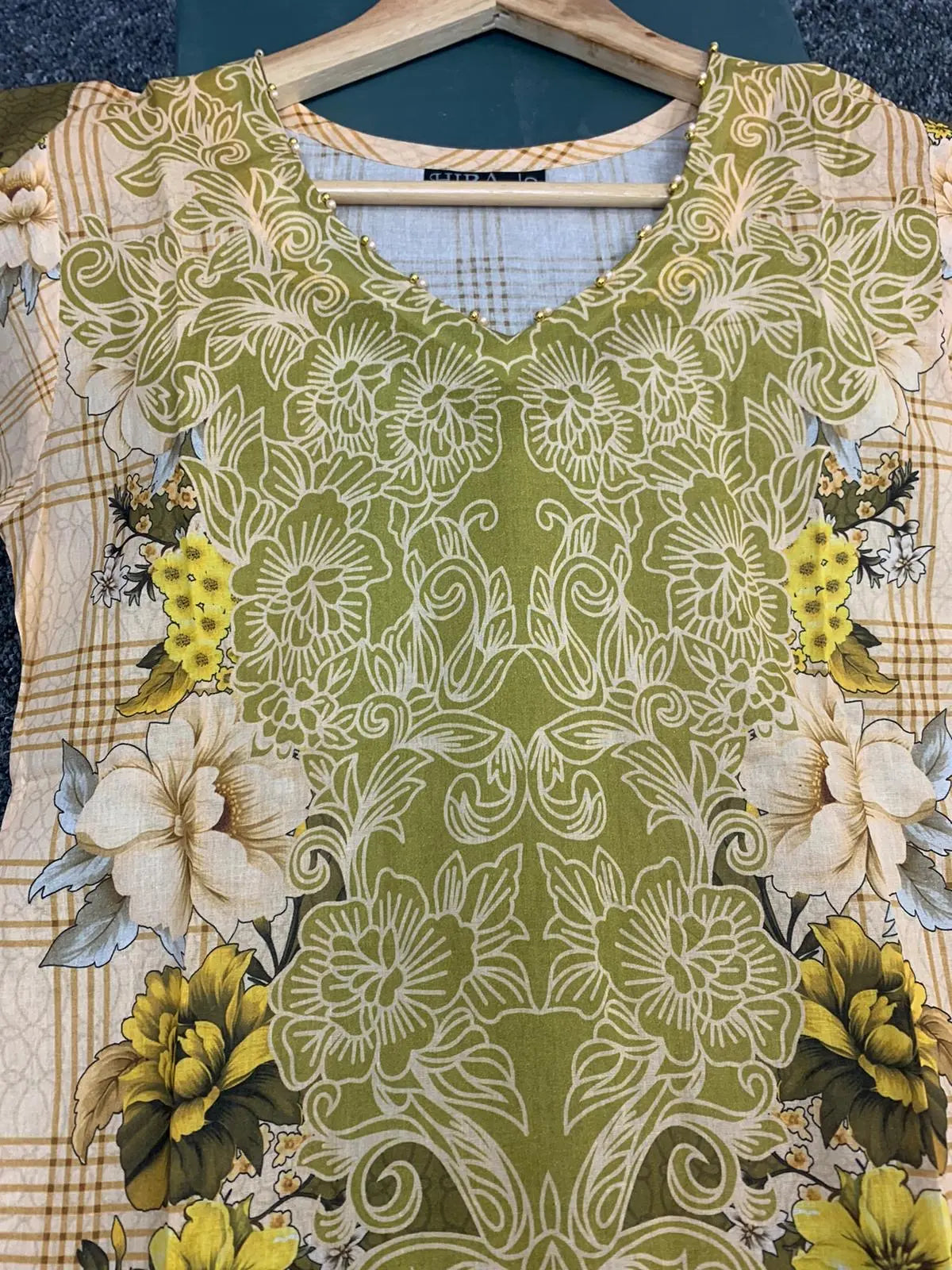 Embrace timeless elegance with our Embroidered Lawn with digital printed chiffon dupatta ensemble. Crafted from luxurious lawn, this outfit offers both comfort and style, making it perfect for both casual and formal occasions. The intricate embroidery on the fabric adds a touch of sophistication, highlighting the artistry and attention to detail that goes into every stitch.