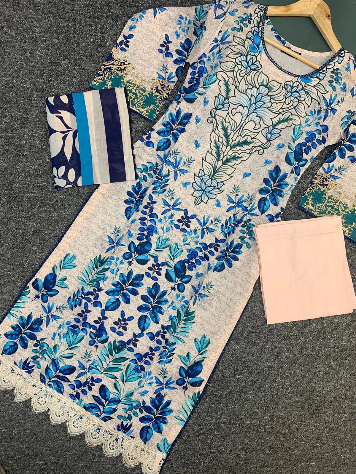 Embrace timeless elegance with our Embroidered Lawn with digital printed chiffon dupatta ensemble. Crafted from luxurious lawn, this outfit offers both comfort and style, making it perfect for both casual and formal occasions. The intricate embroidery on the fabric adds a touch of sophistication, highlighting the artistry and attention to detail that goes into every stitch.
