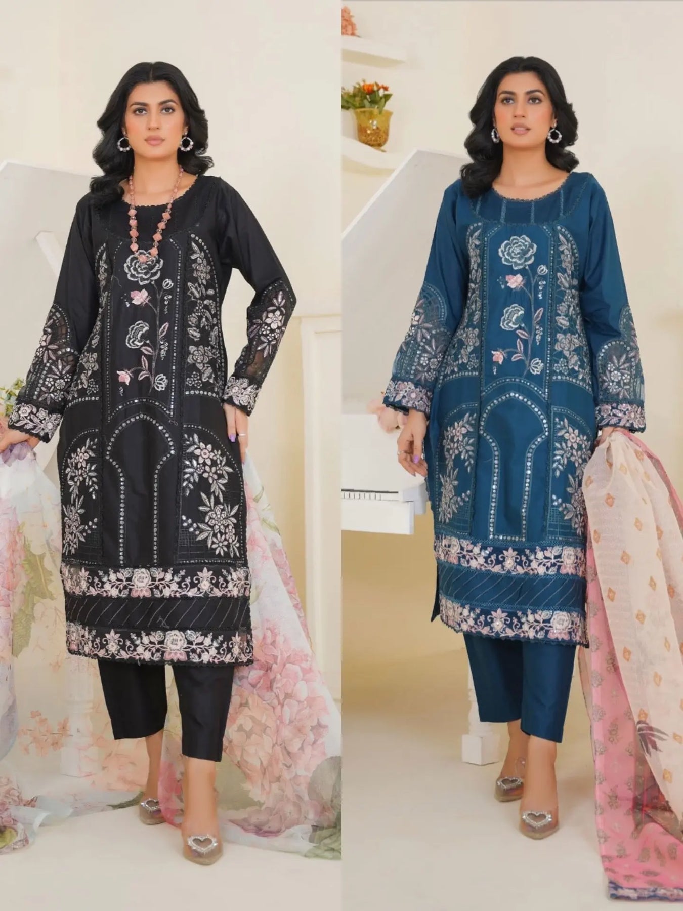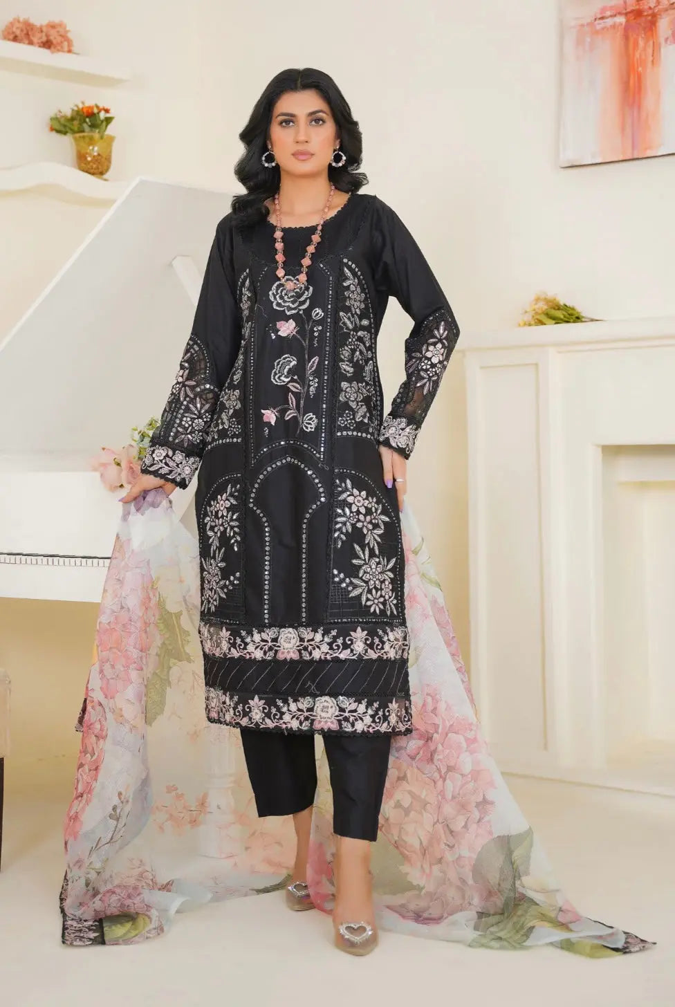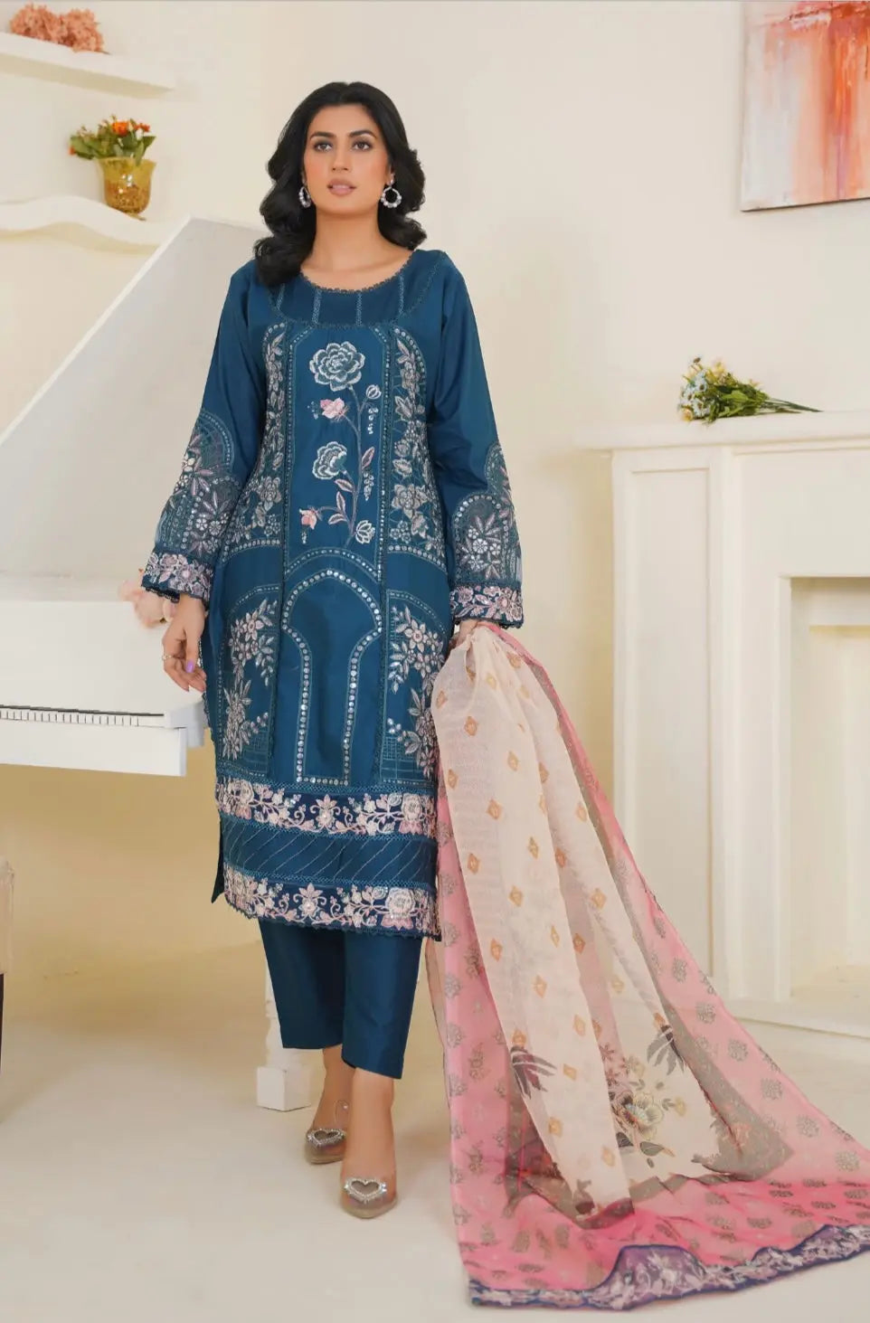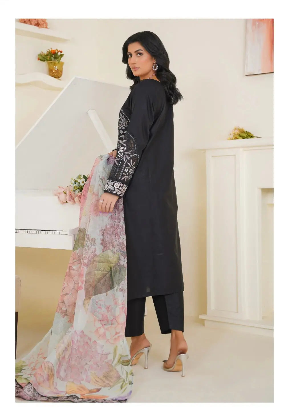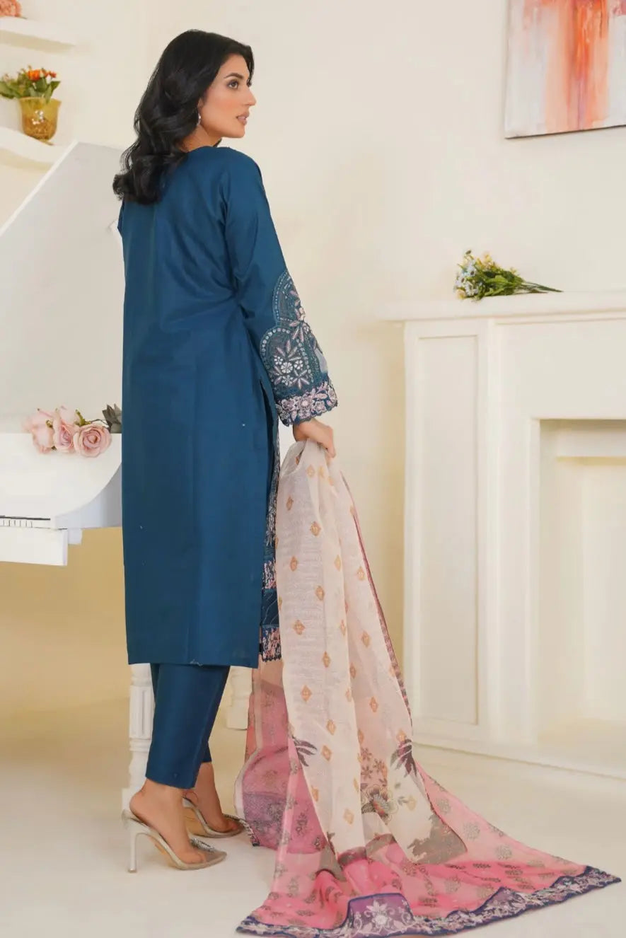 Embrace timeless elegance with our Embroidered Lawn with digital printed chiffon dupatta ensemble. Crafted from luxurious lawn, this outfit offers both comfort and style, making it perfect for both casual and formal occasions. The intricate embroidery on the fabric adds a touch of sophistication, highlighting the artistry and attention to detail that goes into every stitch.