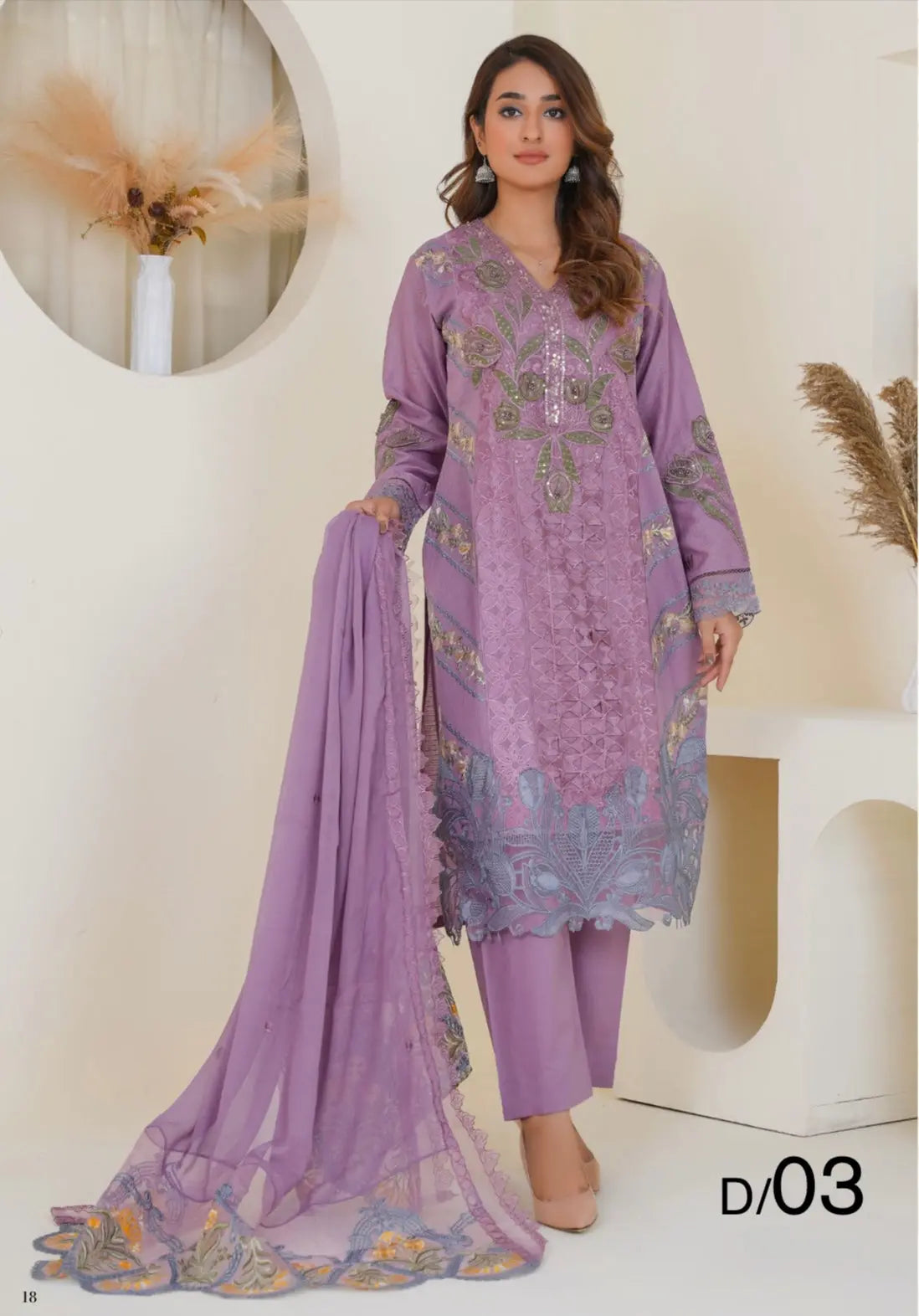 Embrace timeless elegance with our Embroidered Lawn with digital printed chiffon dupatta ensemble. Crafted from luxurious lawn, this outfit offers both comfort and style, making it perfect for both casual and formal occasions. The intricate embroidery on the fabric adds a touch of sophistication, highlighting the artistry and attention to detail that goes into every stitch.