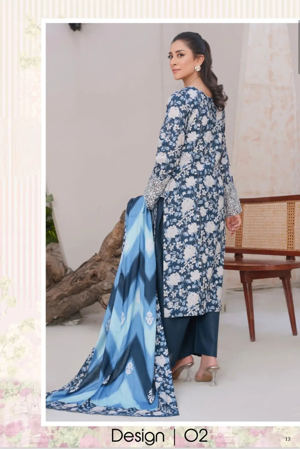 Embrace timeless elegance with our Embroidered Lawn with digital printed chiffon dupatta ensemble. Crafted from luxurious lawn, this outfit offers both comfort and style, making it perfect for both casual and formal occasions. The intricate embroidery on the fabric adds a touch of sophistication, highlighting the artistry and attention to detail that goes into every stitch.