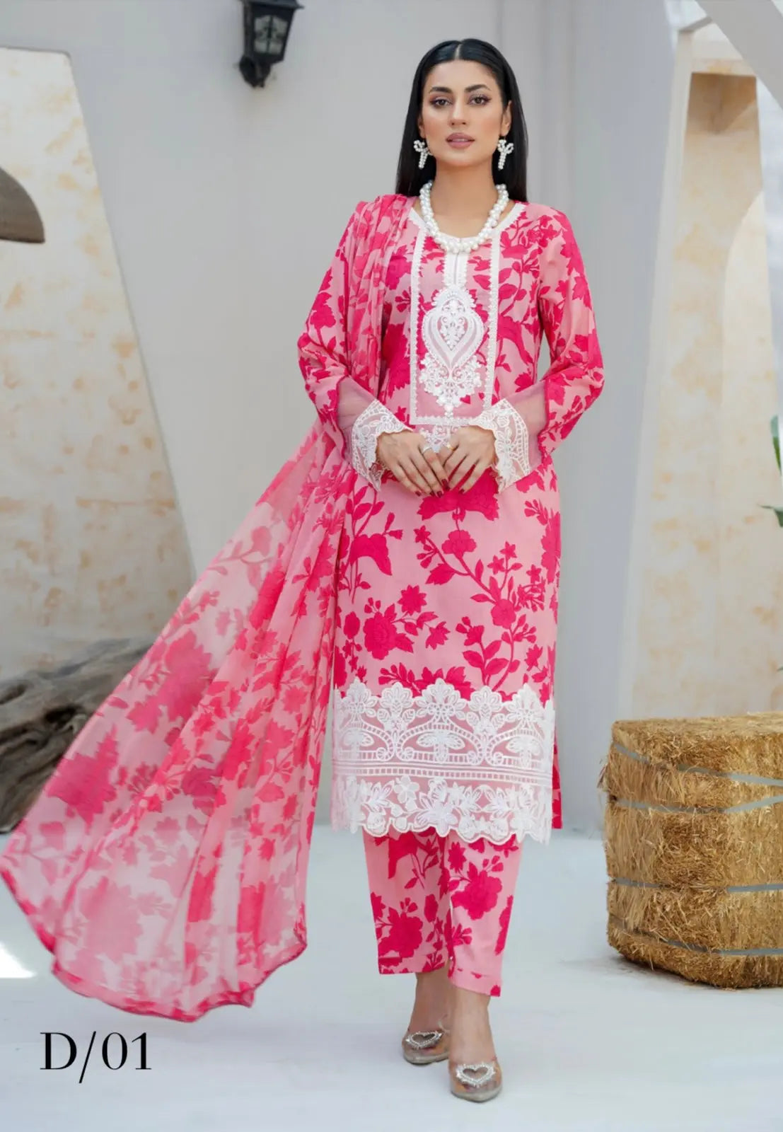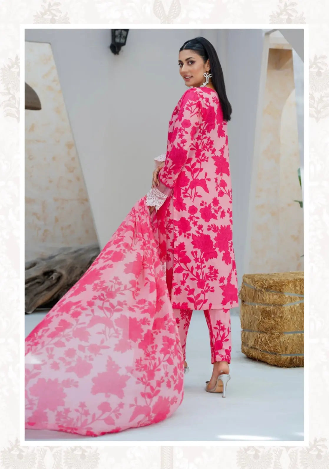 Embrace timeless elegance with our Embroidered Lawn with digital printed chiffon dupatta ensemble. Crafted from luxurious lawn, this outfit offers both comfort and style, making it perfect for both casual and formal occasions. The intricate embroidery on the fabric adds a touch of sophistication, highlighting the artistry and attention to detail that goes into every stitch.