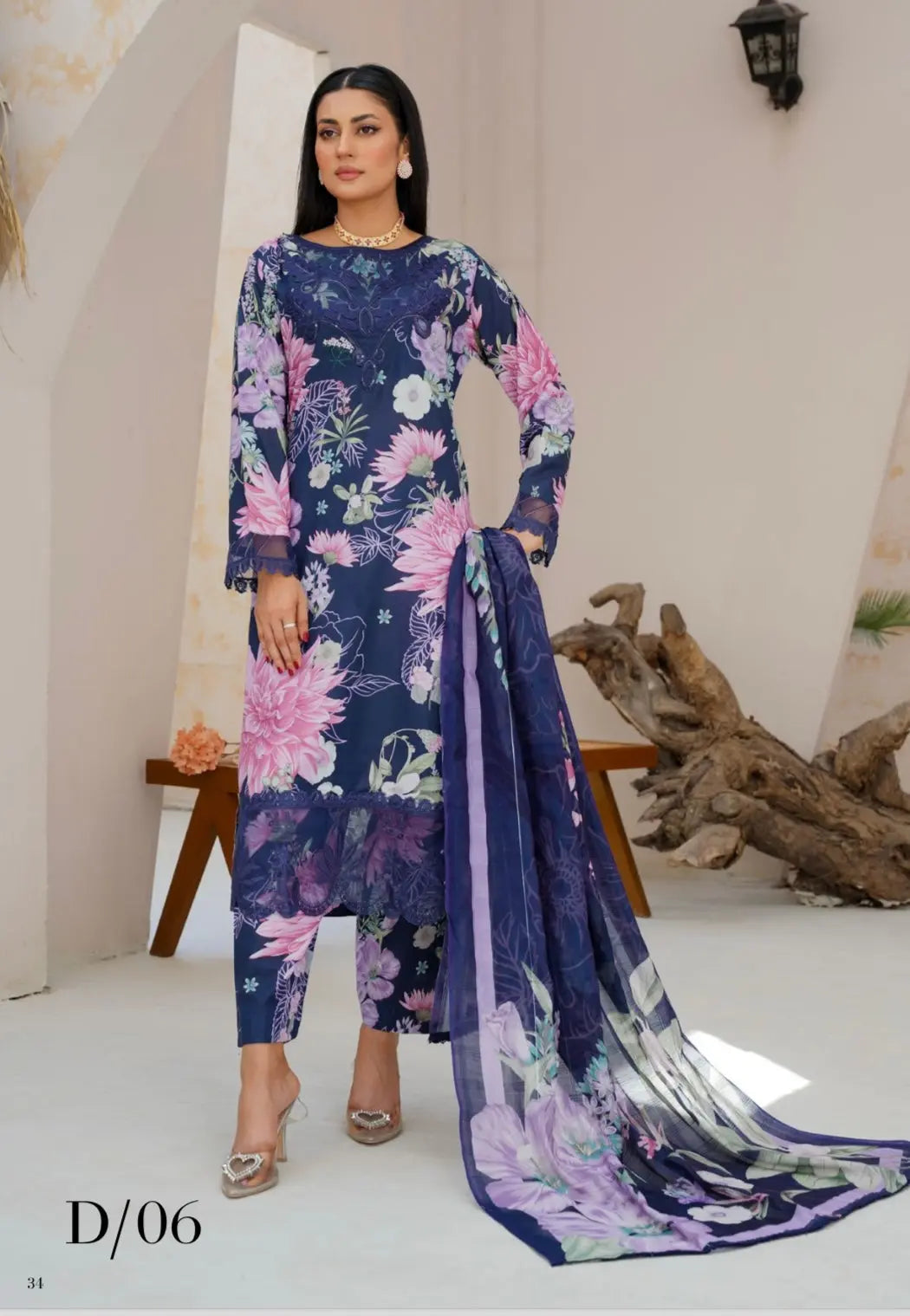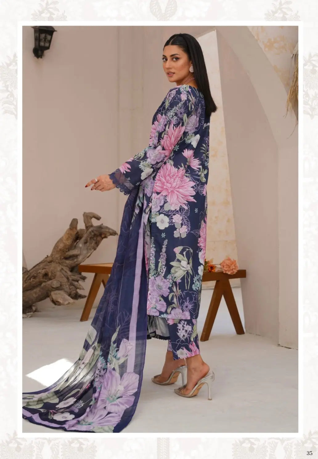 Embrace timeless elegance with our Embroidered Lawn with digital printed chiffon dupatta ensemble. Crafted from luxurious lawn, this outfit offers both comfort and style, making it perfect for both casual and formal occasions. The intricate embroidery on the fabric adds a touch of sophistication, highlighting the artistry and attention to detail that goes into every stitch.