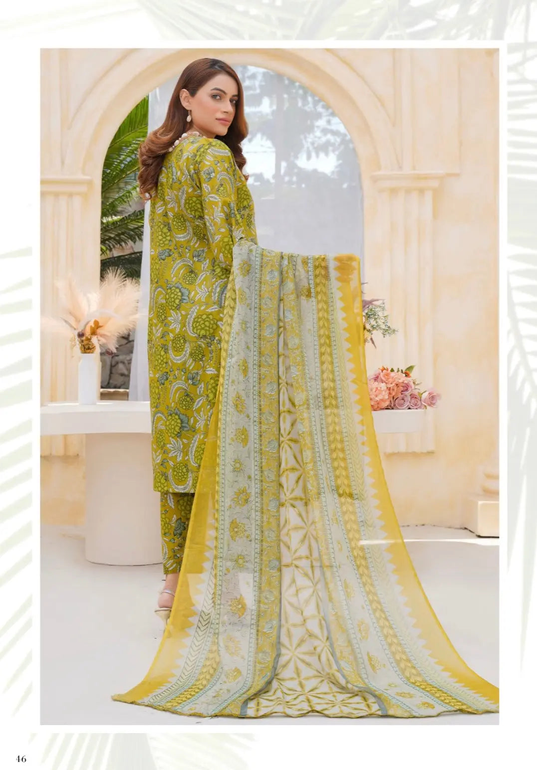 Embrace timeless elegance with our Embroidered Lawn with digital printed chiffon dupatta ensemble. Crafted from luxurious lawn, this outfit offers both comfort and style, making it perfect for both casual and formal occasions. The intricate embroidery on the fabric adds a touch of sophistication, highlighting the artistry and attention to detail that goes into every stitch.