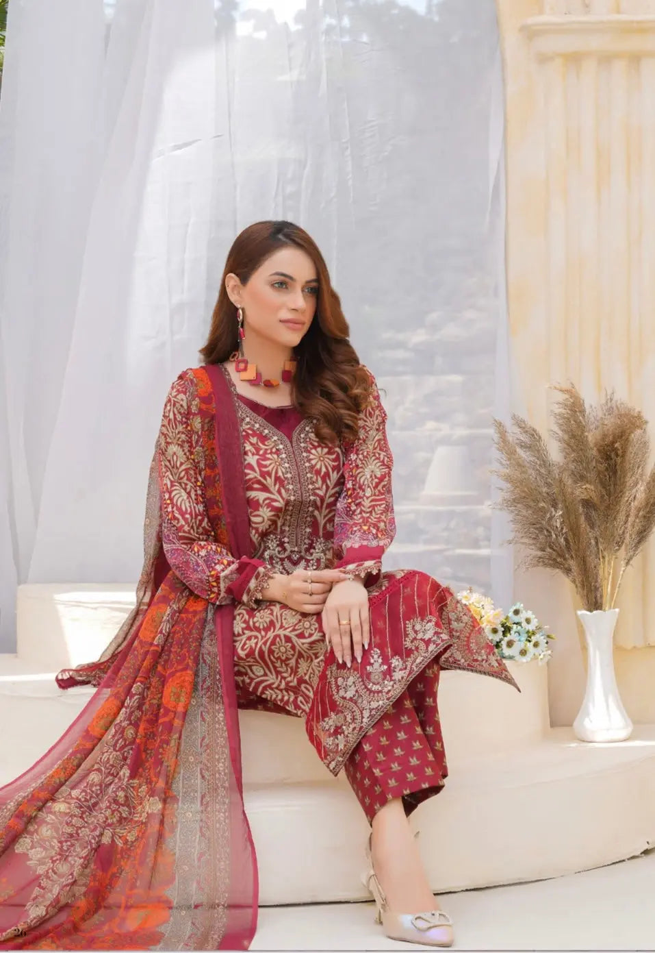 Embrace timeless elegance with our Embroidered Lawn with digital printed chiffon dupatta ensemble. Crafted from luxurious lawn, this outfit offers both comfort and style, making it perfect for both casual and formal occasions. The intricate embroidery on the fabric adds a touch of sophistication, highlighting the artistry and attention to detail that goes into every stitch.
