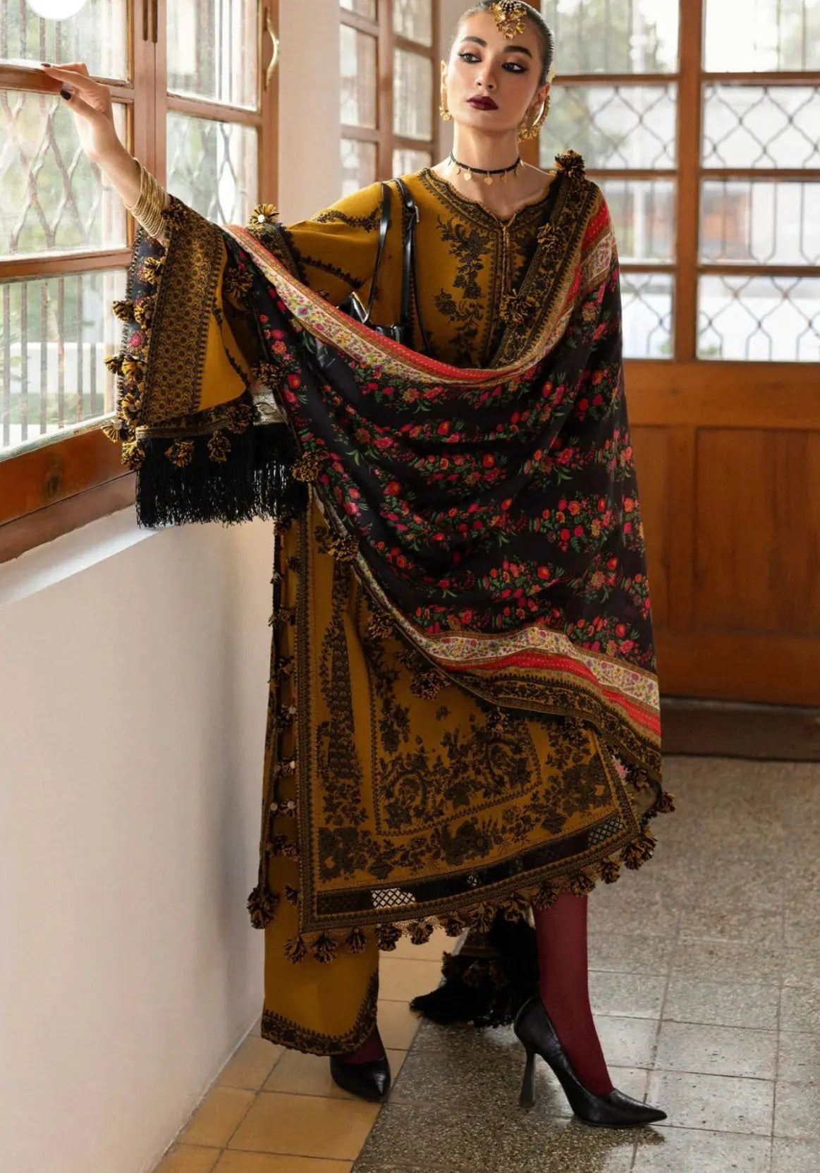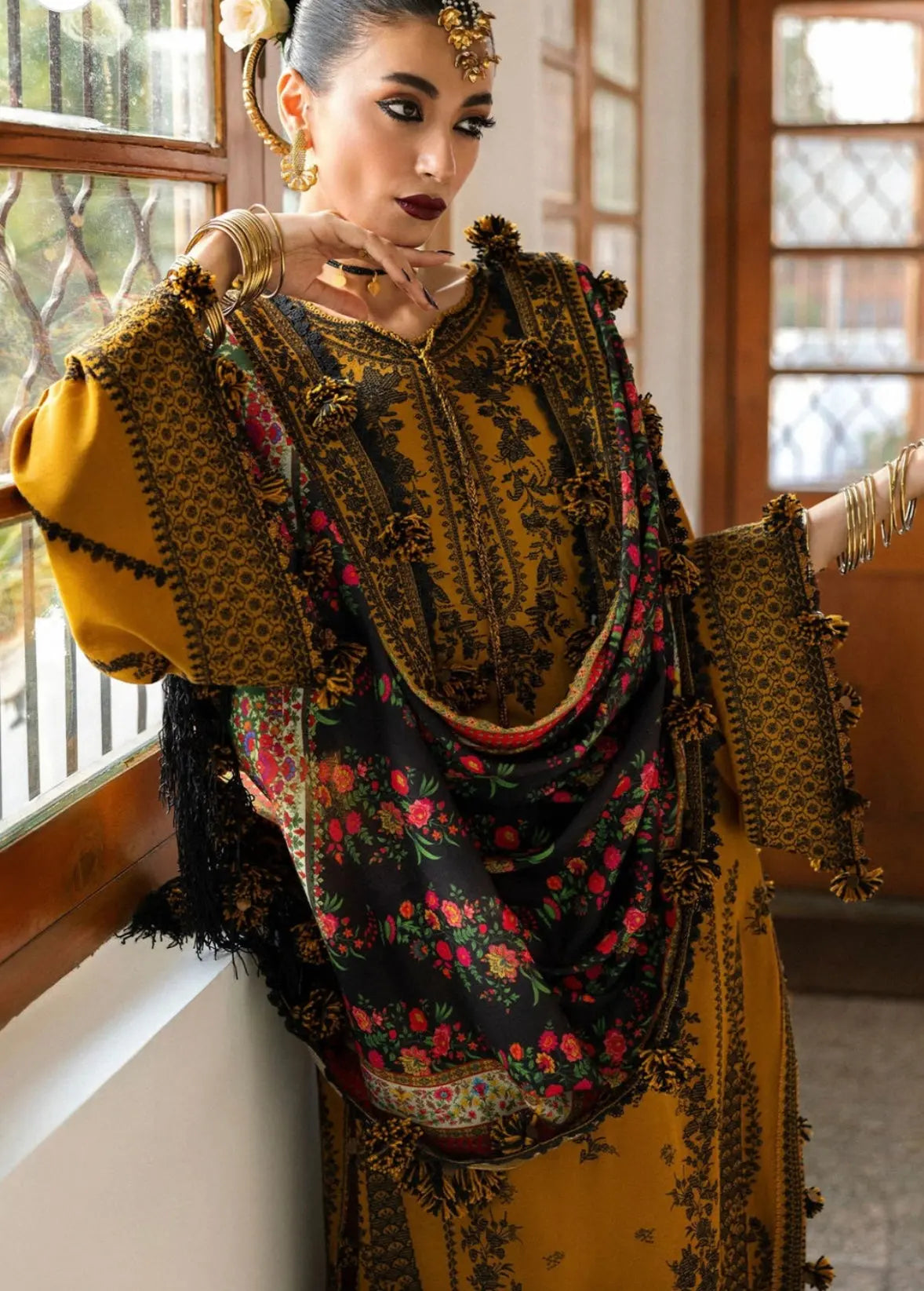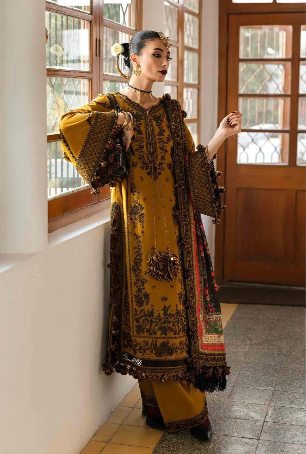 H Rehar Inspired | Embroidered Cotton Readymade Traditional Womenswear | JS173 (Mustard)