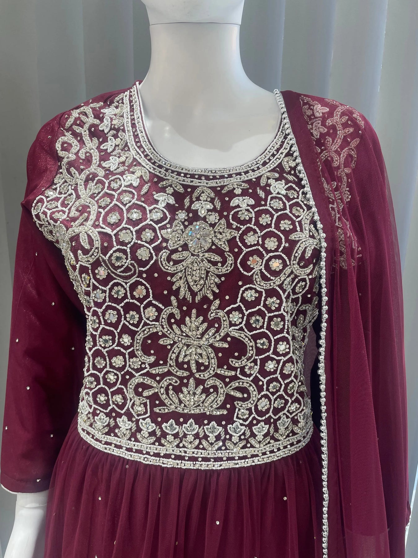 Embroidered Net Kameez with an embroidered Net Dupatta. The kameez includes heavy embroidery with intricate details.